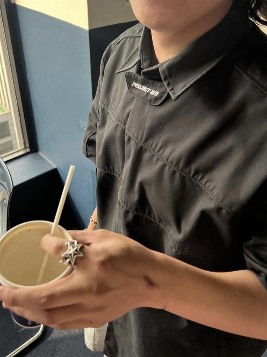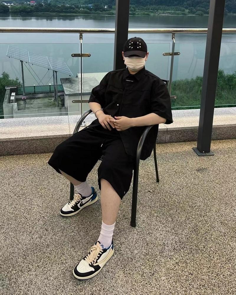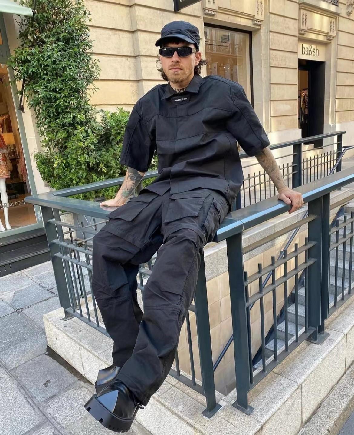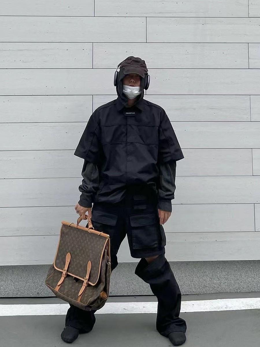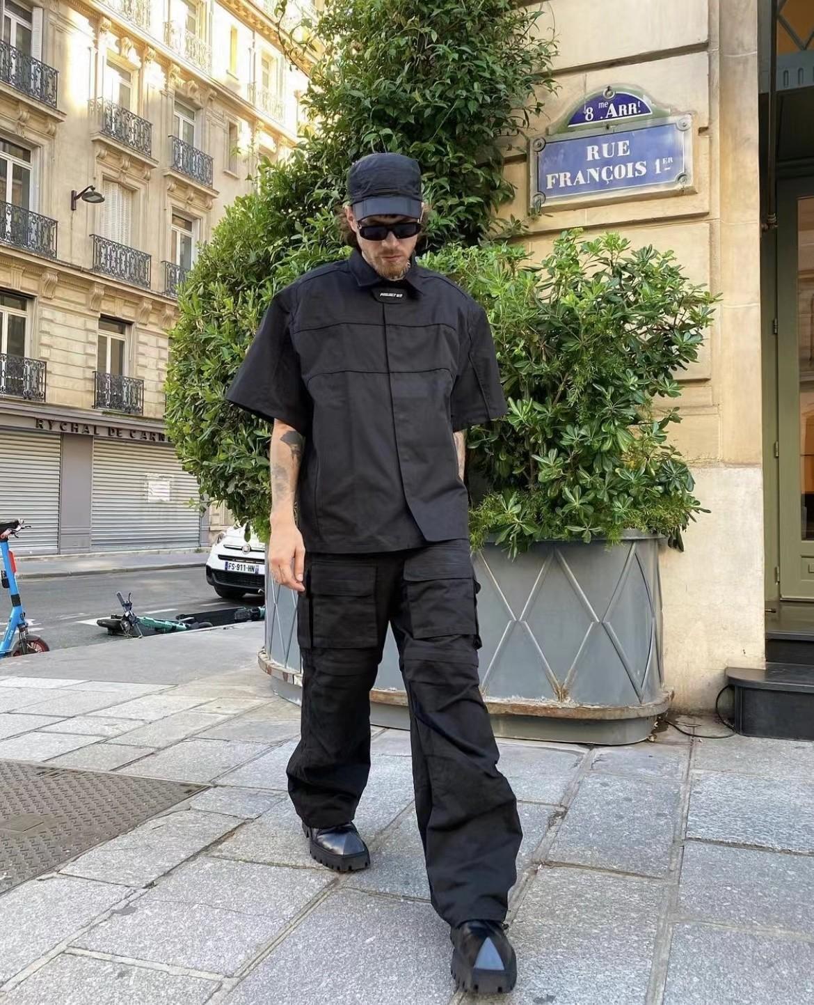 Proyecto Grailz Retro Solapa Nicho Función Desmontable Hombrera de Motocicleta Camisa Manga Corta Vibra Holgada