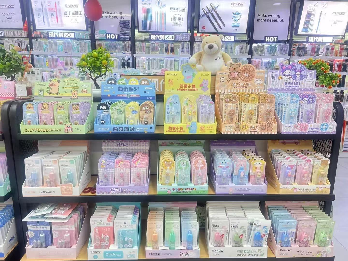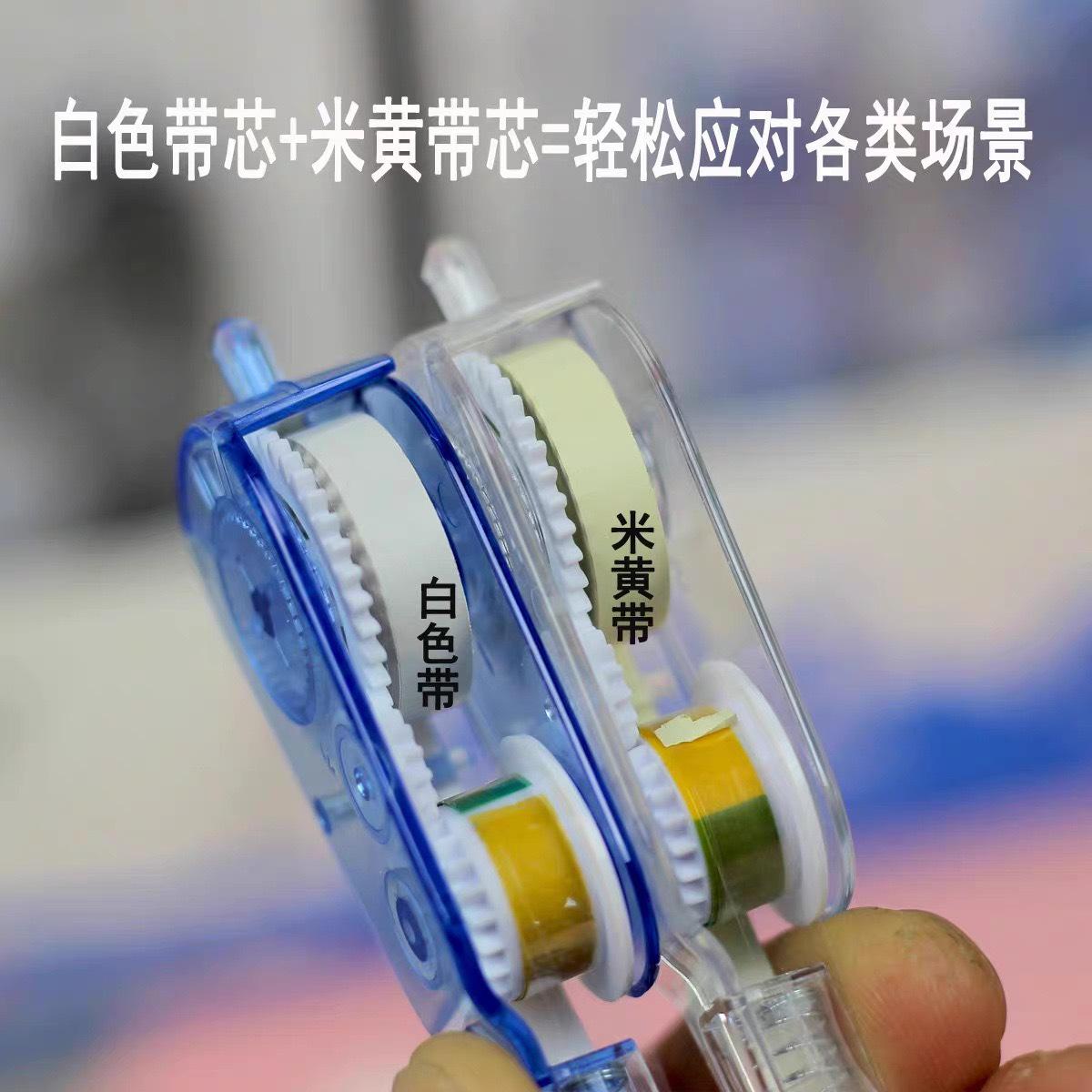 Cinta correctora moderna americana tipo bolígrafo con núcleo reemplazable, cinta correctora bicolor beige y blanca, dos en uno