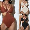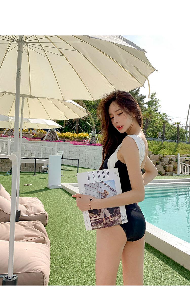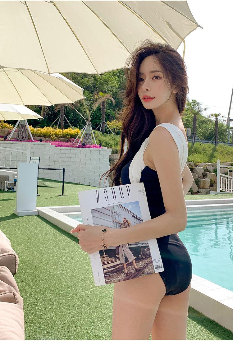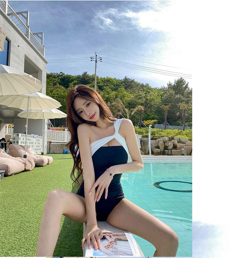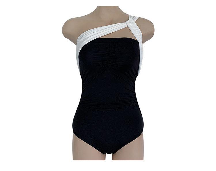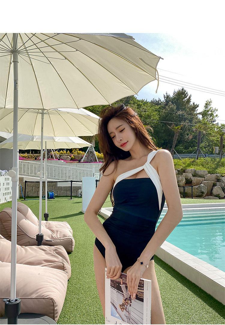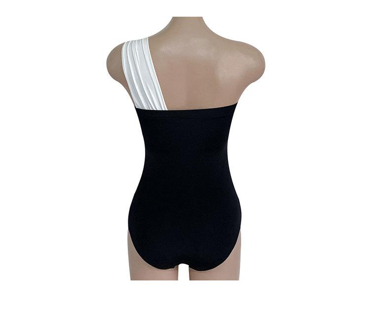 Moda simple nuevo clásico combinación de colores bikini de una pieza hombro cuello europeo y americano sexy traje de baño delgado al por mayor mujeres