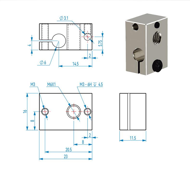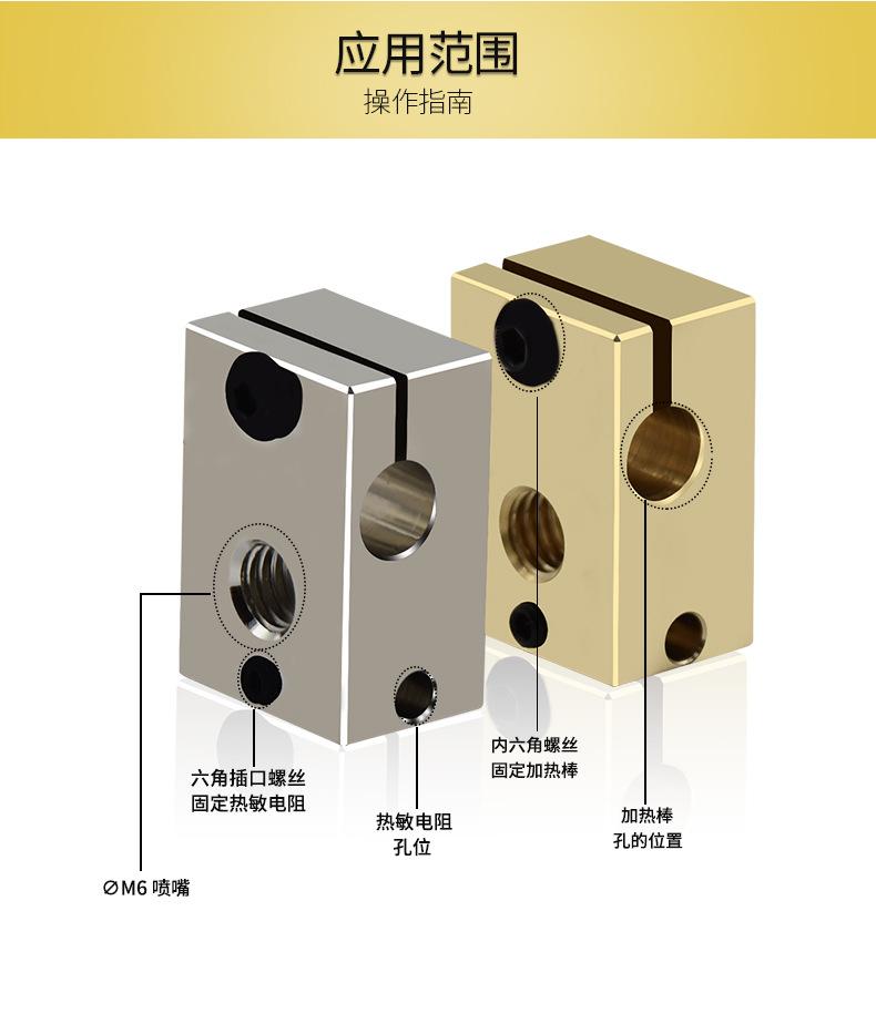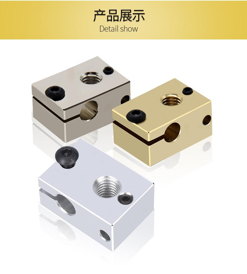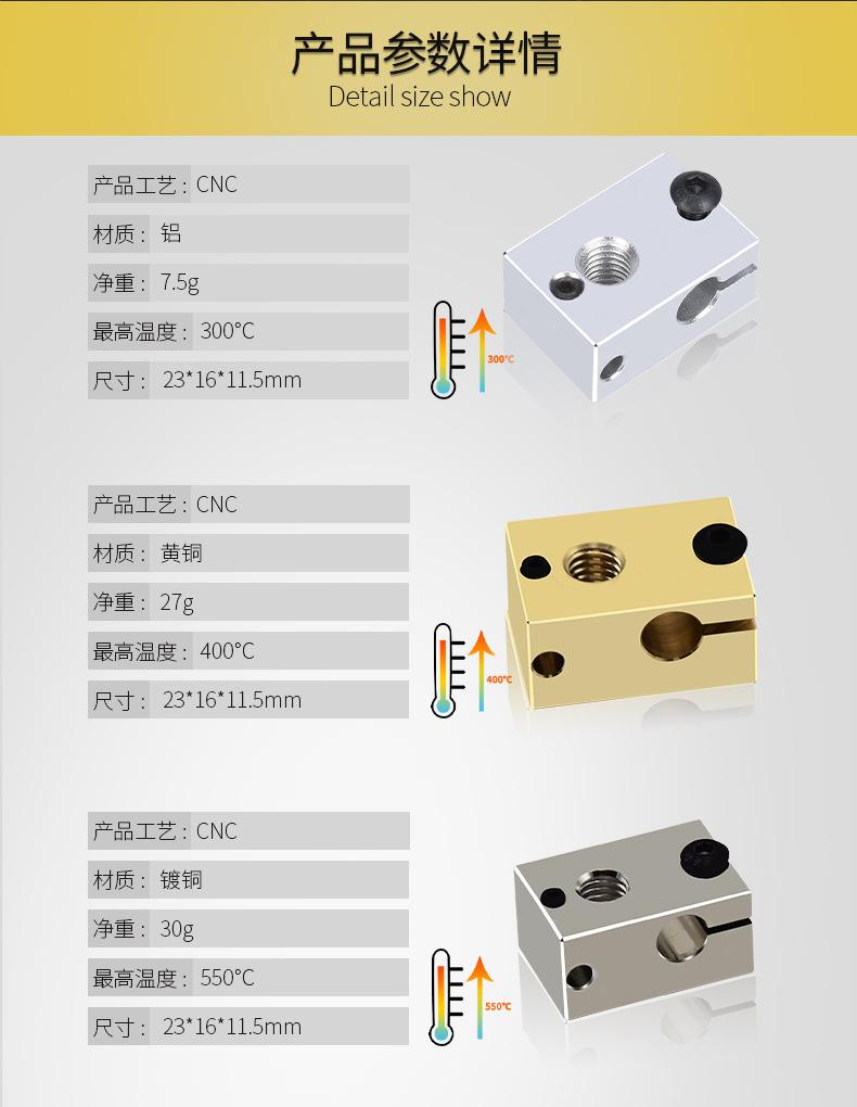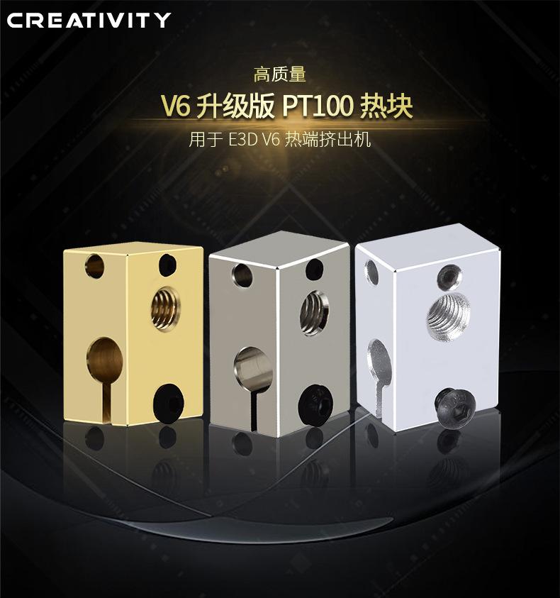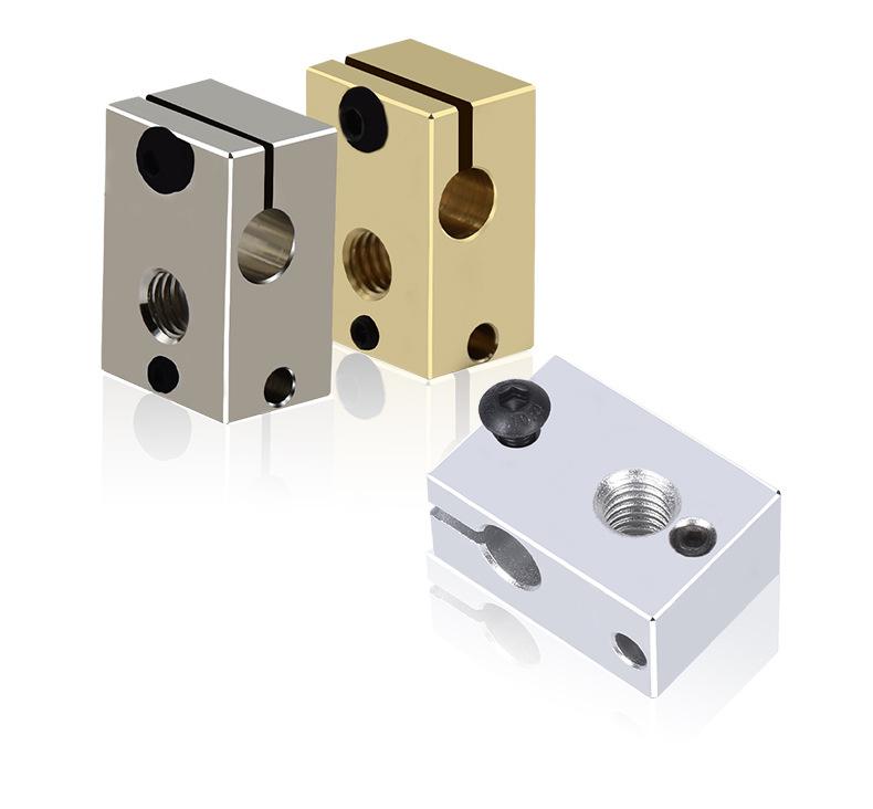V6 PT100 aluminum heating block, V6 PT100 brass heating block, V6 PT100 copper plated heating block