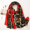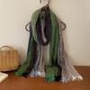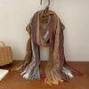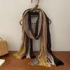 Nueva bufanda de algodón y lino con degradado azul para otoño e invierno, estilo retro, combinable con todo, con rayas anchas y plisadas.