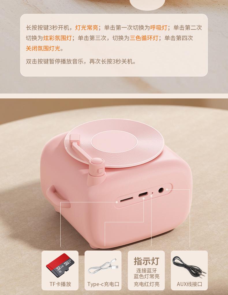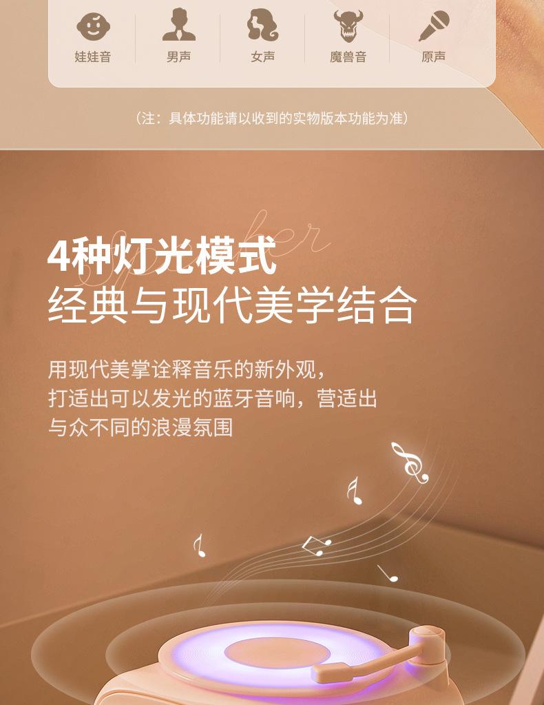 Función: Viene con 6 tipos de efectos de sonido, admite canto con micrófono dual y un disco de vinilo giratorio.