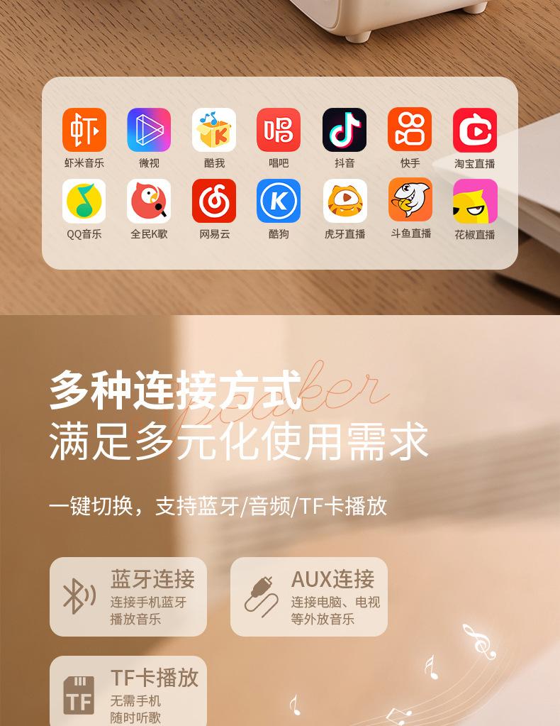5. Modo AUX, modo de tarjeta TF Identifica y cambia automáticamente al modo correspondiente después de conectarse a AUX o TF