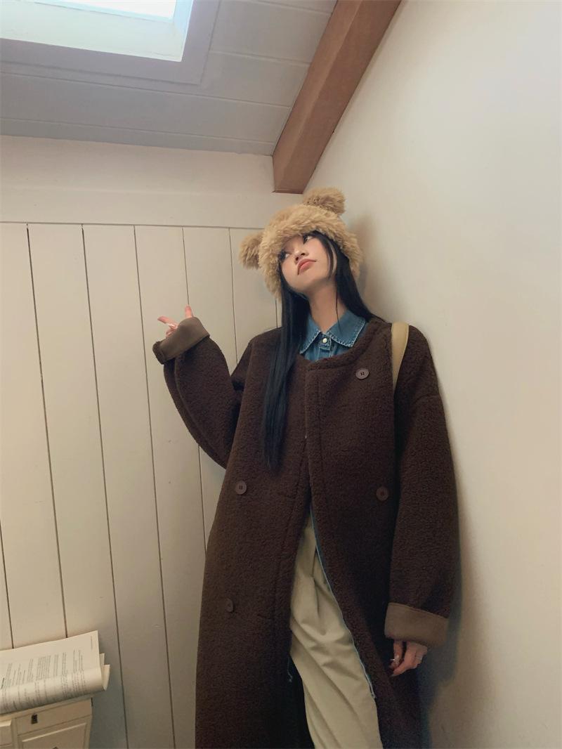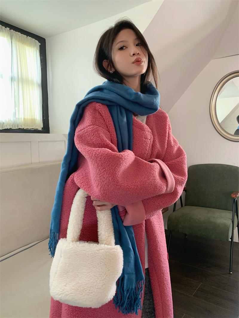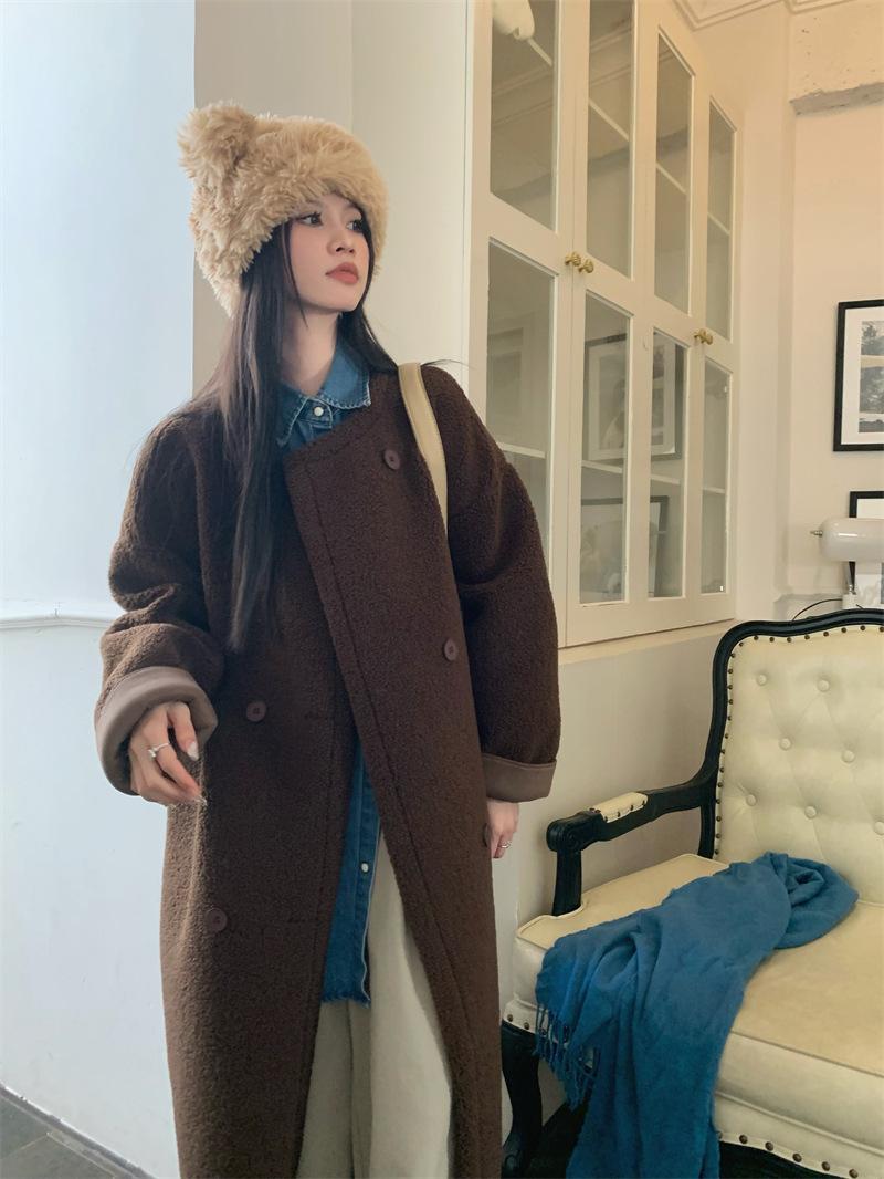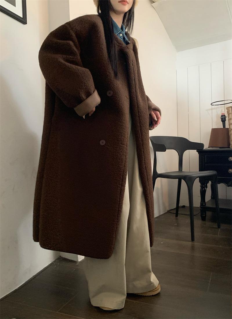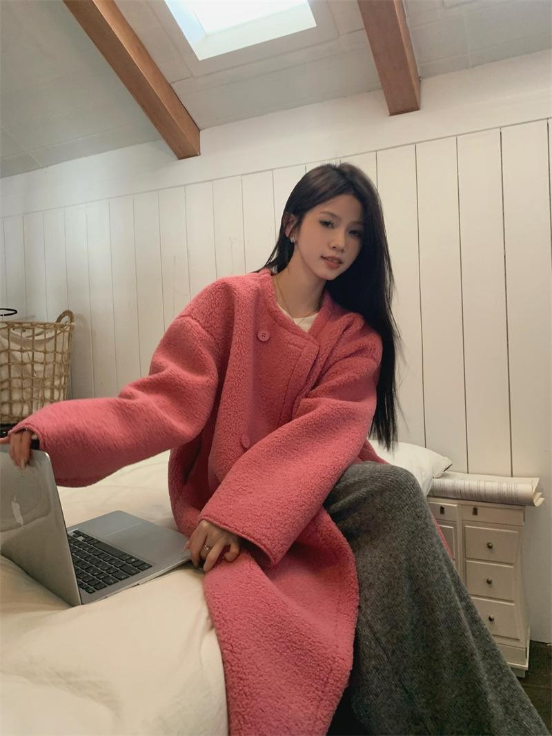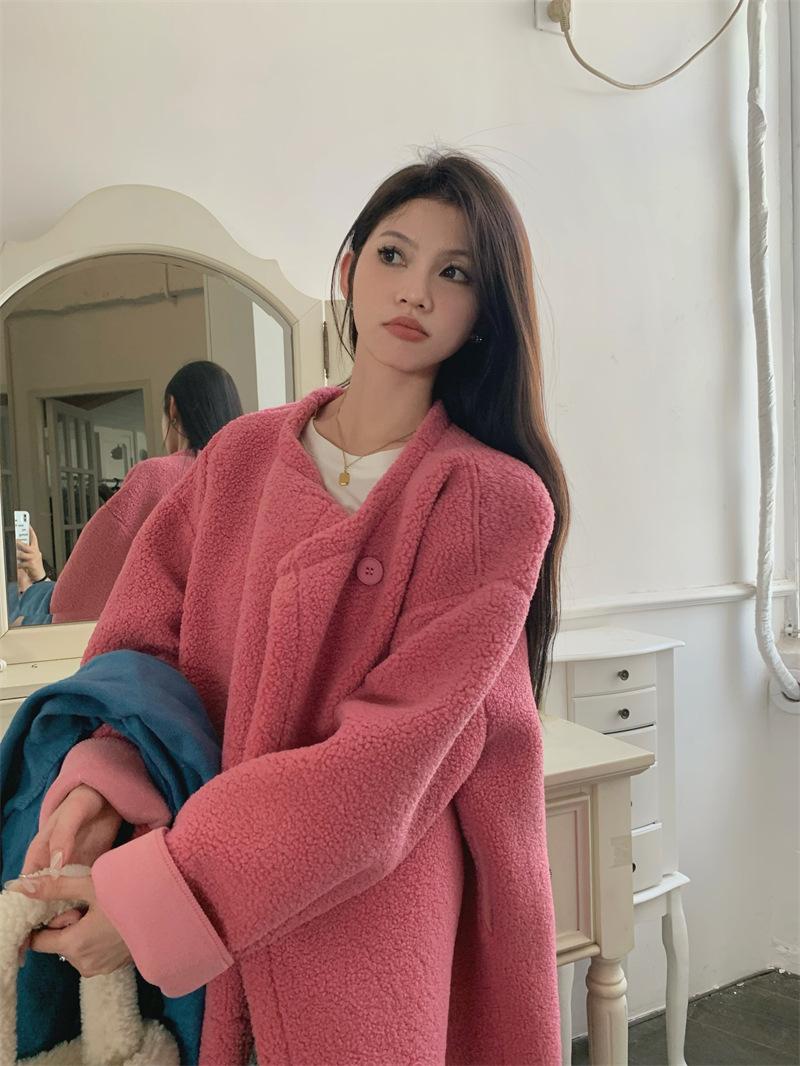 Abrigo de lana de cordero de invierno, sencillo y moderno, para mujer, de longitud media, holgado, cálido, informal, acolchado de algodón grueso, 2024