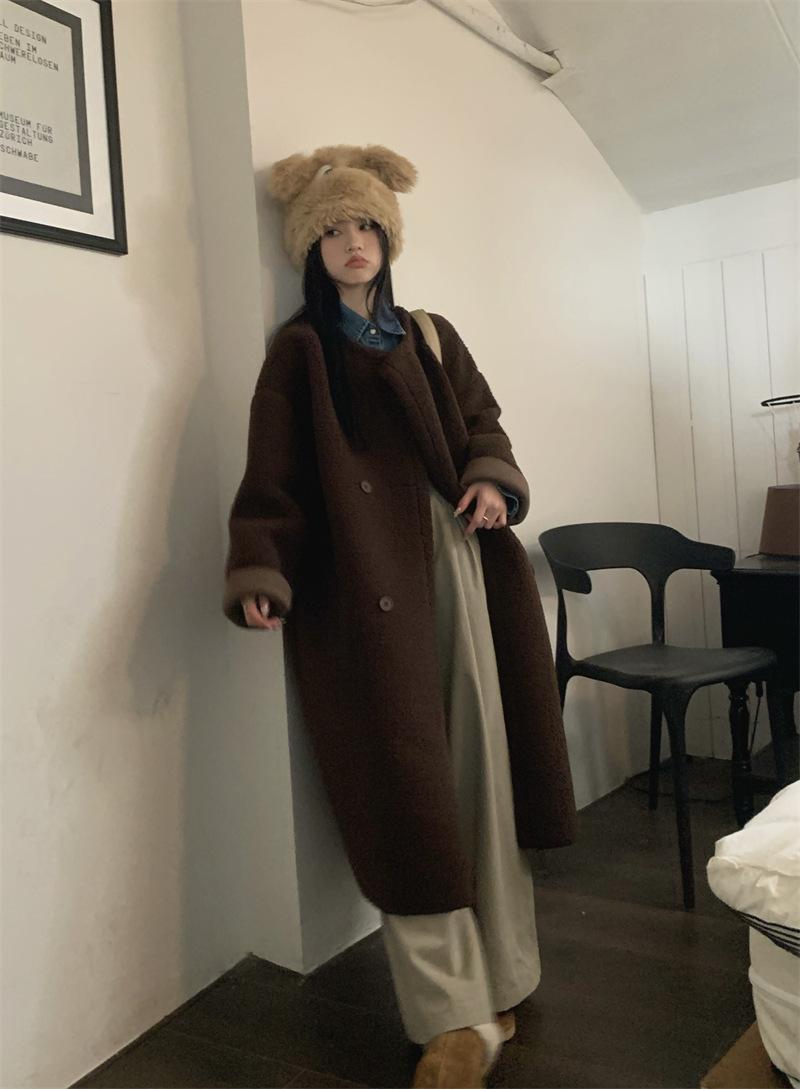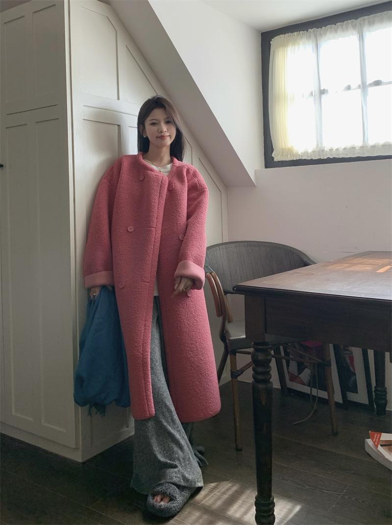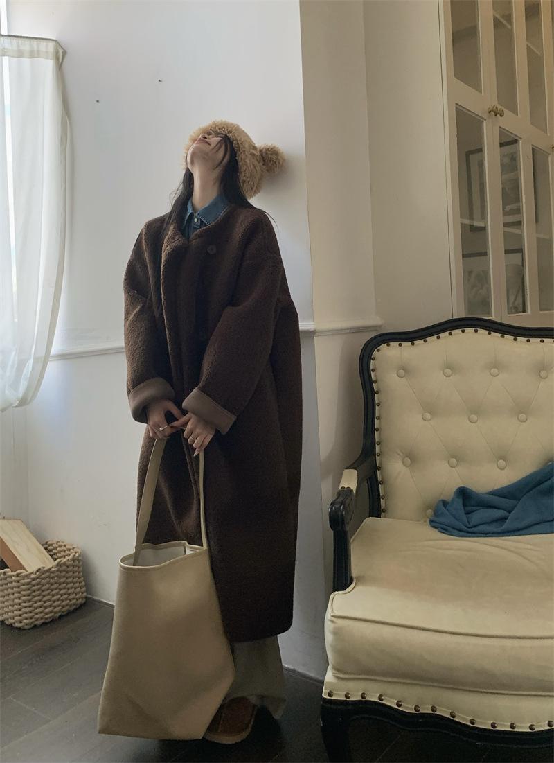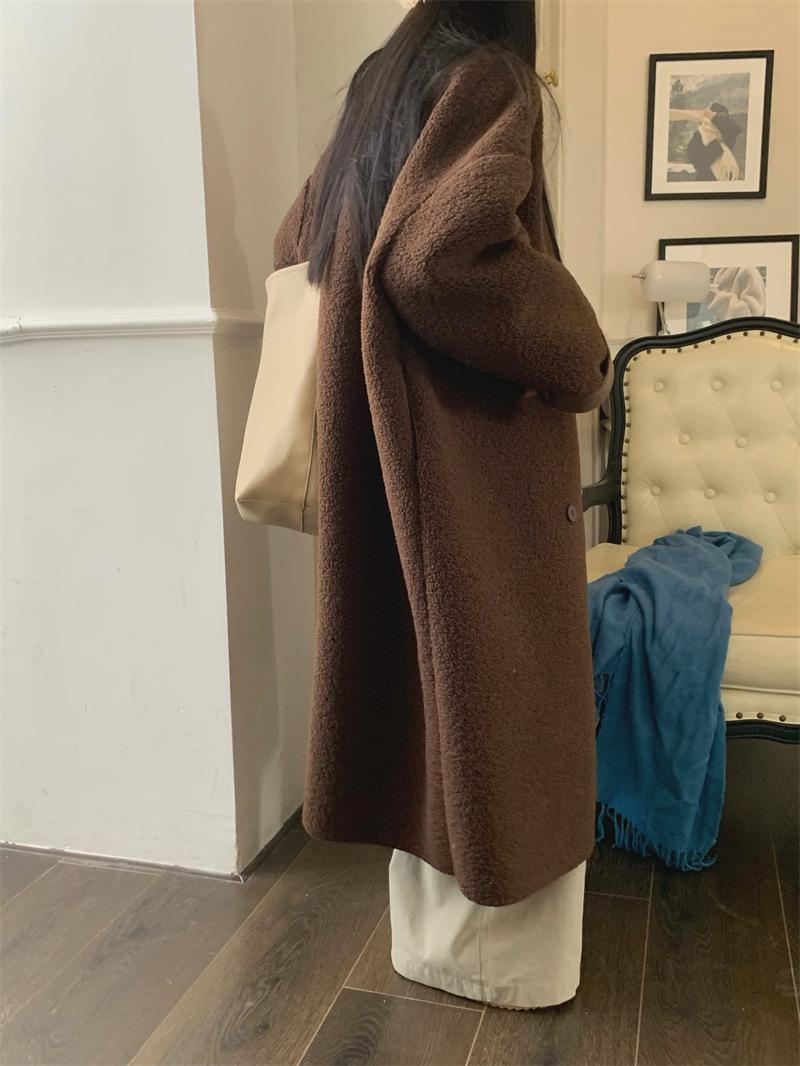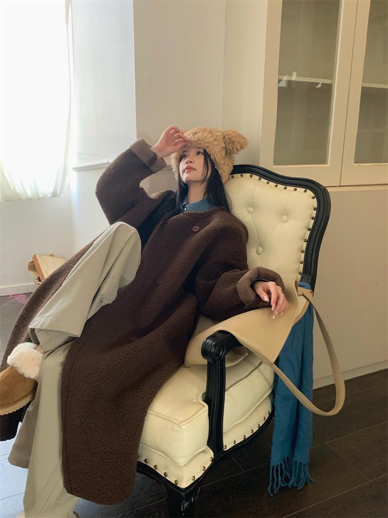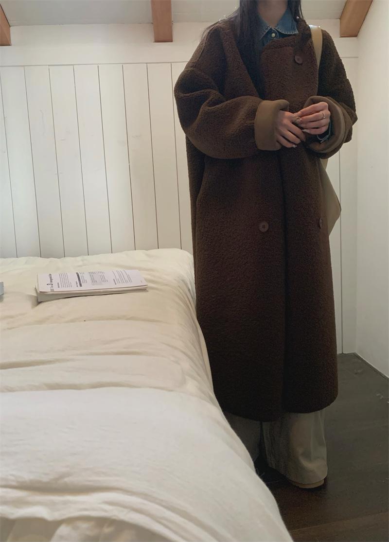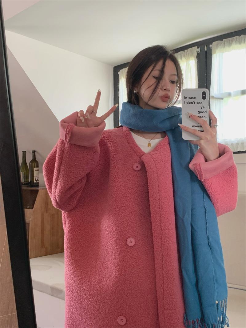 Abrigo de lana de cordero de invierno, sencillo y moderno, para mujer, de longitud media, holgado, cálido, informal, acolchado de algodón grueso, 2024