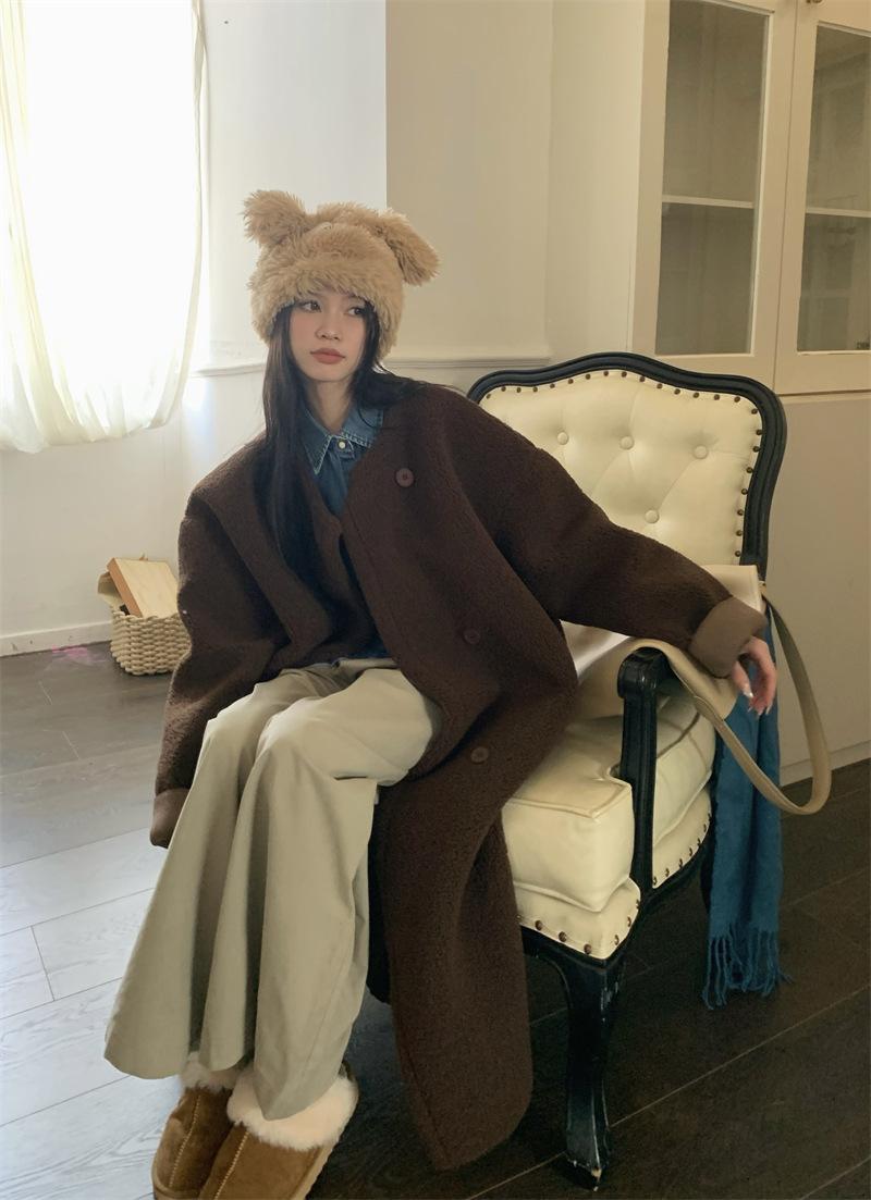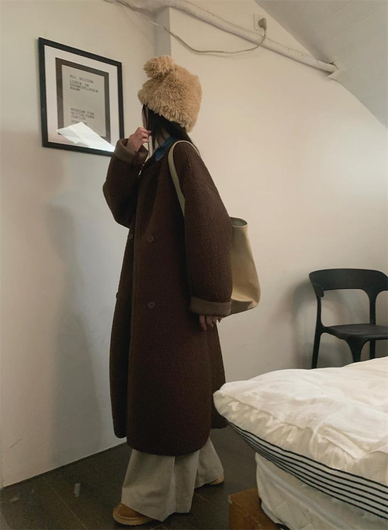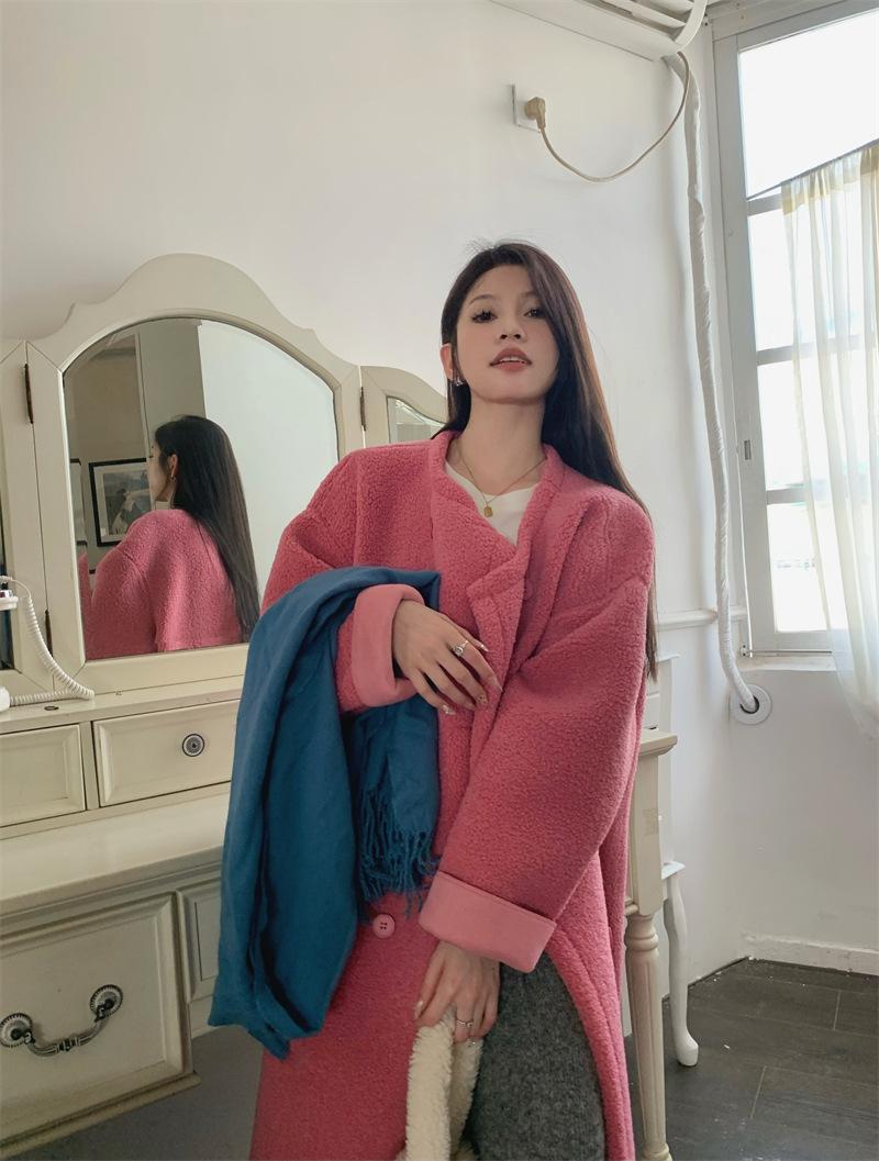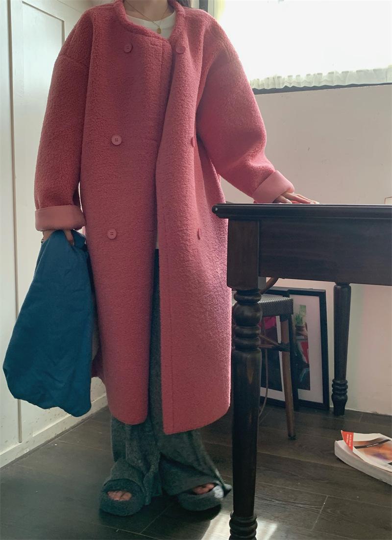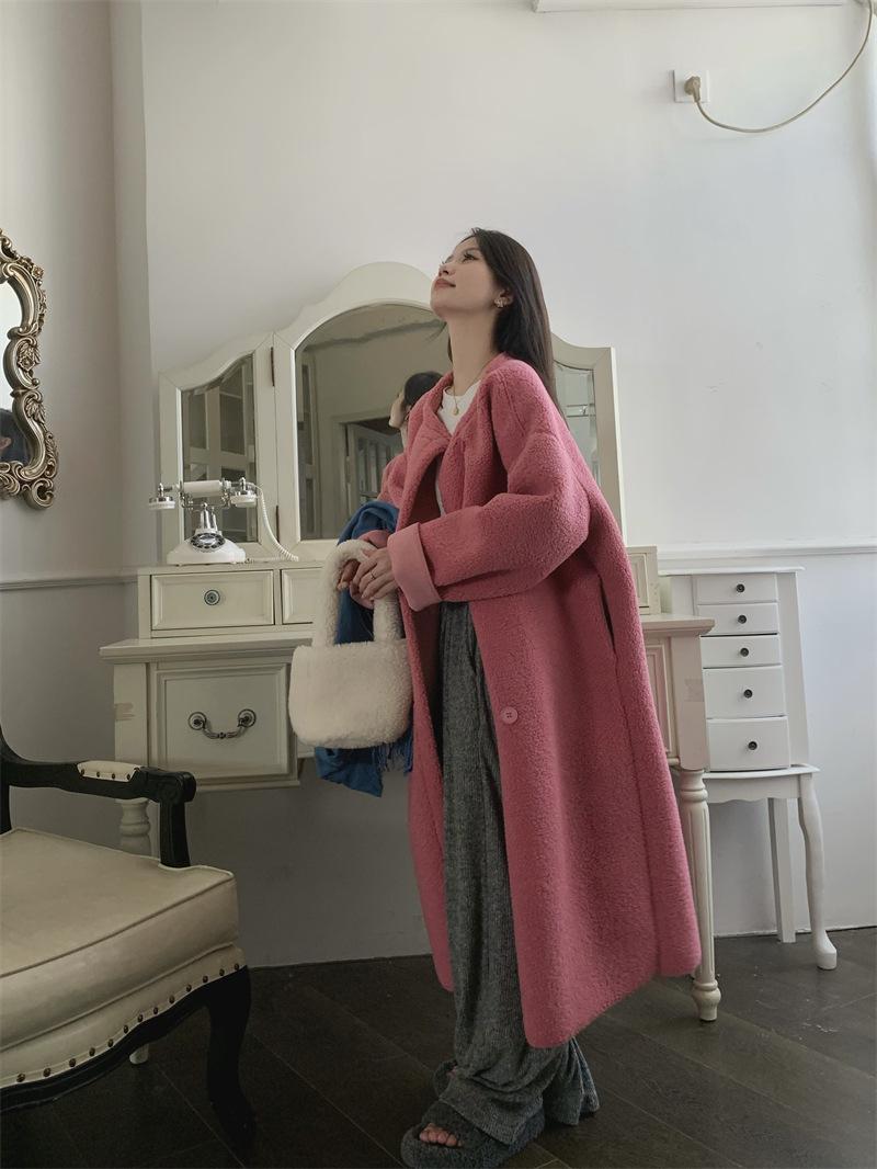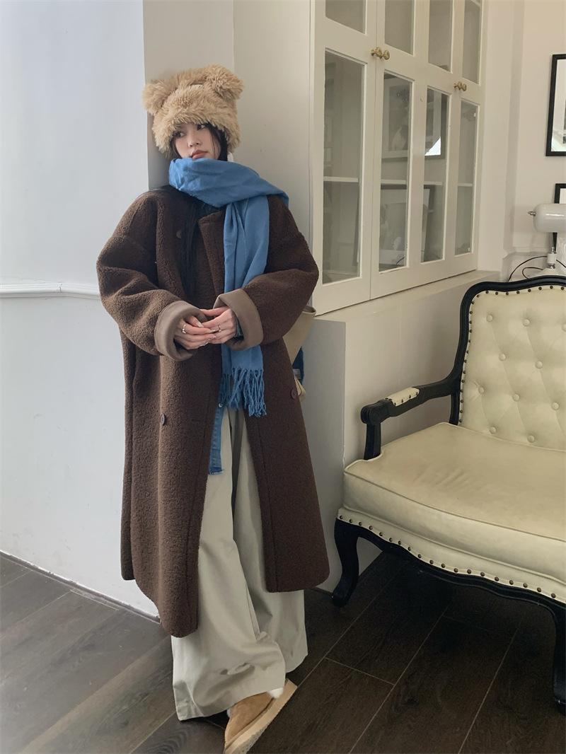 Abrigo de lana de cordero de invierno, sencillo y moderno, para mujer, de longitud media, holgado, cálido, informal, acolchado de algodón grueso, 2024