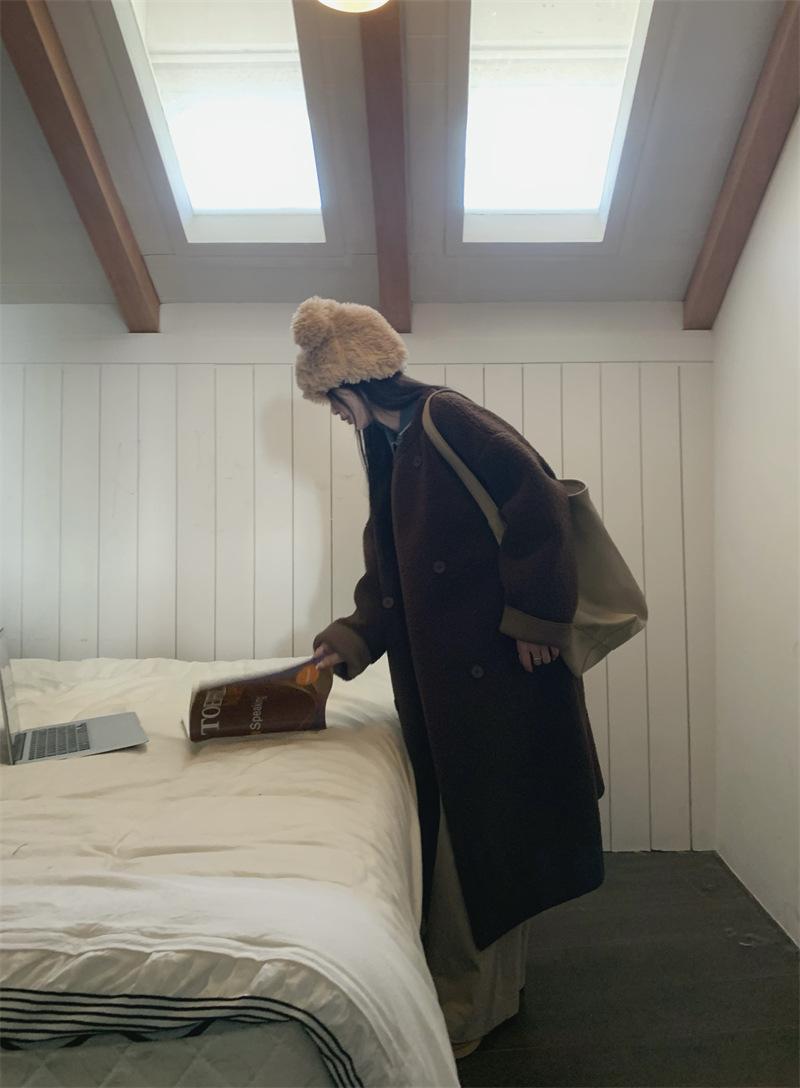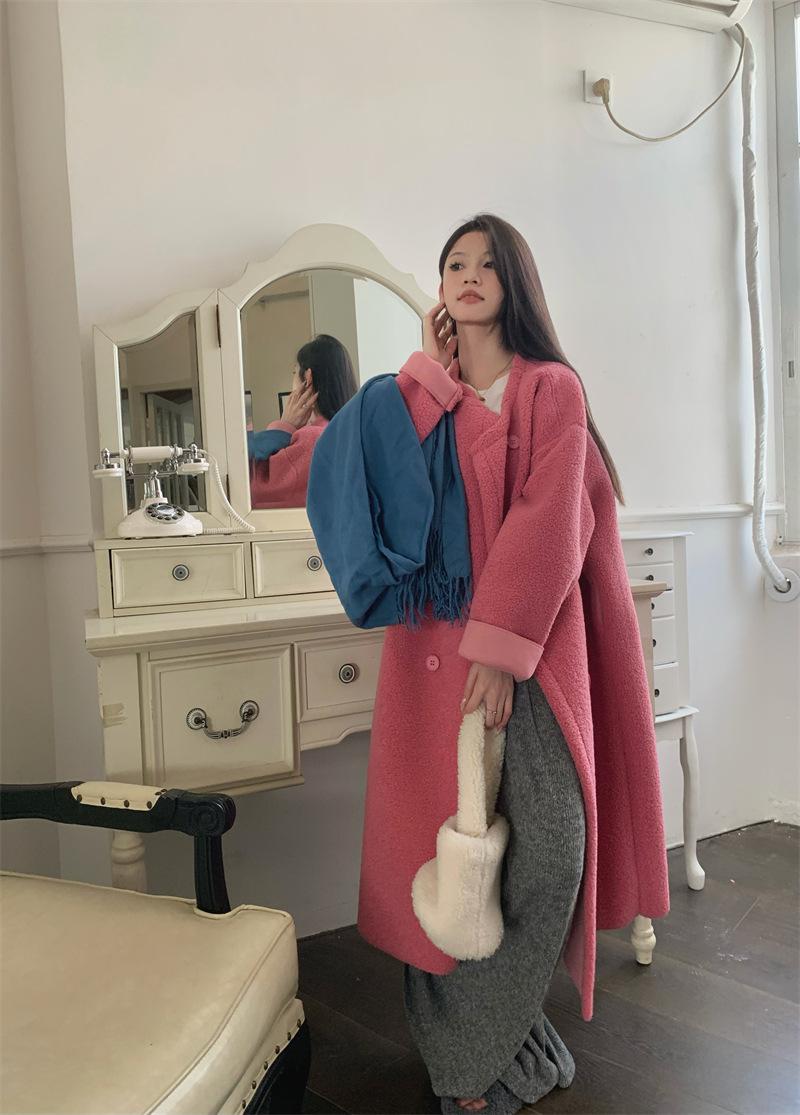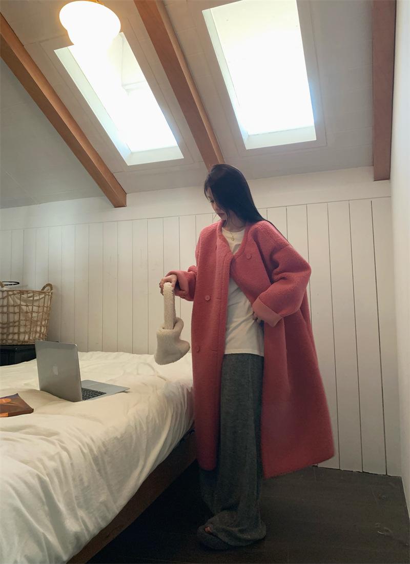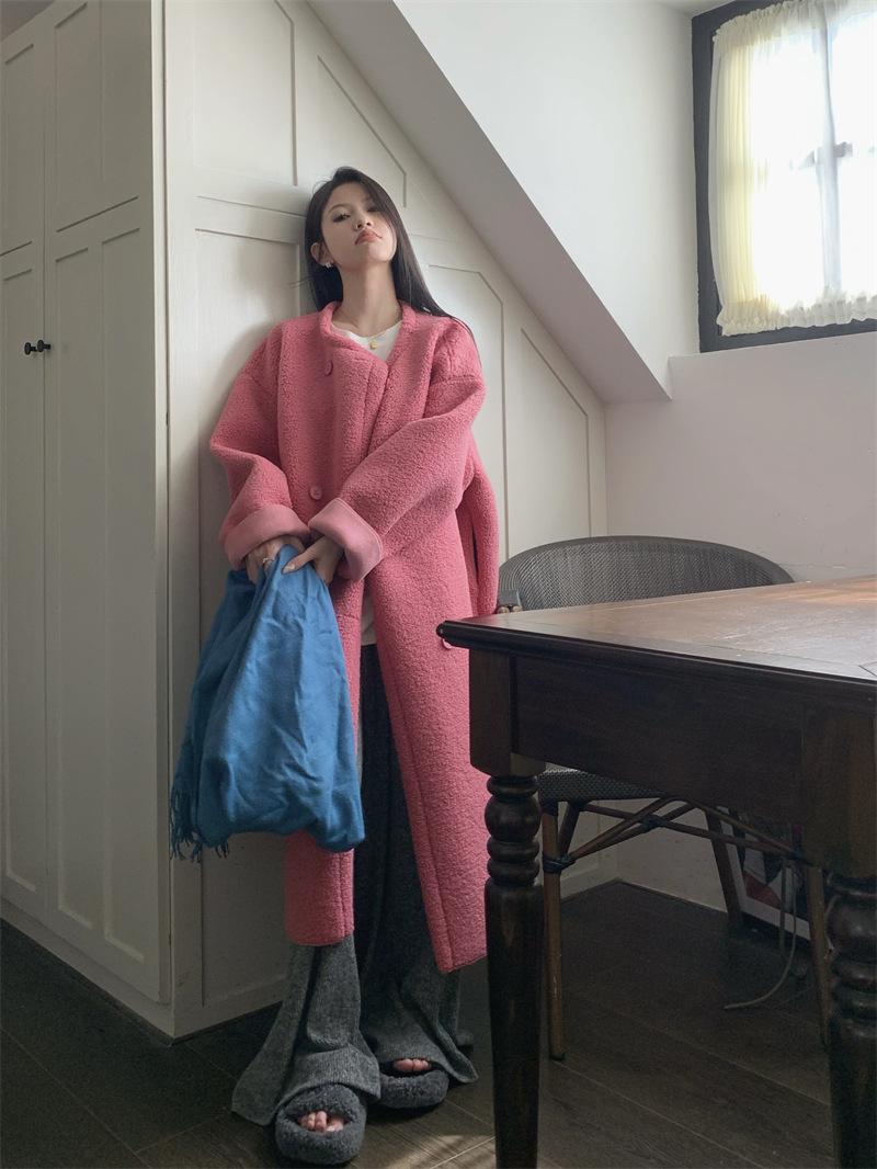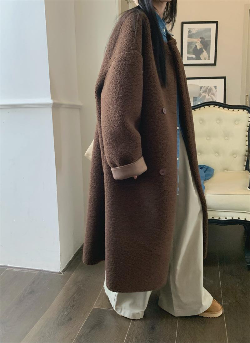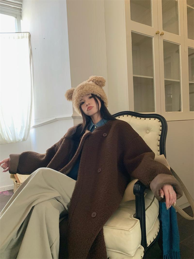 Abrigo de lana de cordero de invierno, sencillo y moderno, para mujer, de longitud media, holgado, cálido, informal, acolchado de algodón grueso, 2024