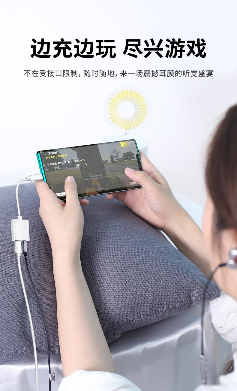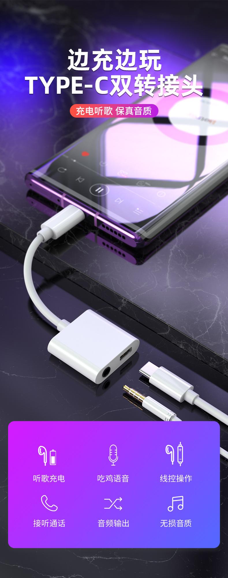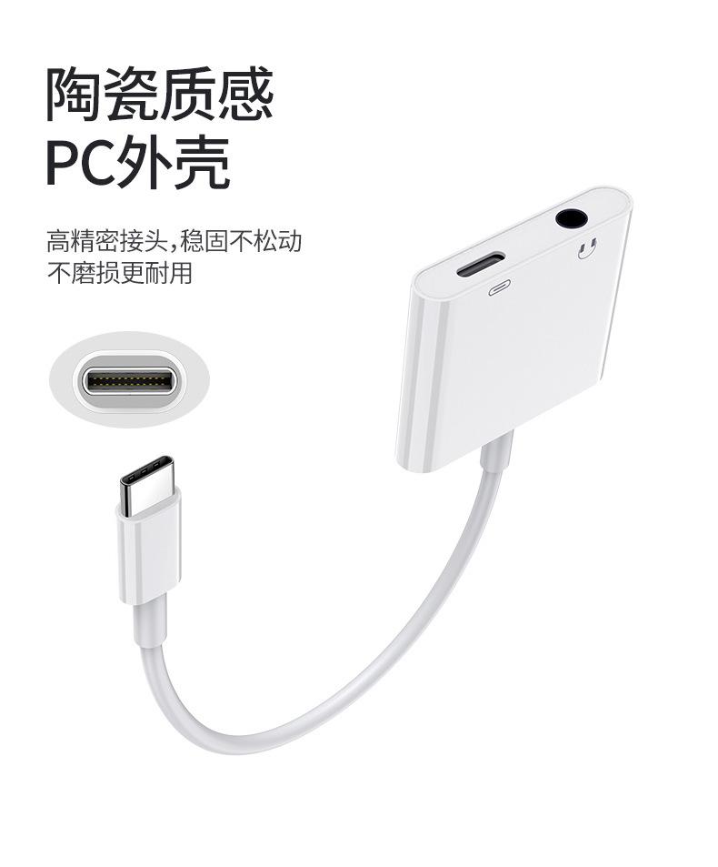 Cable adaptador tipo C para teléfono móvil para audífonos Huawei de 3.5 mm Audio Dos en uno convertidor de carga transmisión en vivo tpc