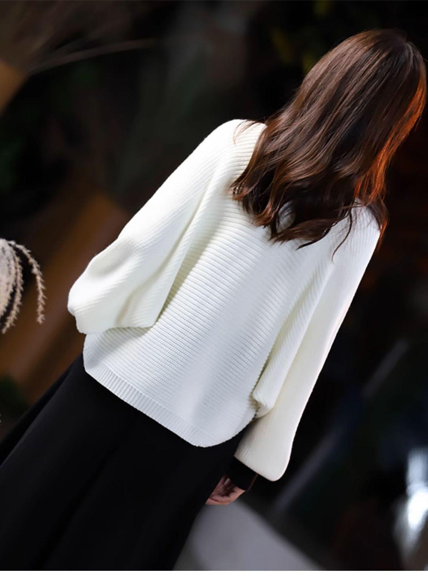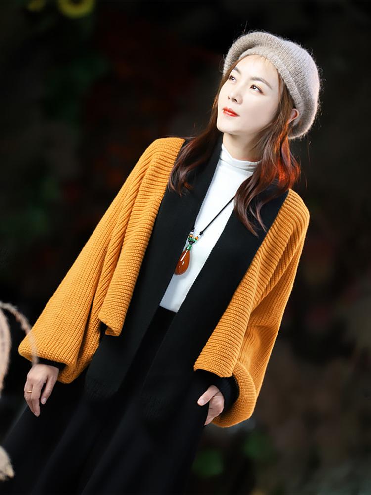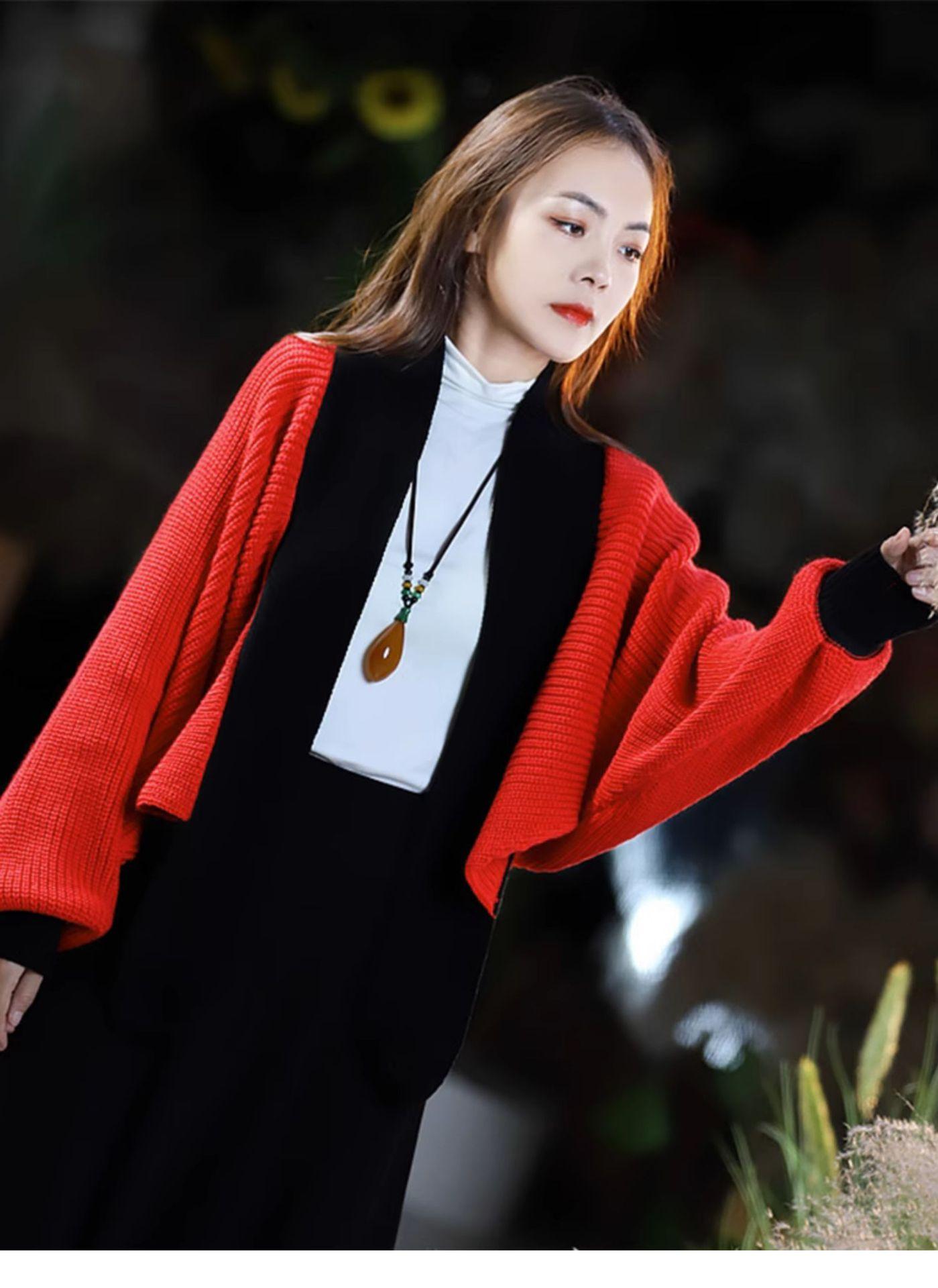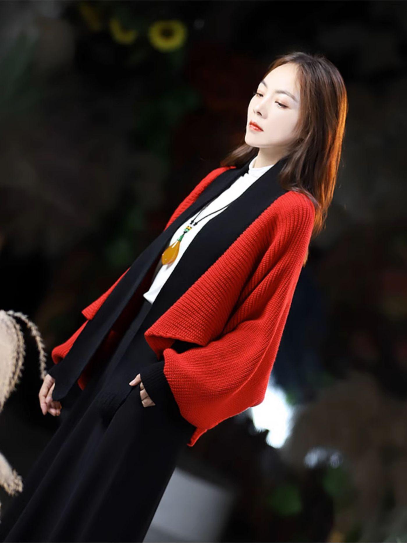 Cárdigan de punto a juego de colores para mujer 2023 otoño e invierno nuevo top tipo chal artístico retro de manga murciélago suéter holgado