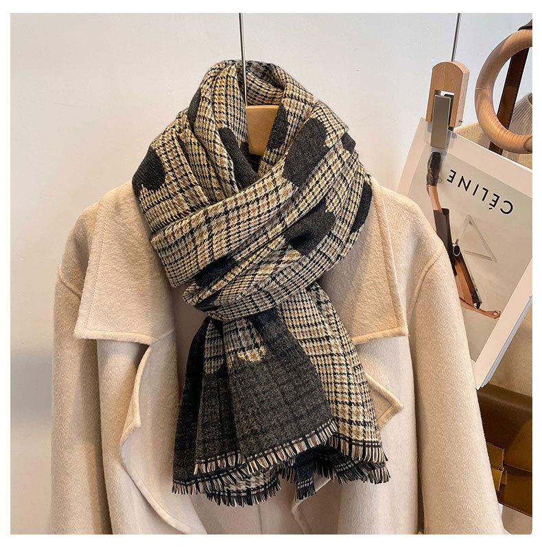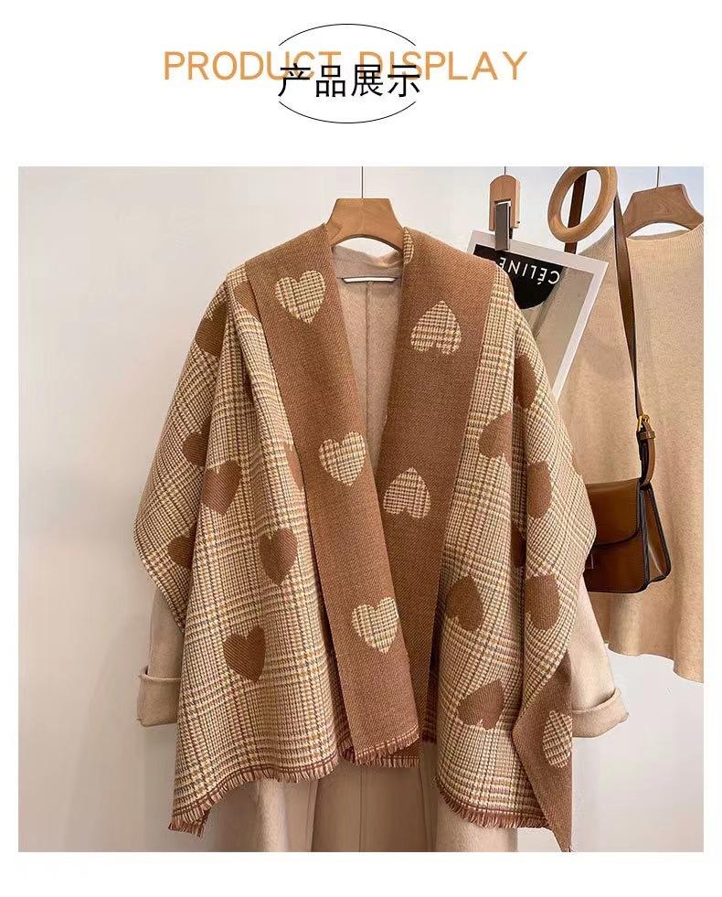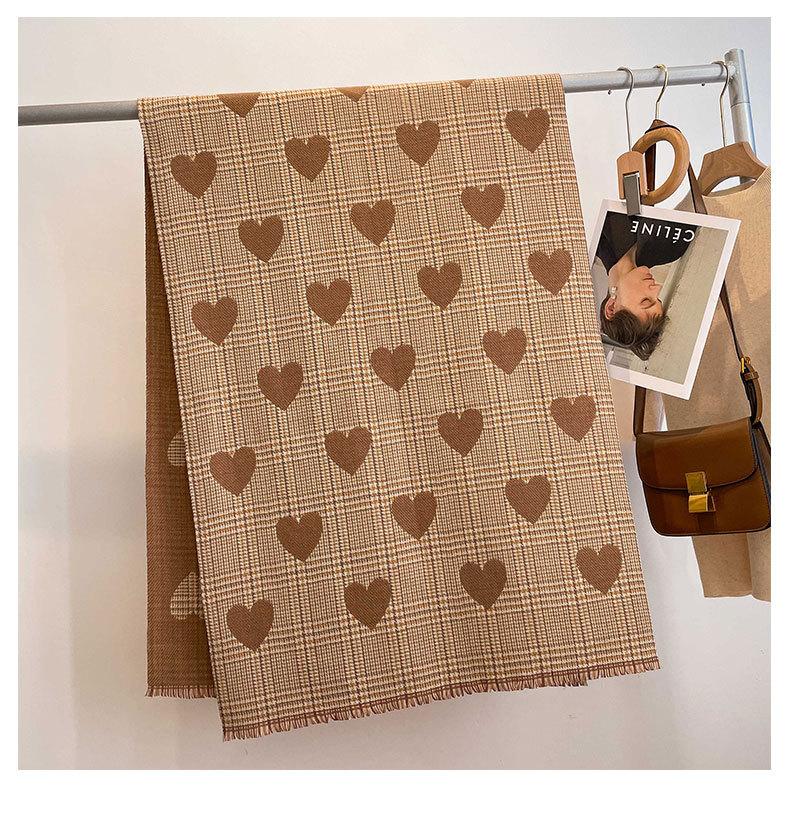 Otoño/Invierno 2023 Nuevo Patrón de Corazón Socialité de Cachemira Imitación Moda Femenina Versátil Largo Grueso Cálido Chal Bufanda