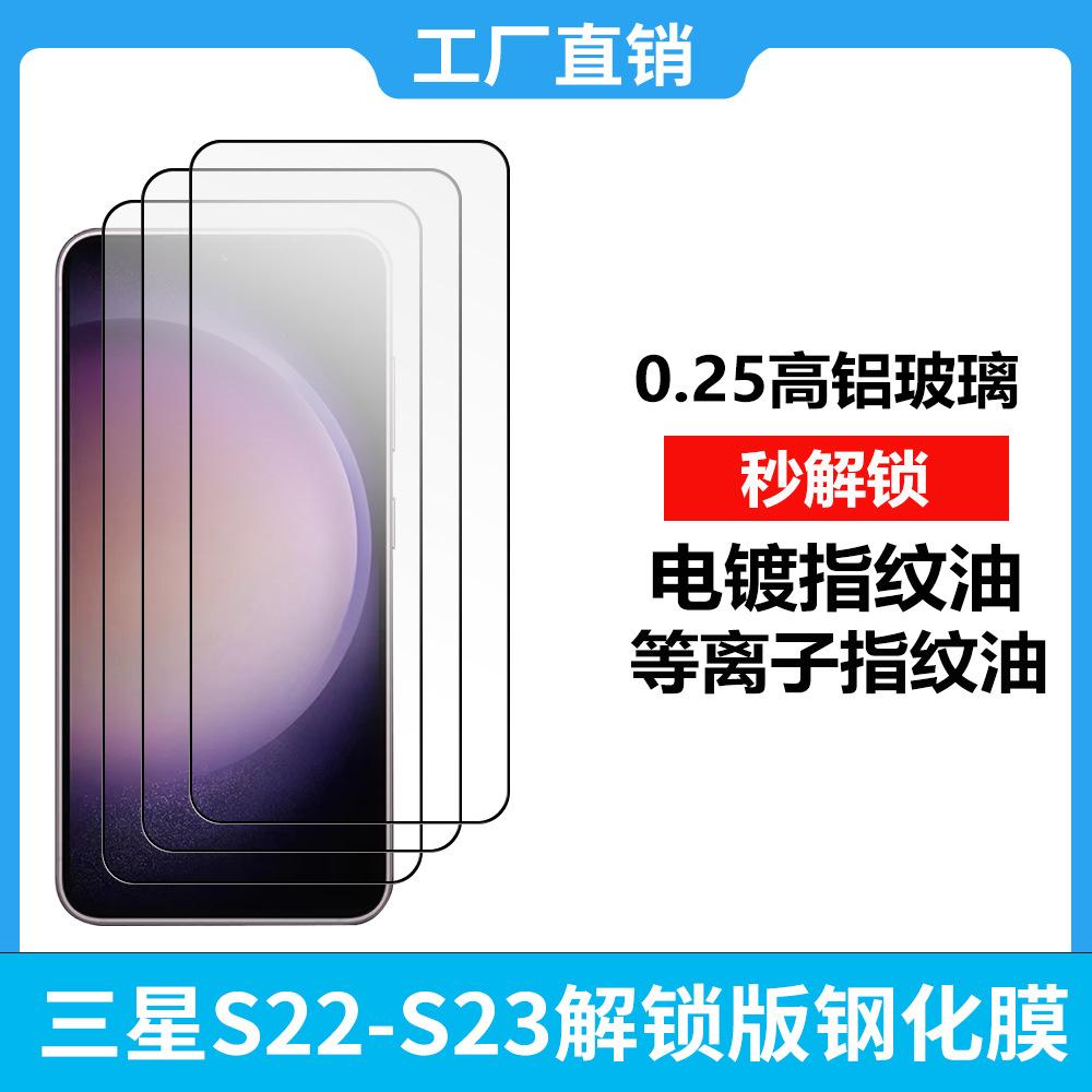 Para teléfono móvil Samsung Galaxys23 película templada ultrafina de 0,25 mm de vidrio segundos desbloqueo s22 película s23 +