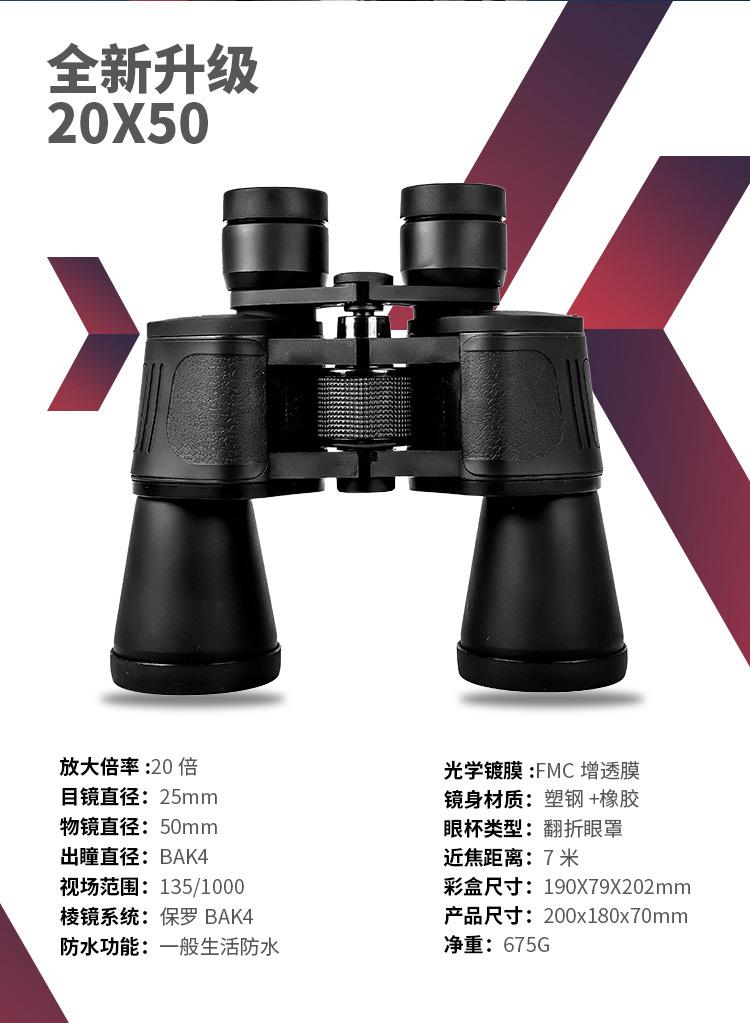 Binoculares 20*50 Visión Nocturna con Poca Luz Telescopio de Película Azul HD Alta Magnificación Telescopio de Gran Ángulo de Visión Venta al por Mayor