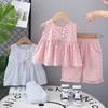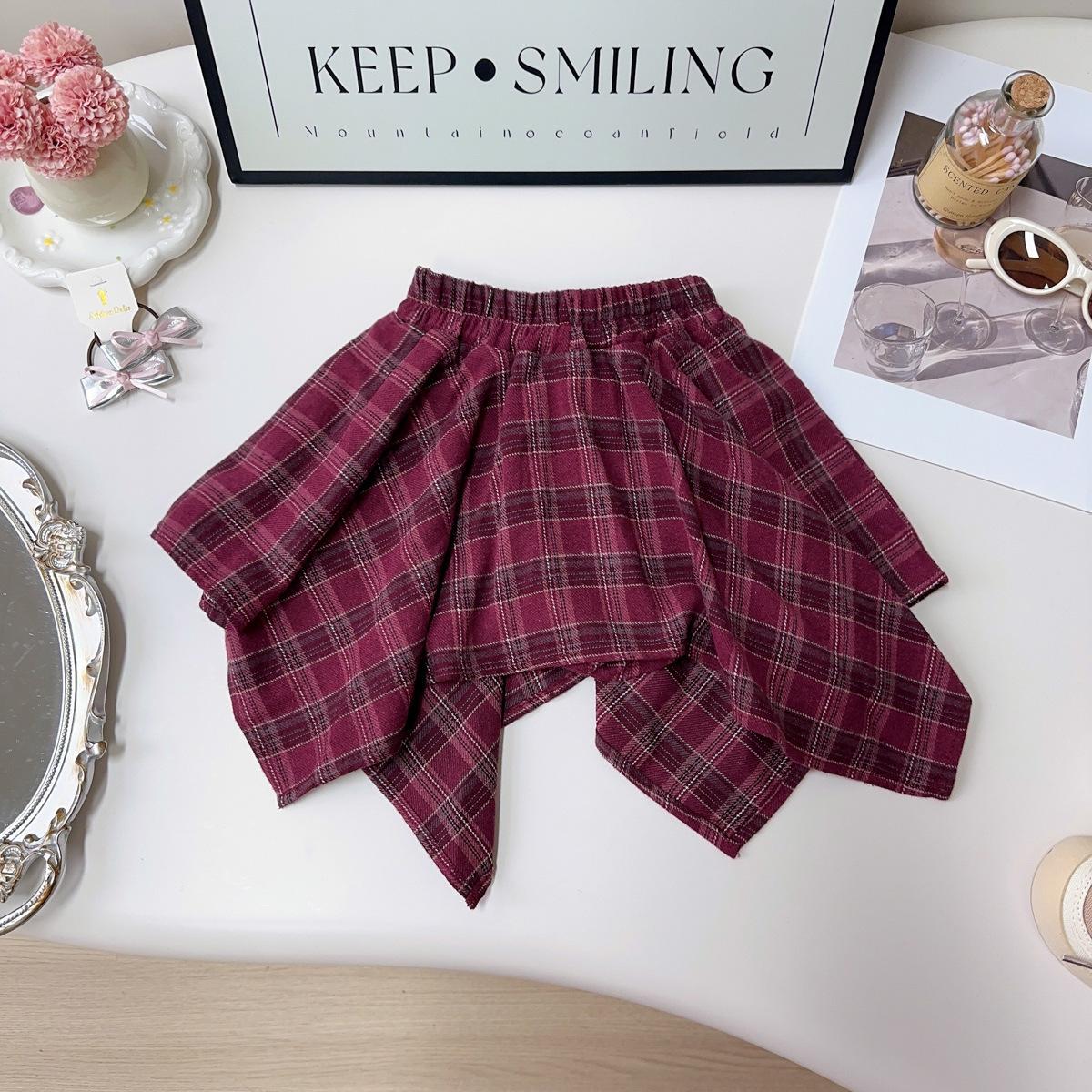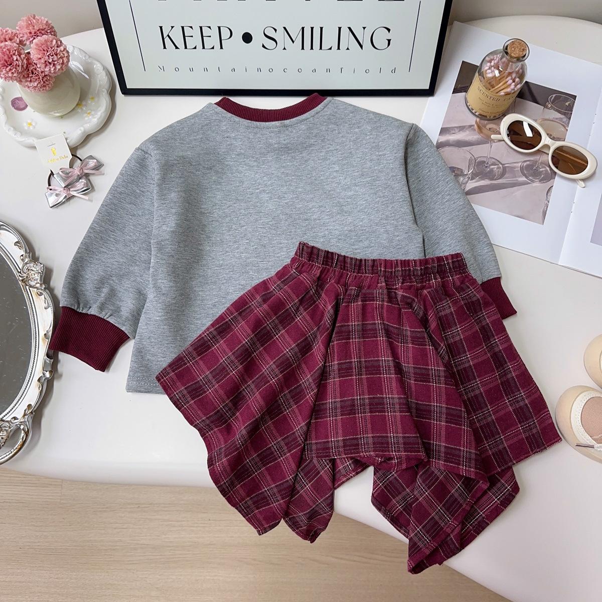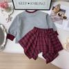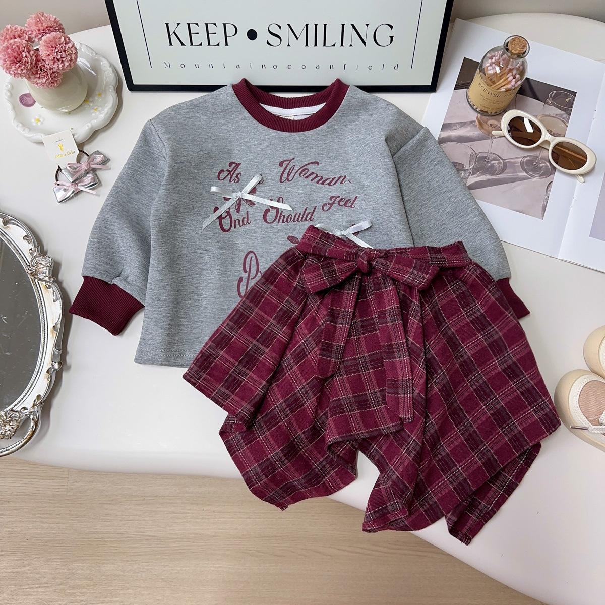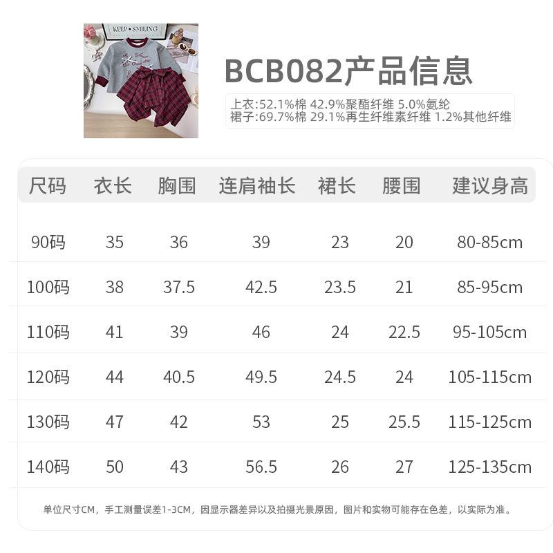 Traje de estilo americano para niña, primavera y otoño, nuevo, con lazo tridimensional, falda a cuadros vintage, BCB082