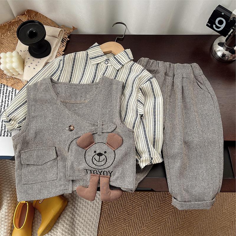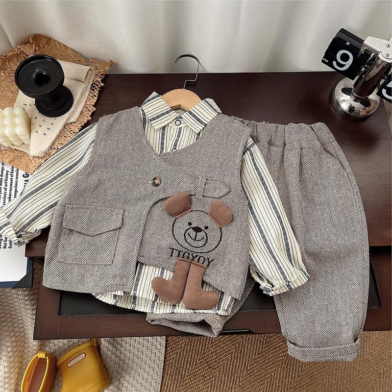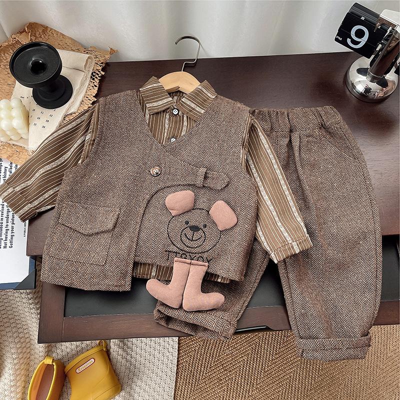 Traje bebé traje primavera 2025 nuevo niños y niños traje de tres piezas primavera y otoño chaleco traje estilo extranjero