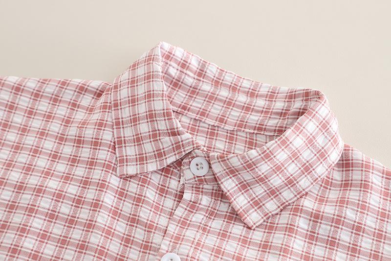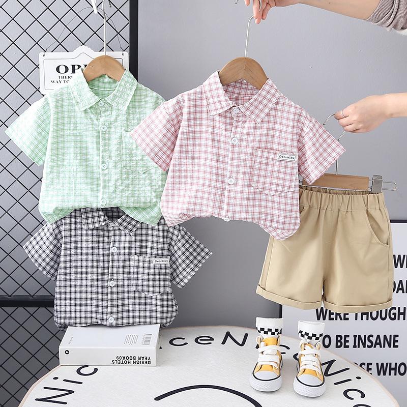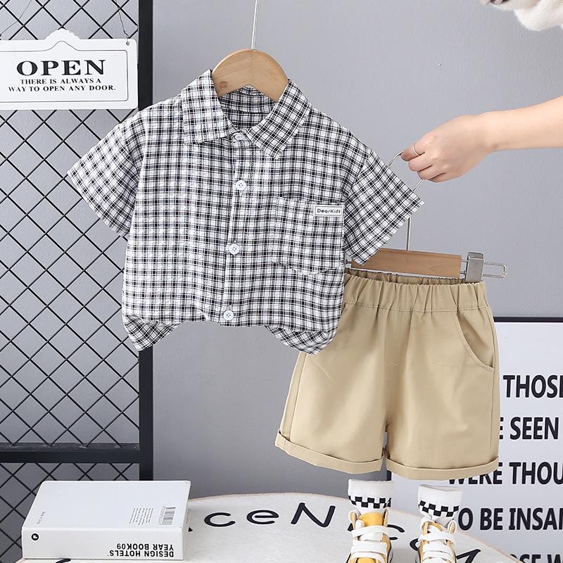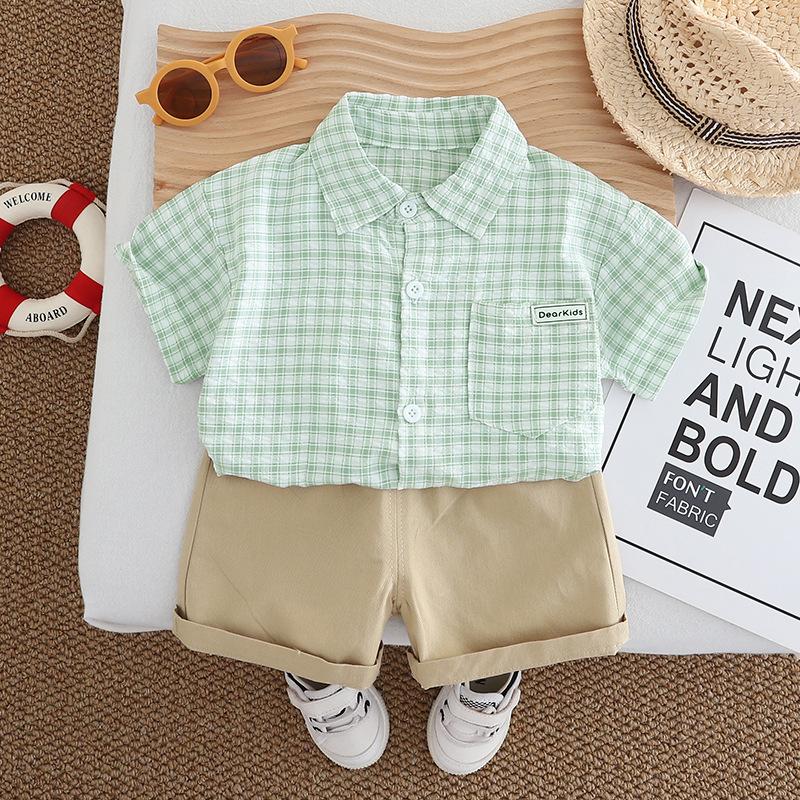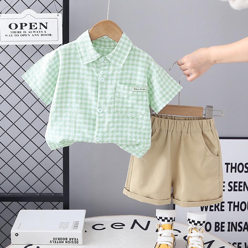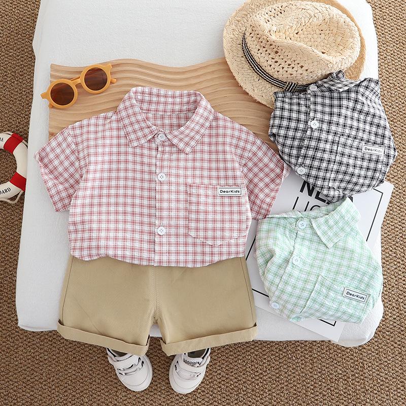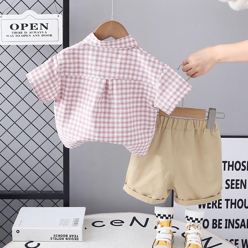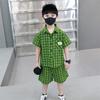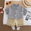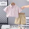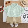 Guapo niño camisa a cuadros traje de manga corta 2025 verano nuevo ropa de verano para niño traje de verano para bebé