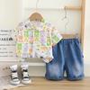 Ropa de verano para niños Traje de bebé 2025 Nueva camisa de manga corta de verano para niños Ropa de dos piezas estilo occidental para niños