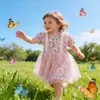 Vestido de verano nuevo para niños, falda dulce de alta calidad, falda de hilo de princesa de manga corta con flores para bebés de tamaño pequeño y mediano