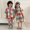 Traje de camisa de verano para niños, estilo festivo para niños, 2025, nuevo vestido de estilo occidental para niñas, vestido de verano para hermanos y hermanas.