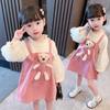 Vestido para niña Primavera y Otoño 2024 Nuevo Ropa Infantil de Manga Larga Lindo Vestido de Tirantes con Oso