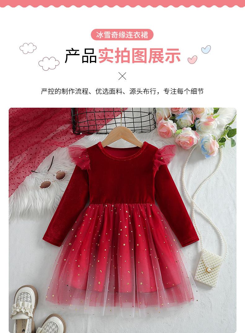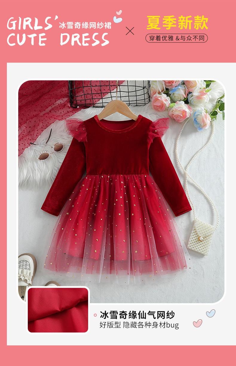 Vestido de primavera y otoño para niñas transfronterizas de comercio exterior 2024, vestido occidental de manga larga, vestido de princesa para niñas, vestido infantil