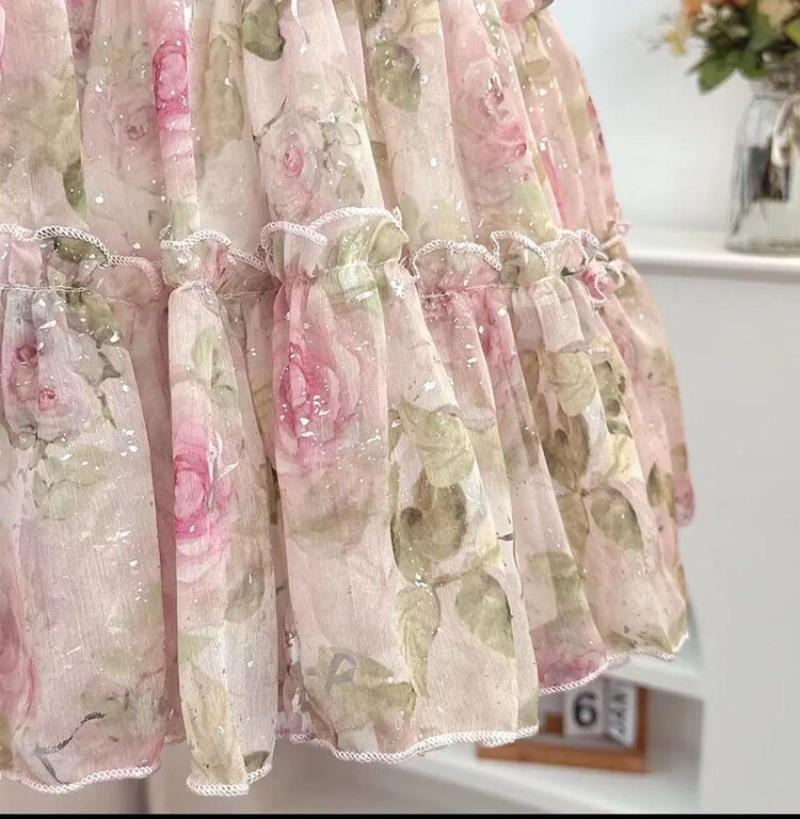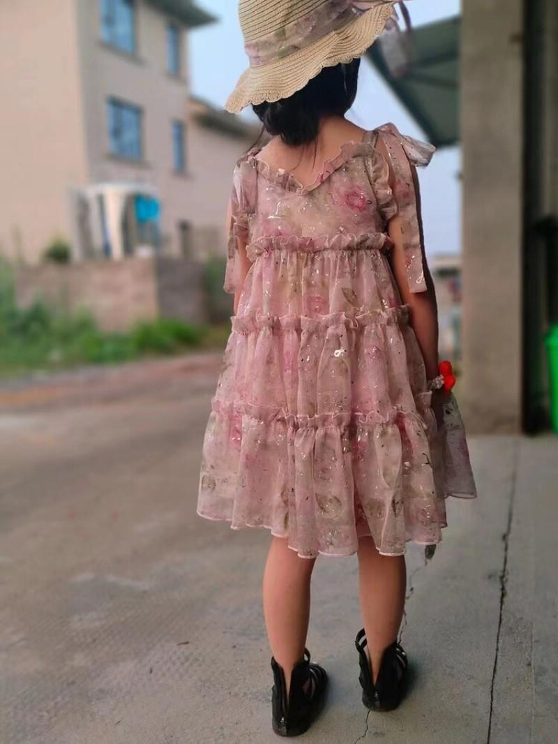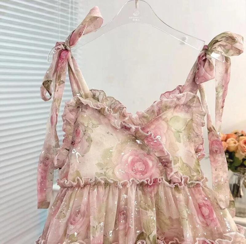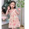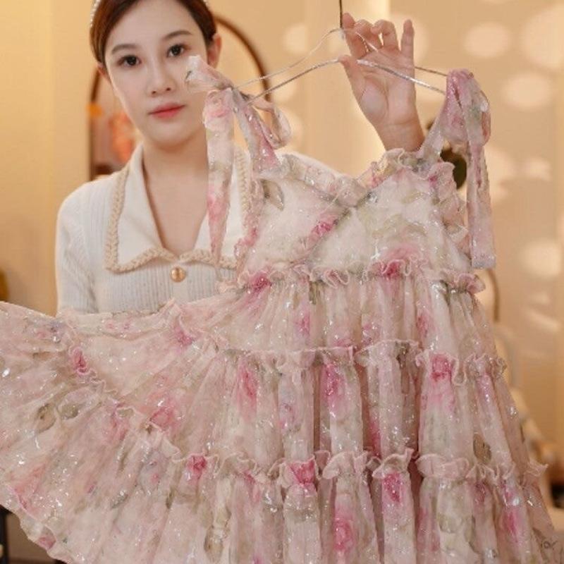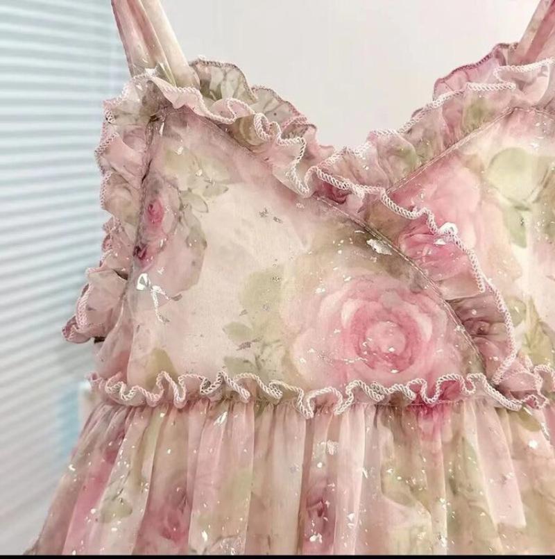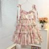 Vestido floral para niña, verano 2025, nuevo, estilo coreano, vestido de princesa con tirantes a la moda para niña, vestido rosa sin mangas