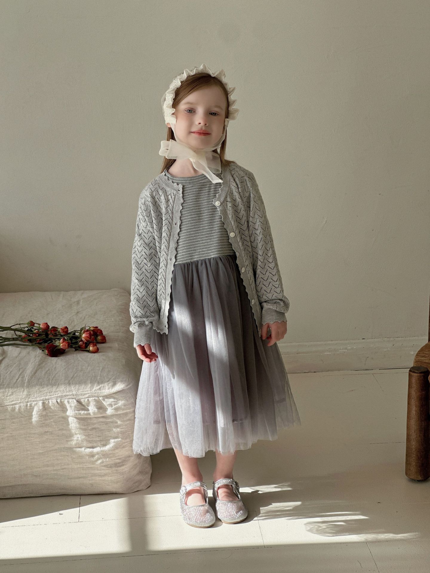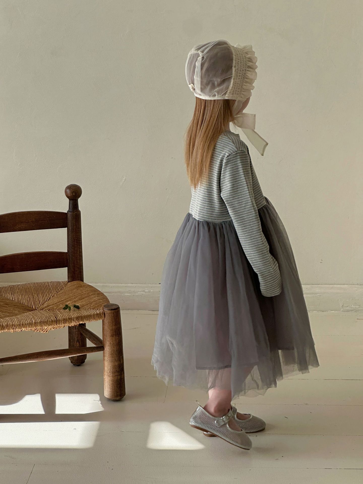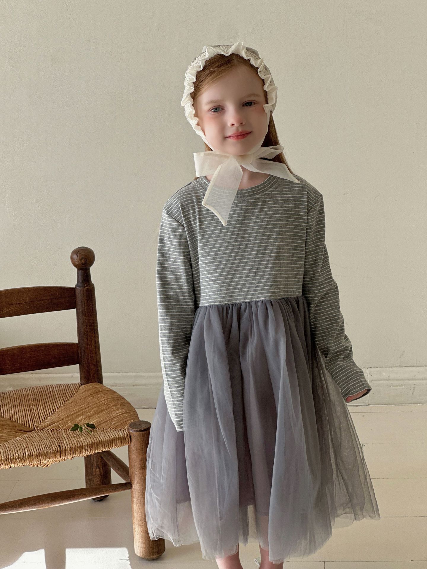 Vestido para Niñas 2025 Primavera y Otoño Nuevo Vestido de Princesa de Manga Larga Estilo Bebé con Falda de Malla Dulce de Parches