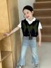 Chaleco de punto con cuello en V romboidal vintage para niña princesa Yuyu, chaleco corto de lana estilo universitario para niña pequeña.
