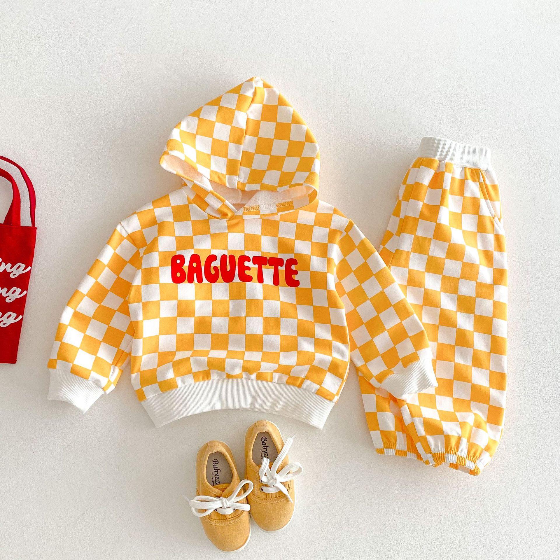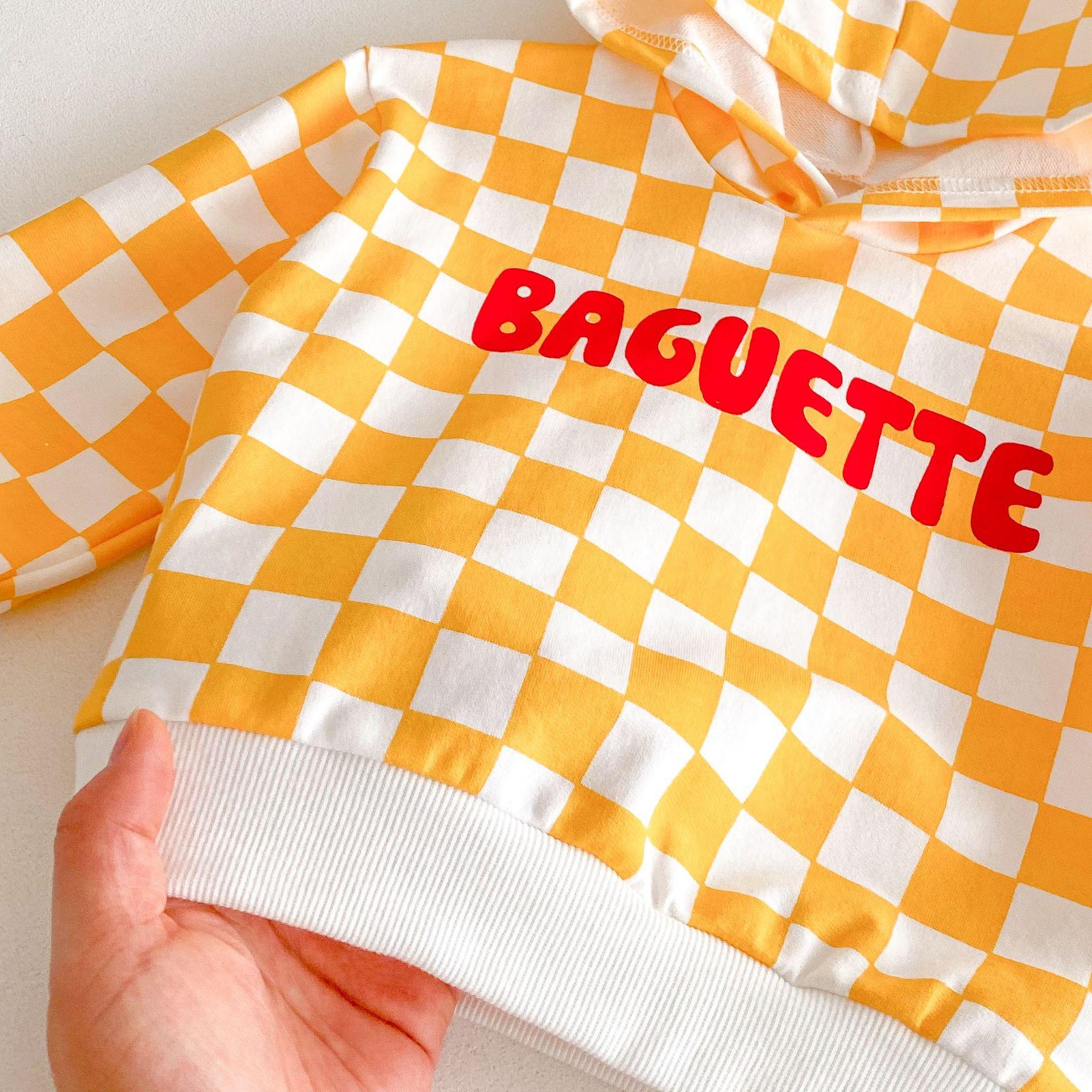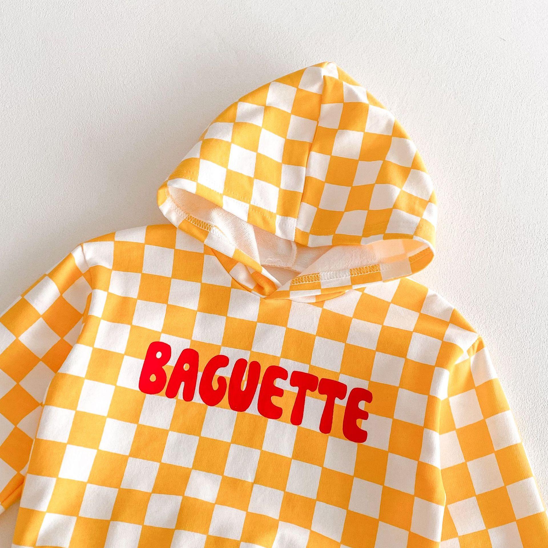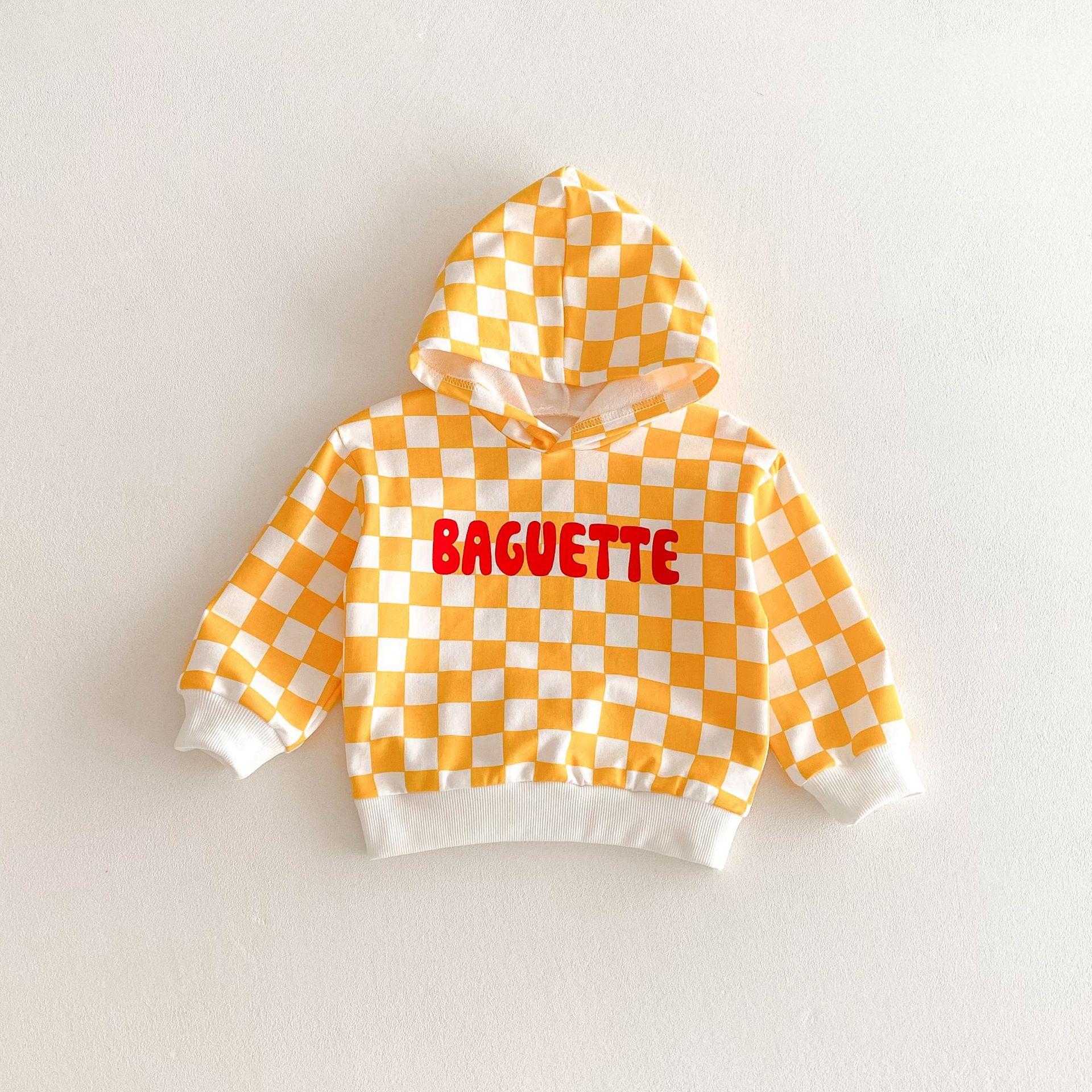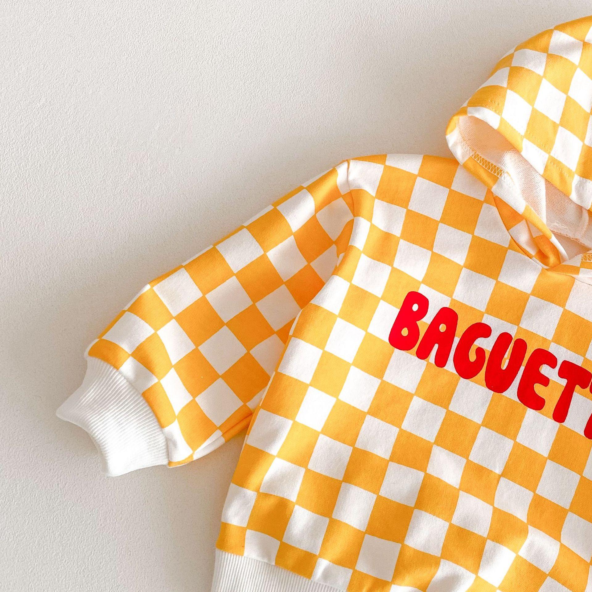 Traje de primavera 2025 para niños, estilo coreano, con letras, bloques de color, cuadros, estilo occidental, con capucha y manga larga para hombres y mujeres.