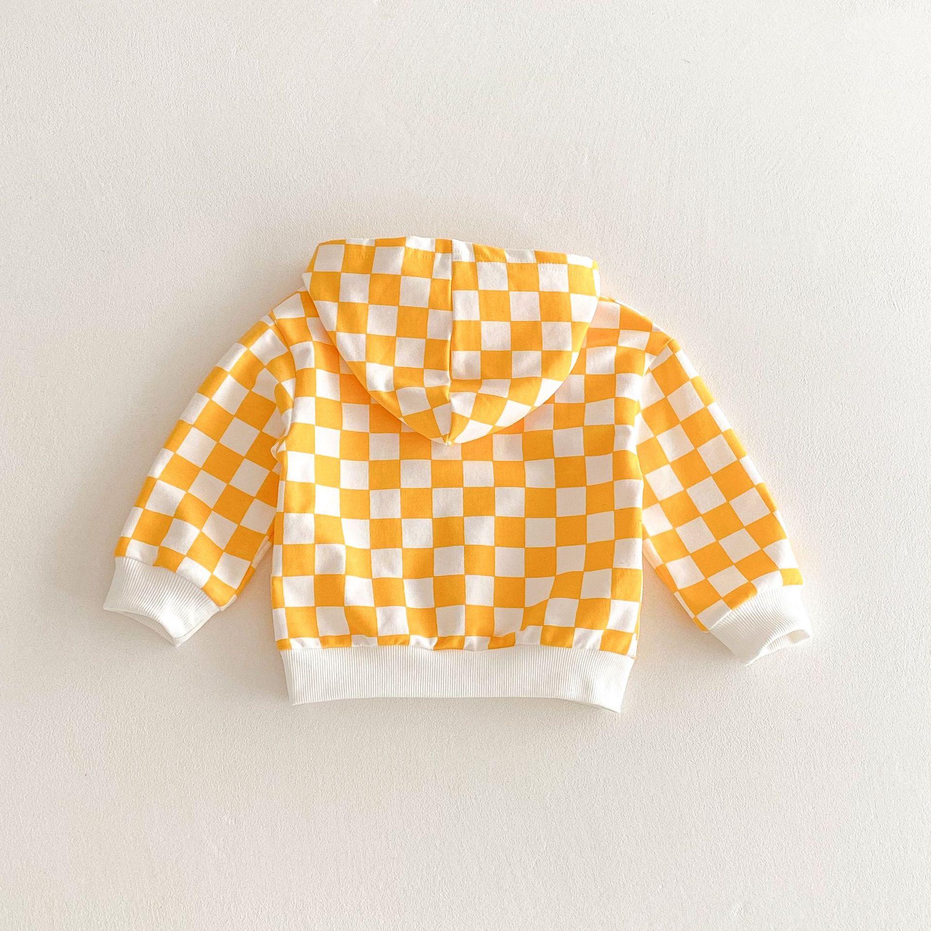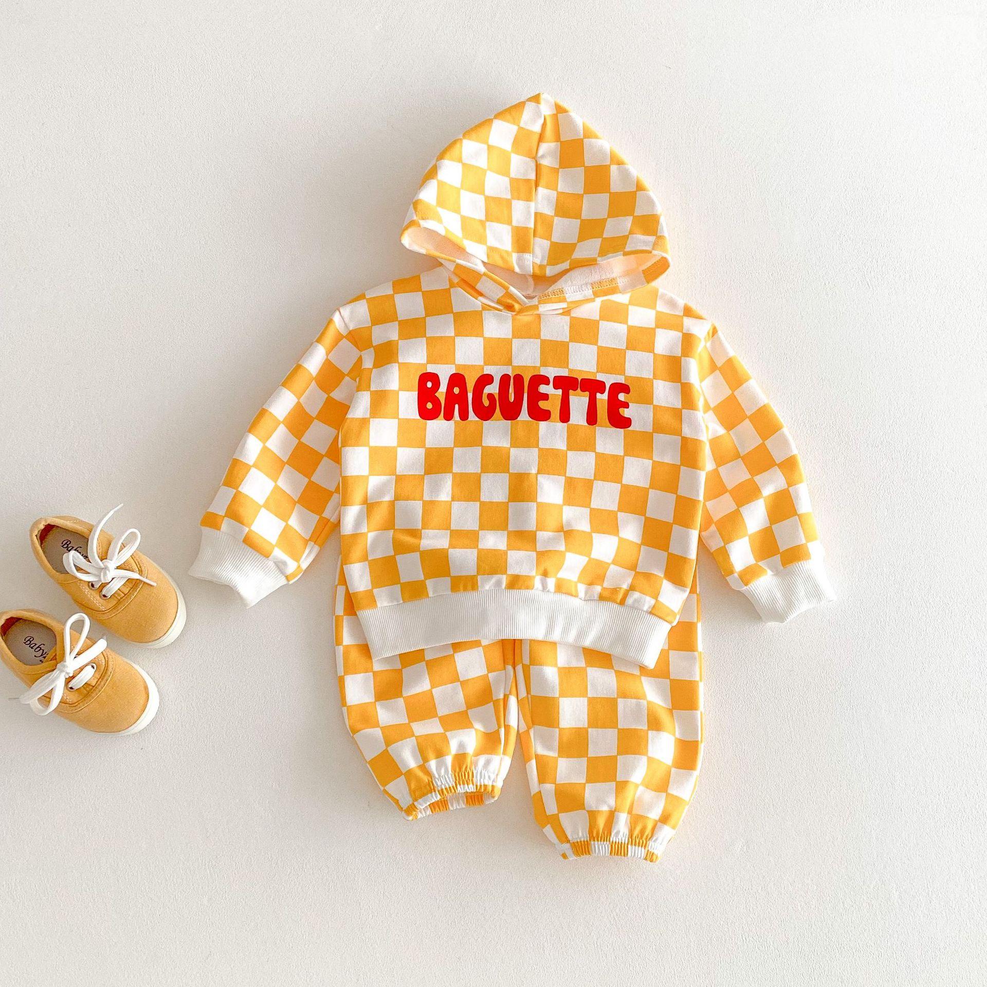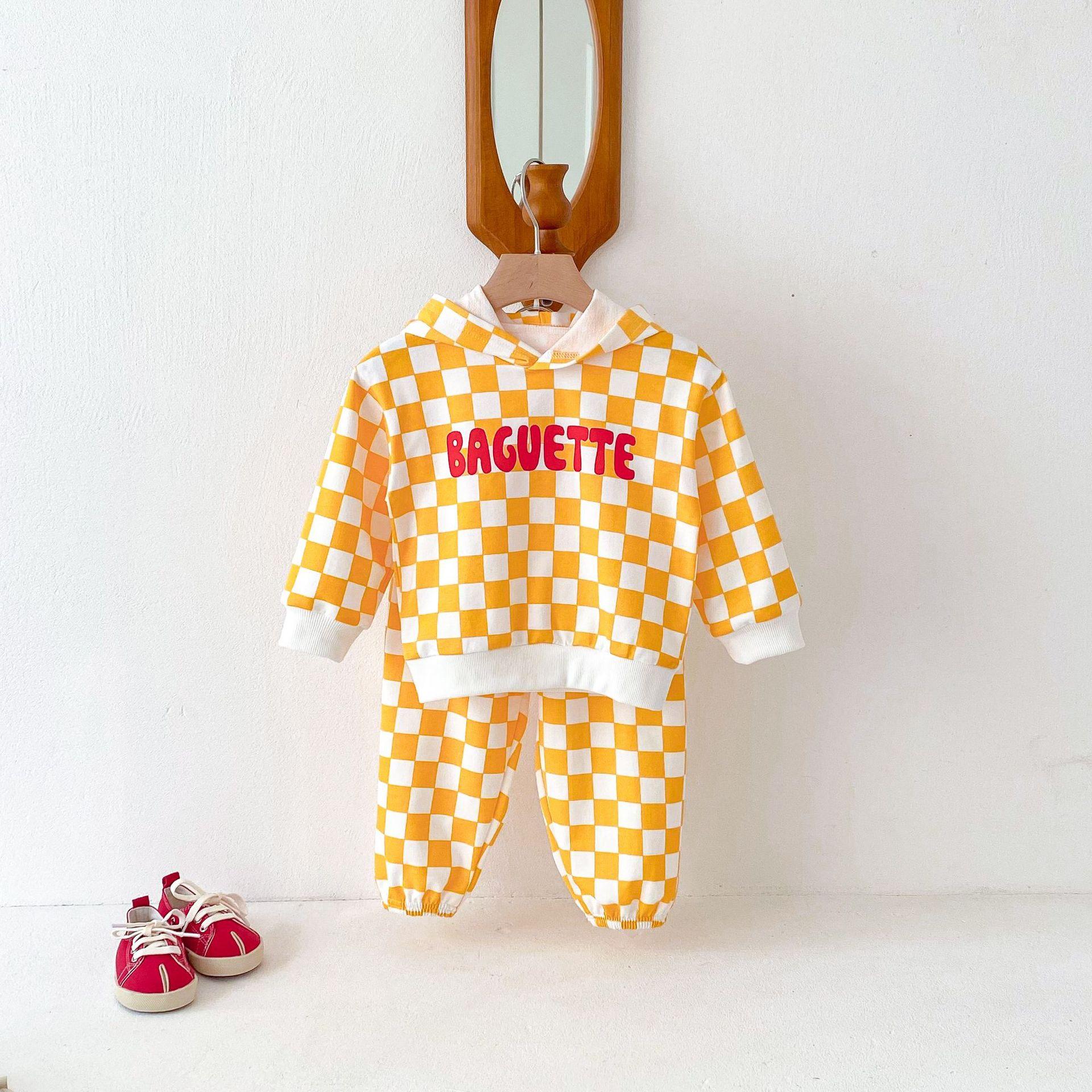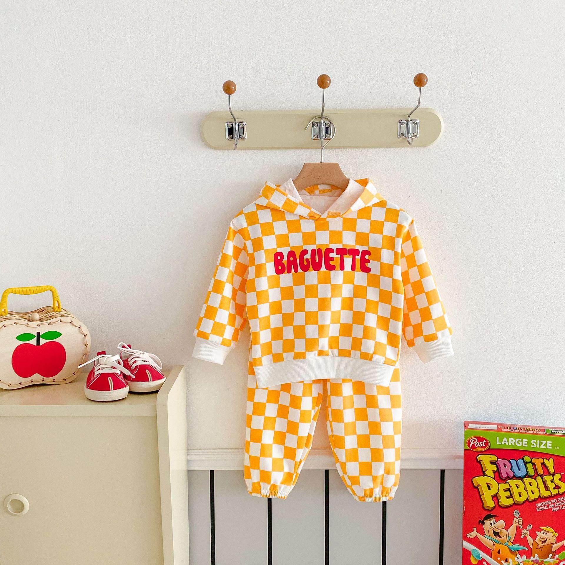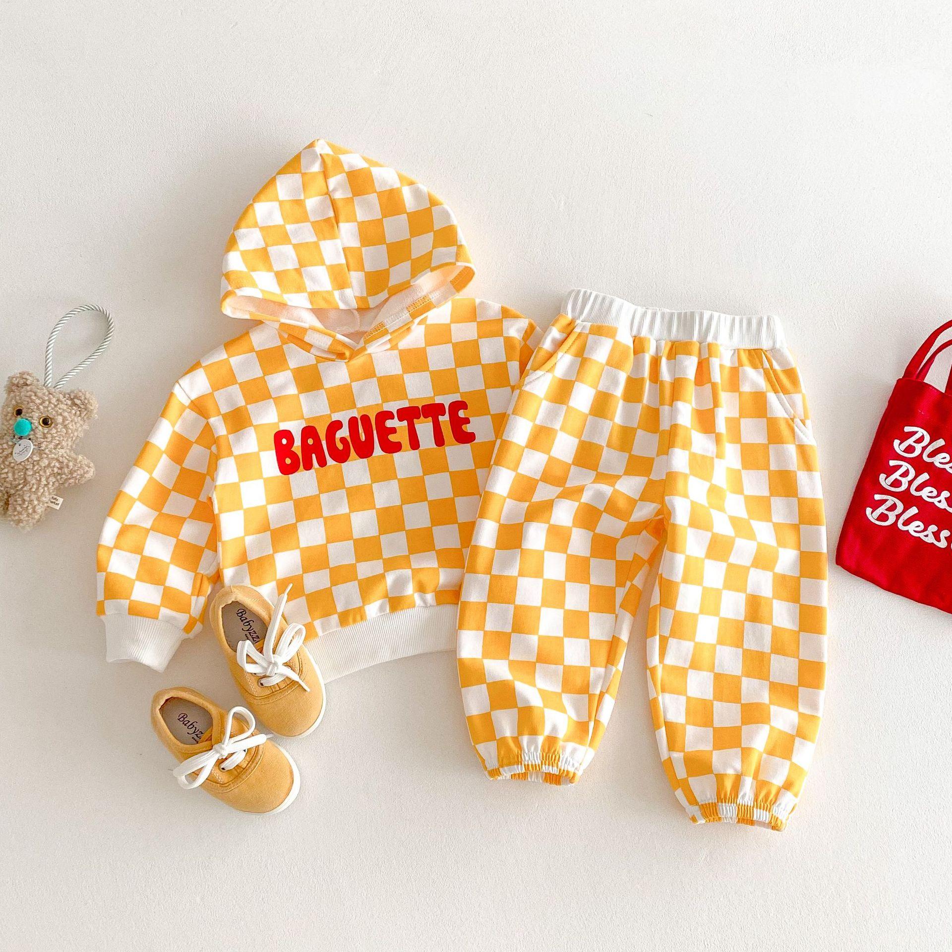 Traje de primavera 2025 para niños, estilo coreano, con letras, bloques de color, cuadros, estilo occidental, con capucha y manga larga para hombres y mujeres.