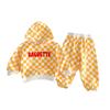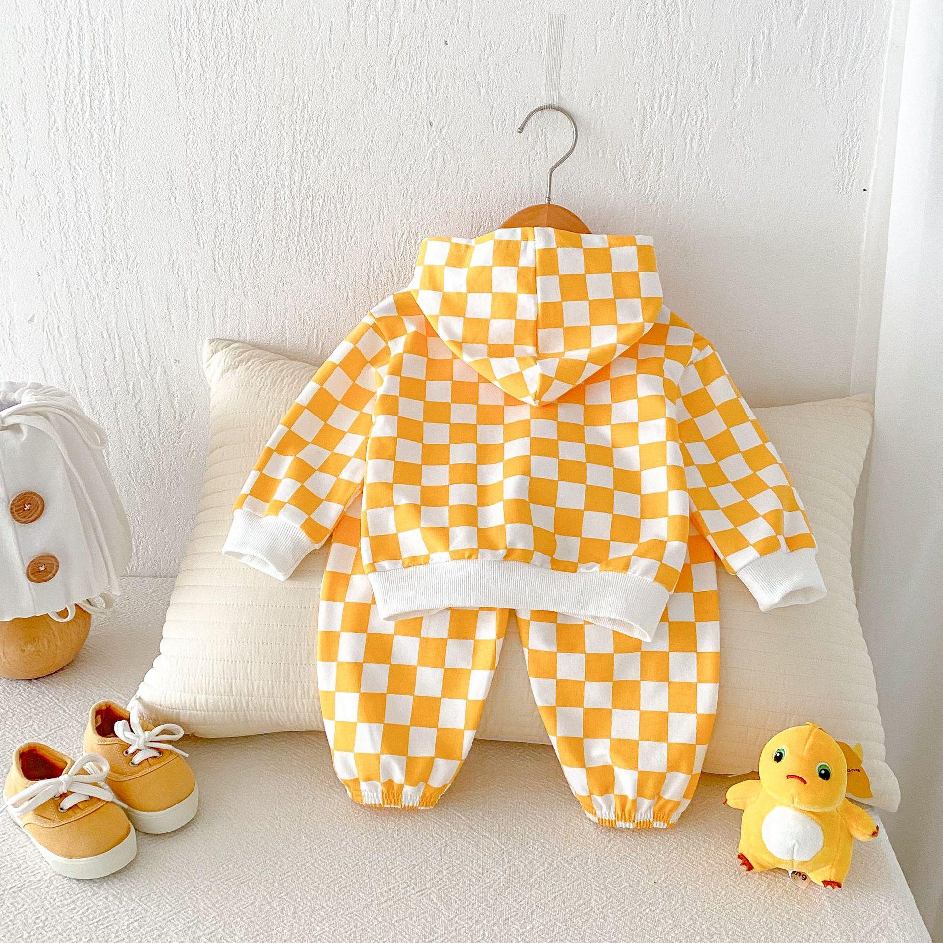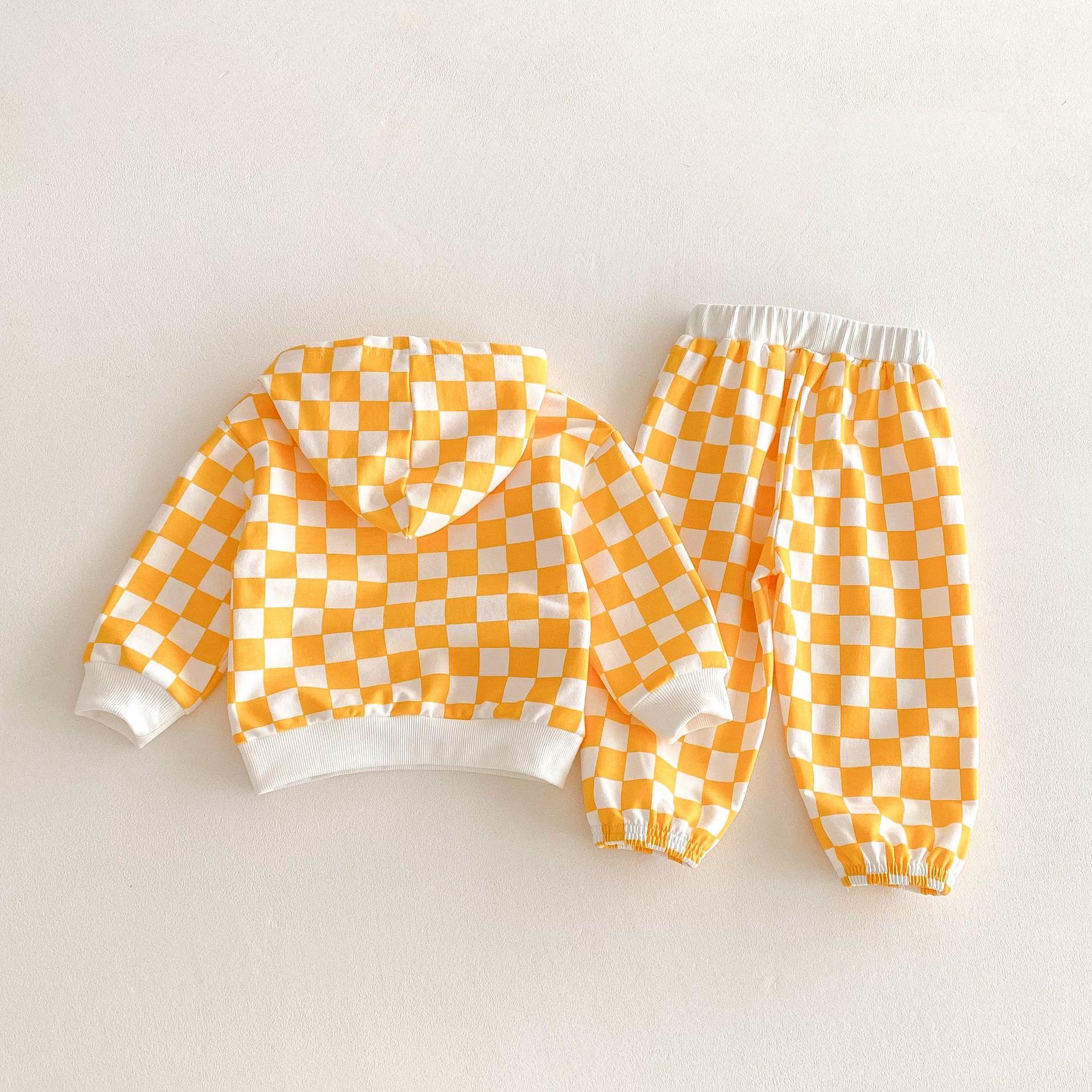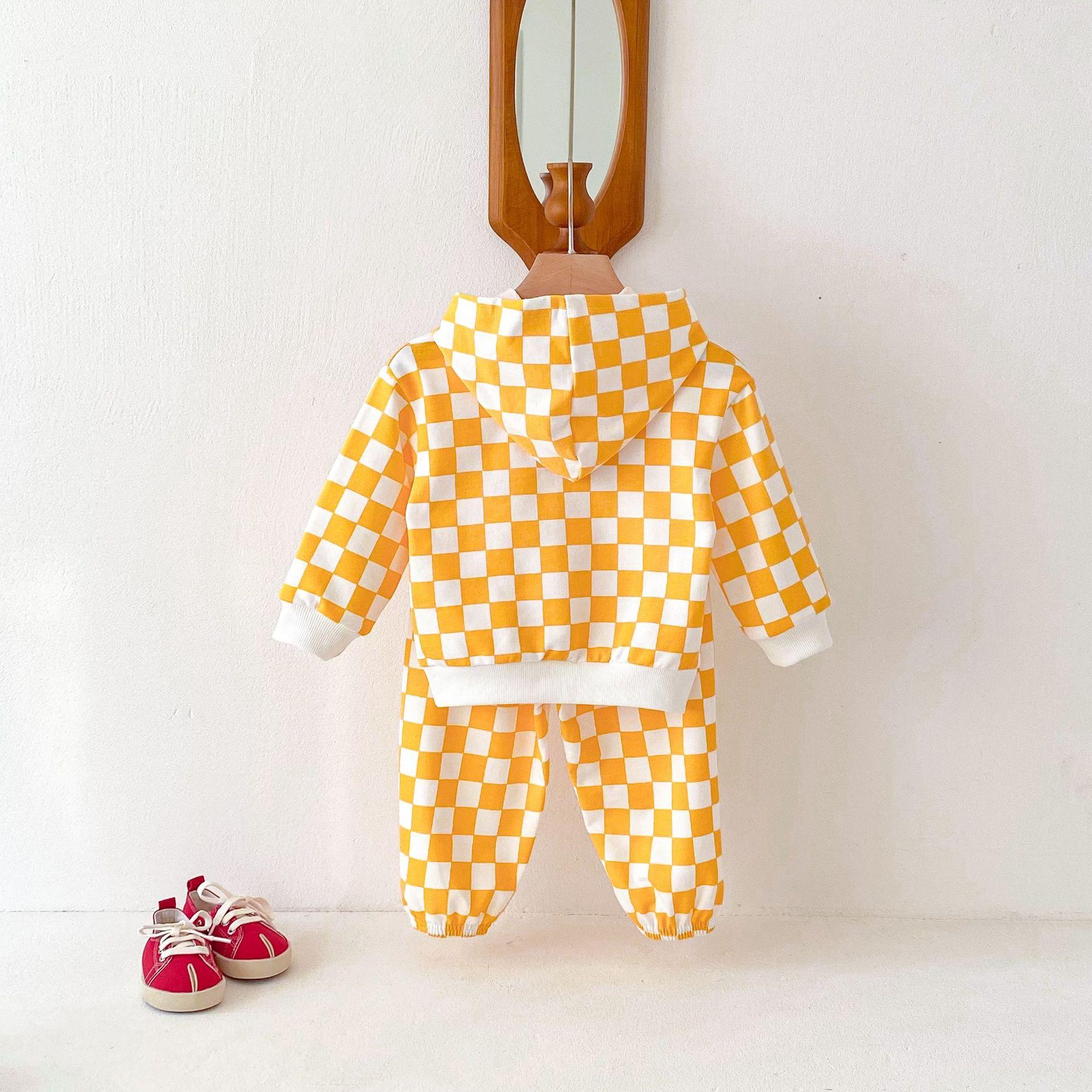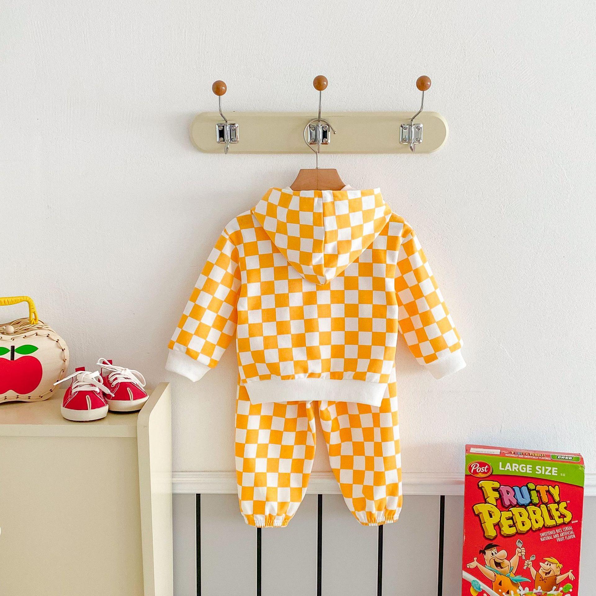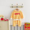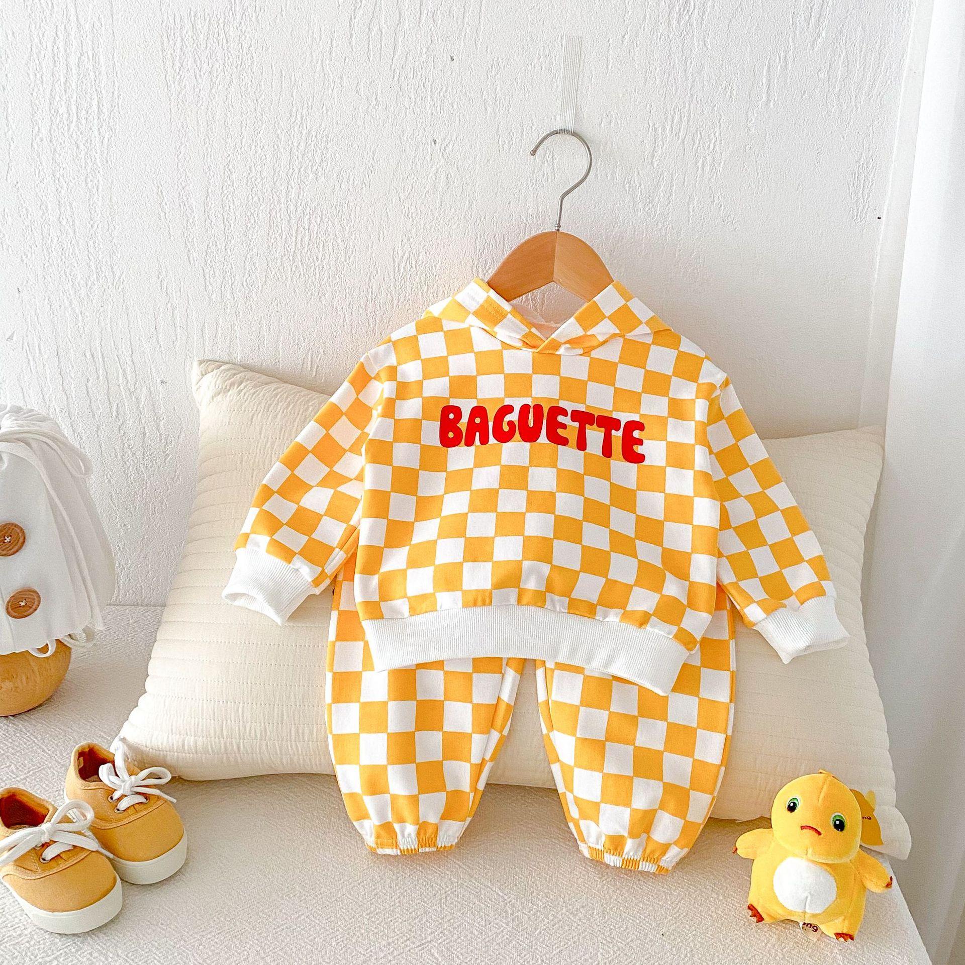 Traje de primavera 2025 para niños, estilo coreano, con letras, bloques de color, cuadros, estilo occidental, con capucha y manga larga para hombres y mujeres.