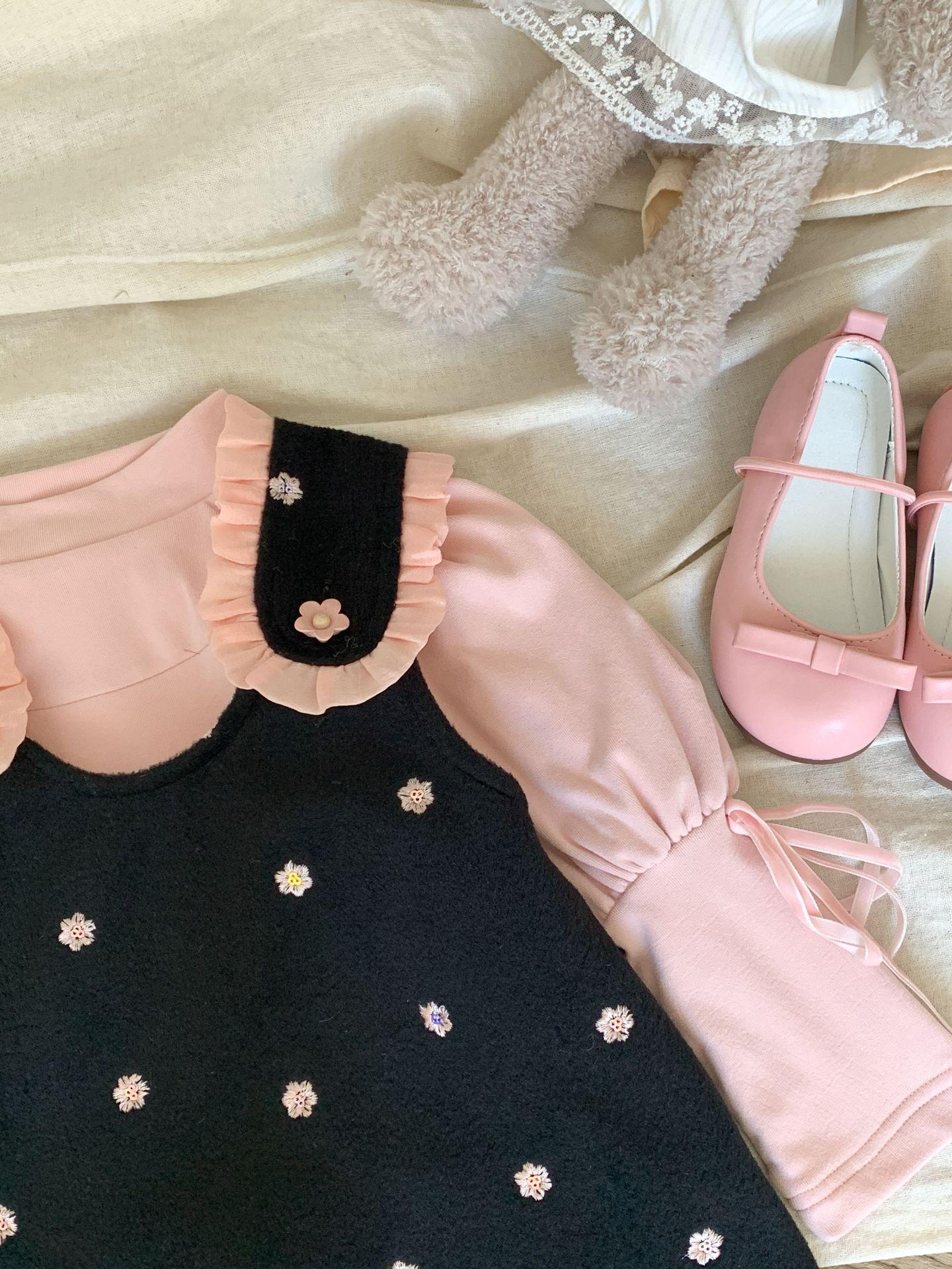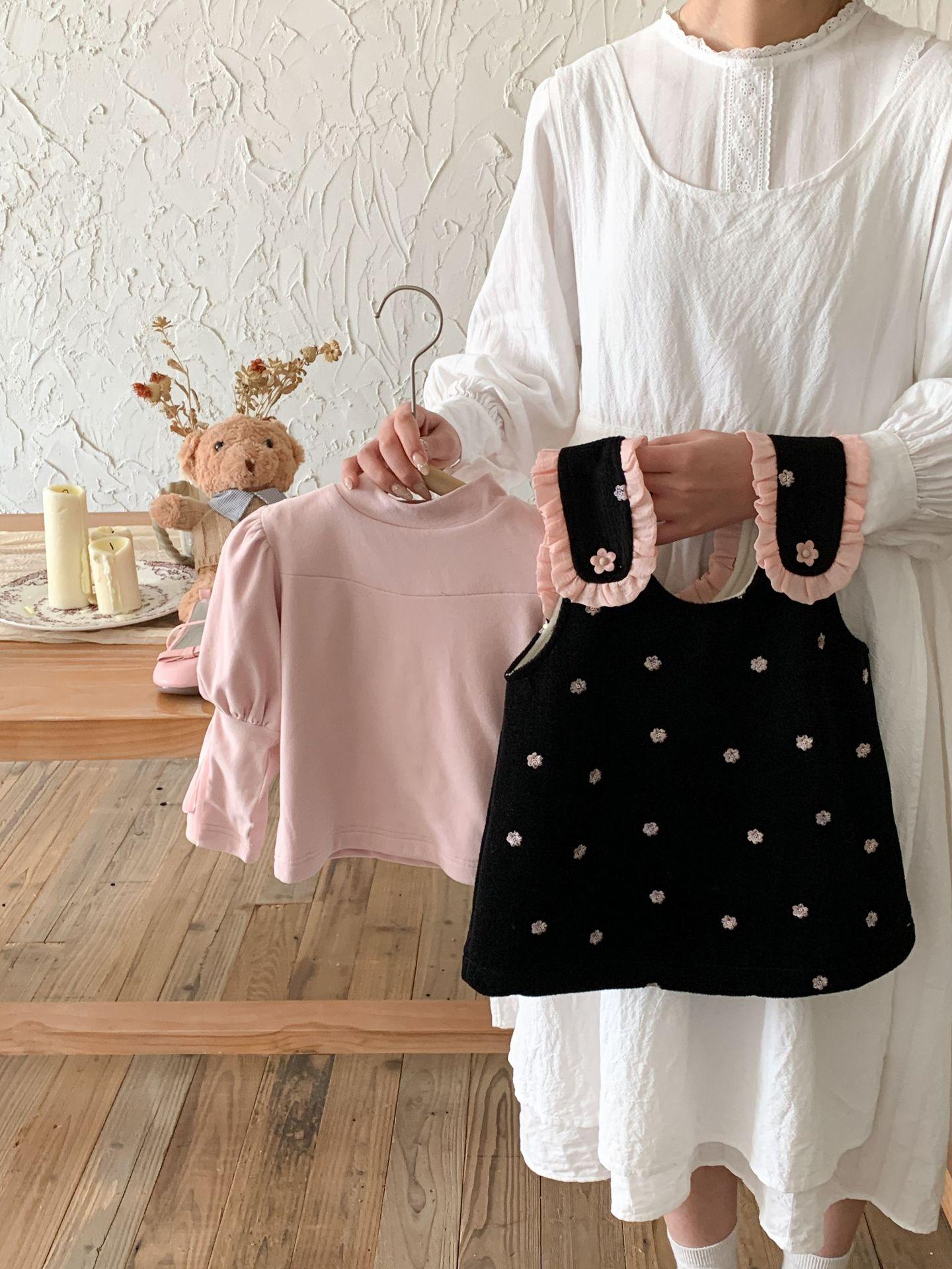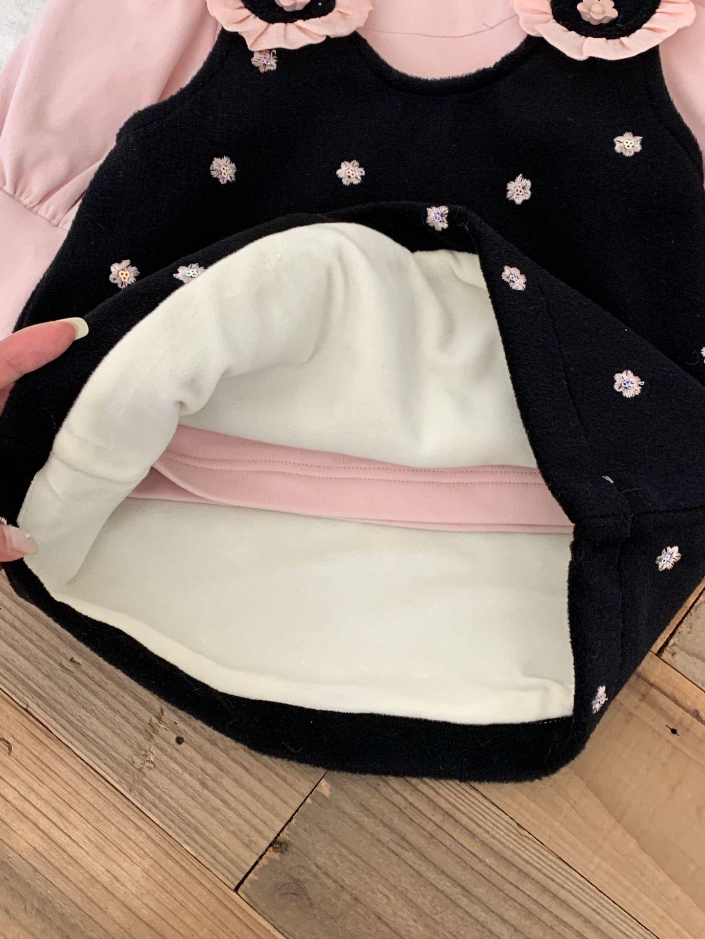 Conjunto para Niñas 24 Invierno Versión Coreana Vestido Chaleco de Lana Bordado Floral Manga Abullonada Estilo Princesa Coreana Infantil