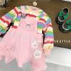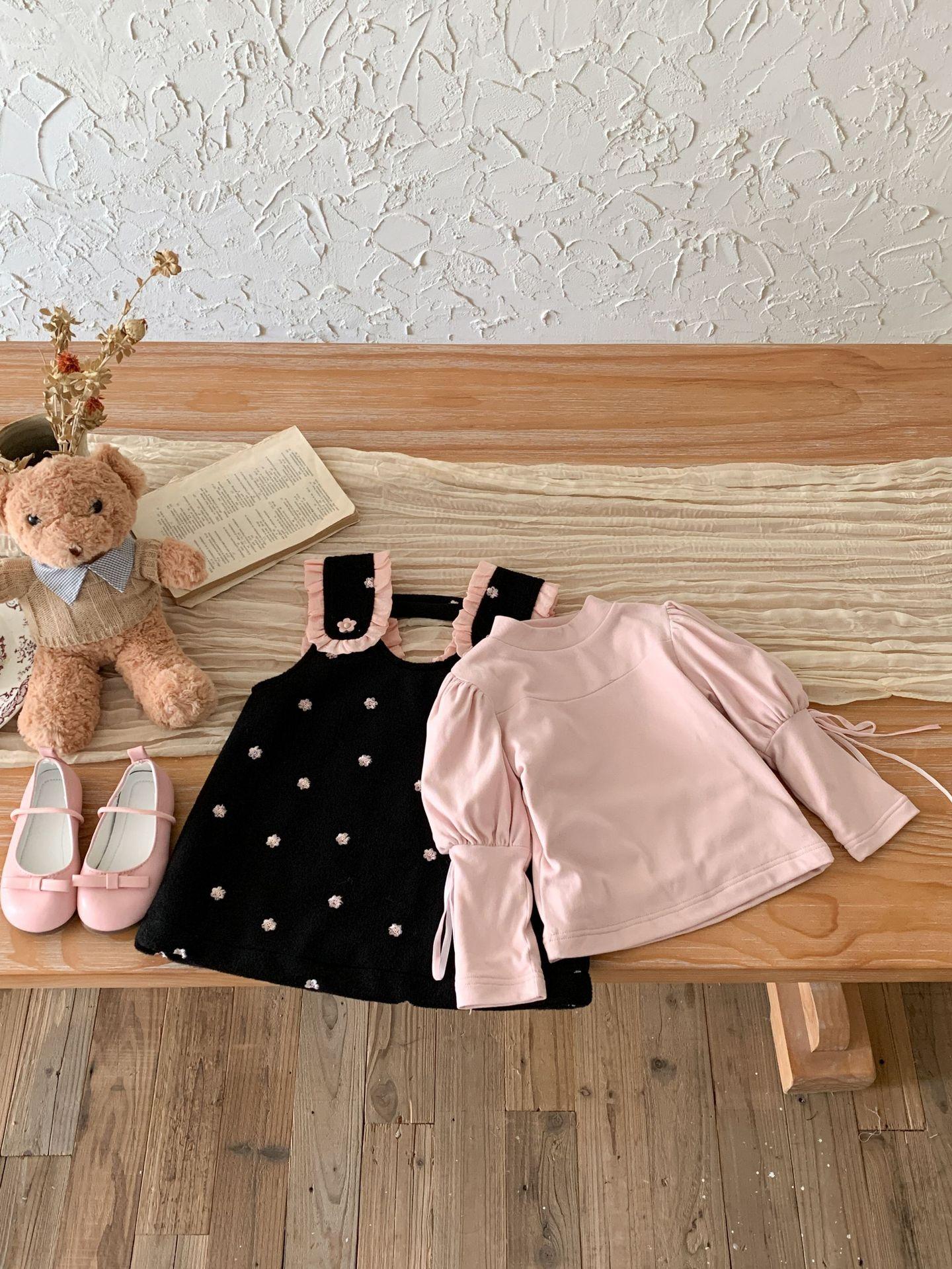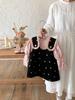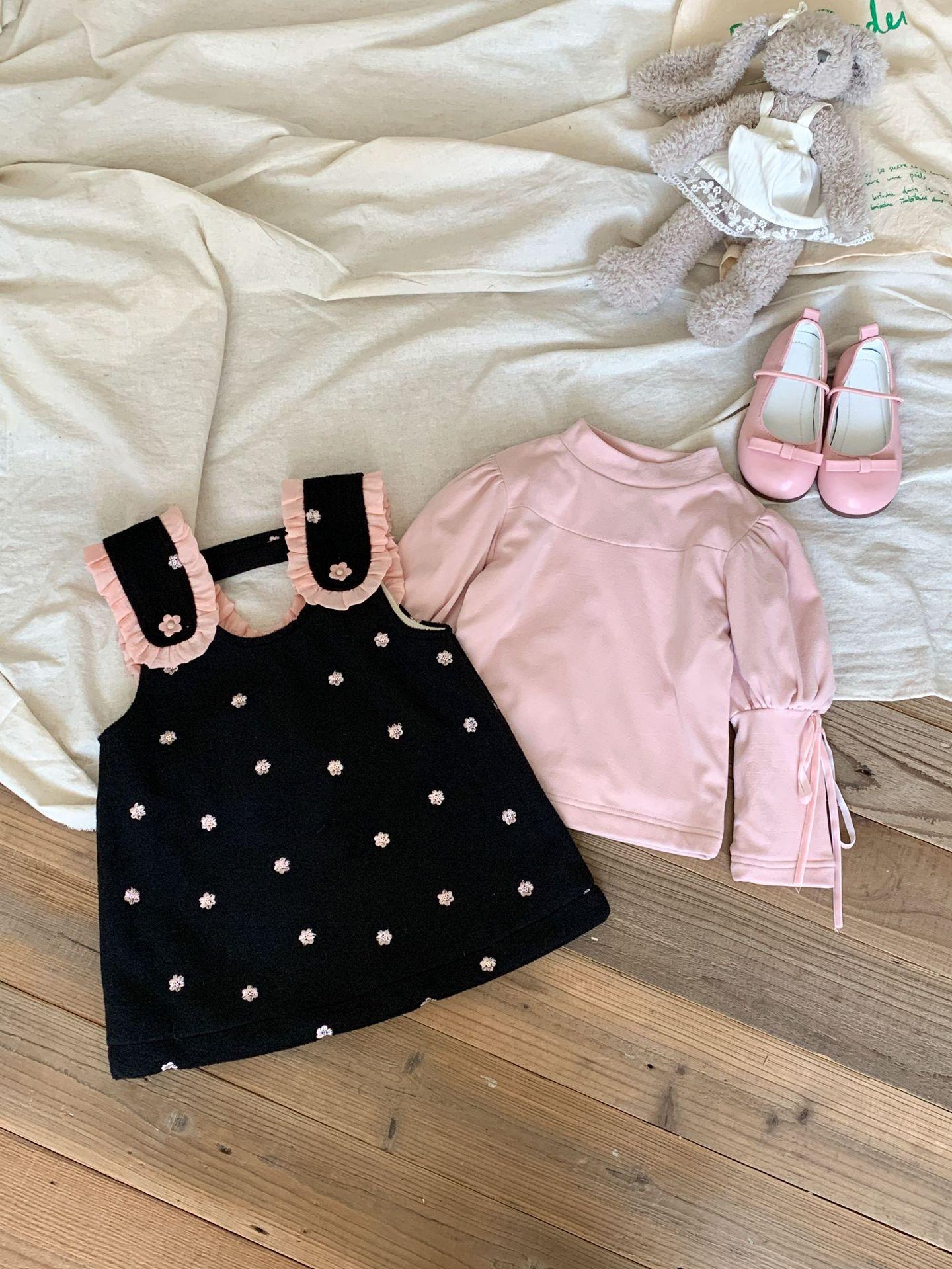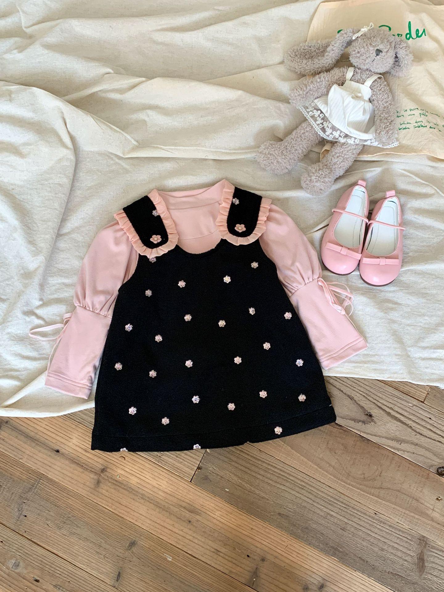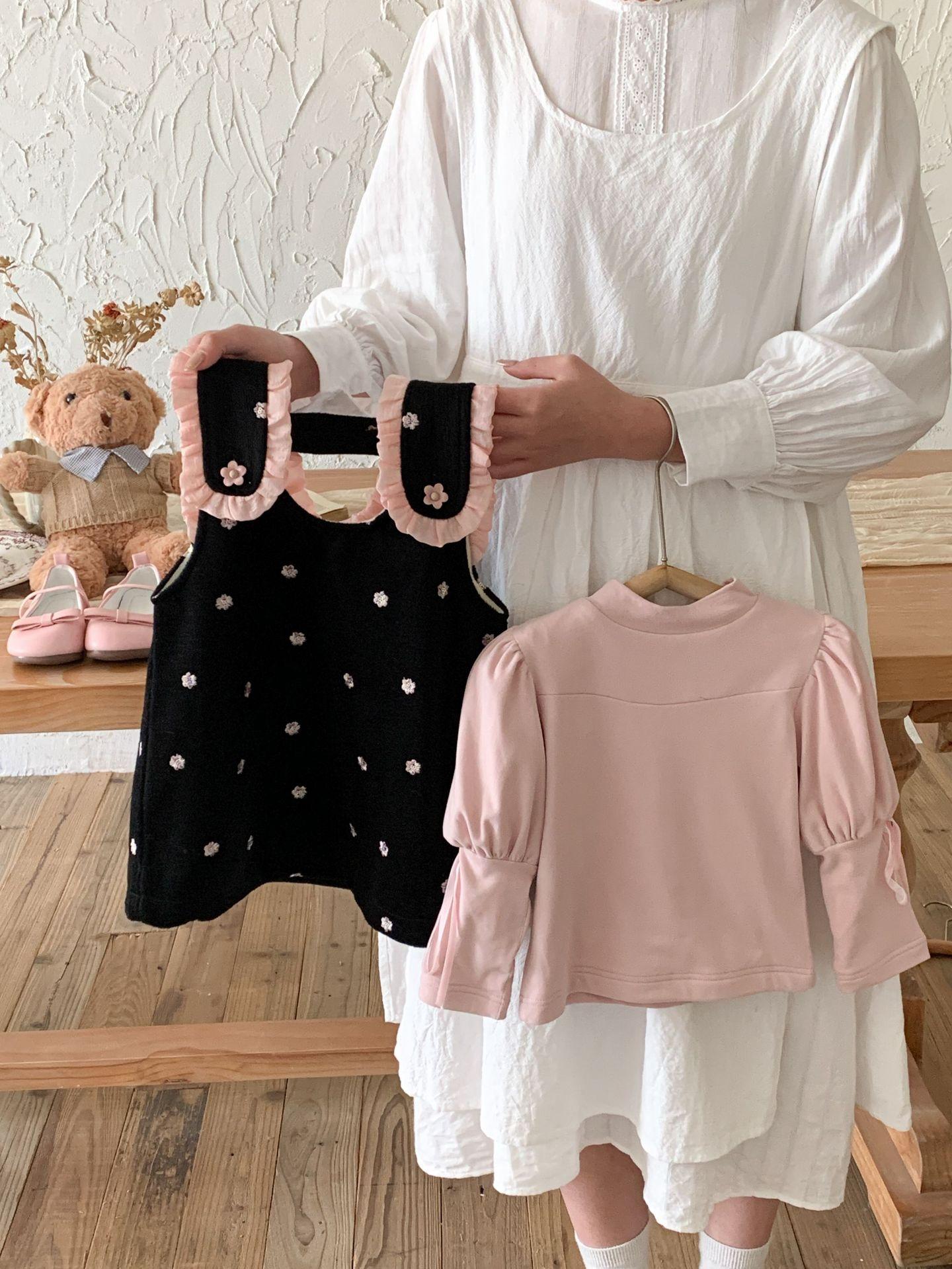 Conjunto para Niñas 24 Invierno Versión Coreana Vestido Chaleco de Lana Bordado Floral Manga Abullonada Estilo Princesa Coreana Infantil