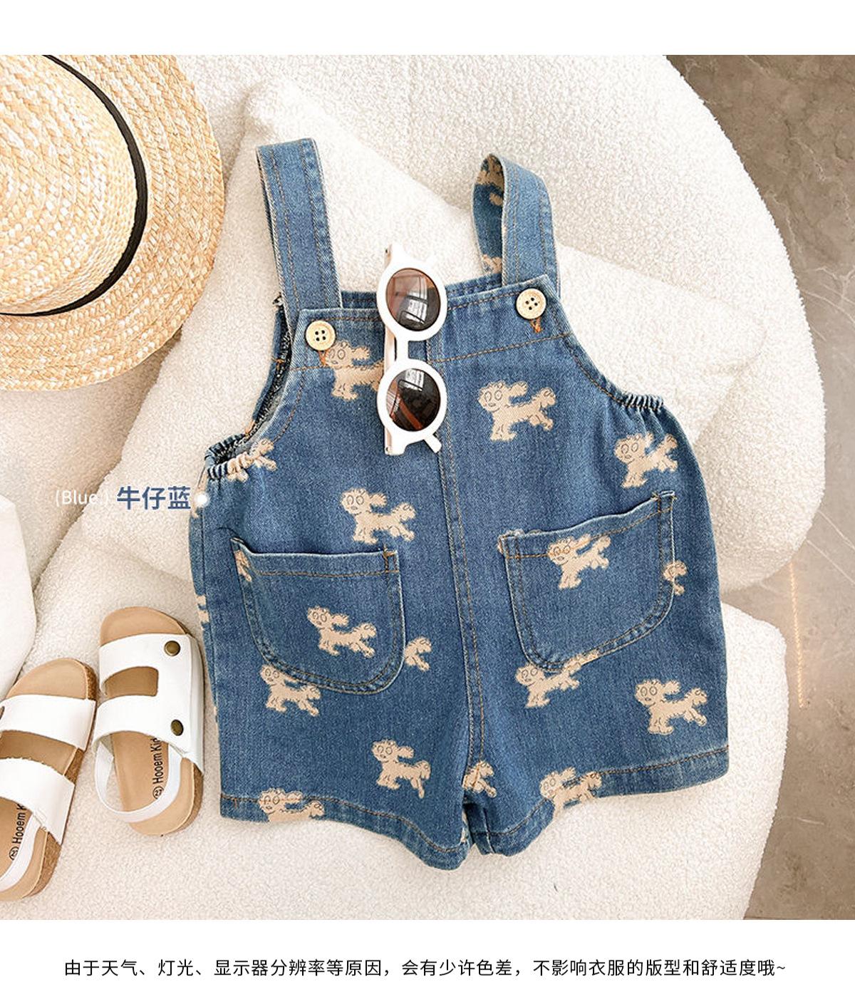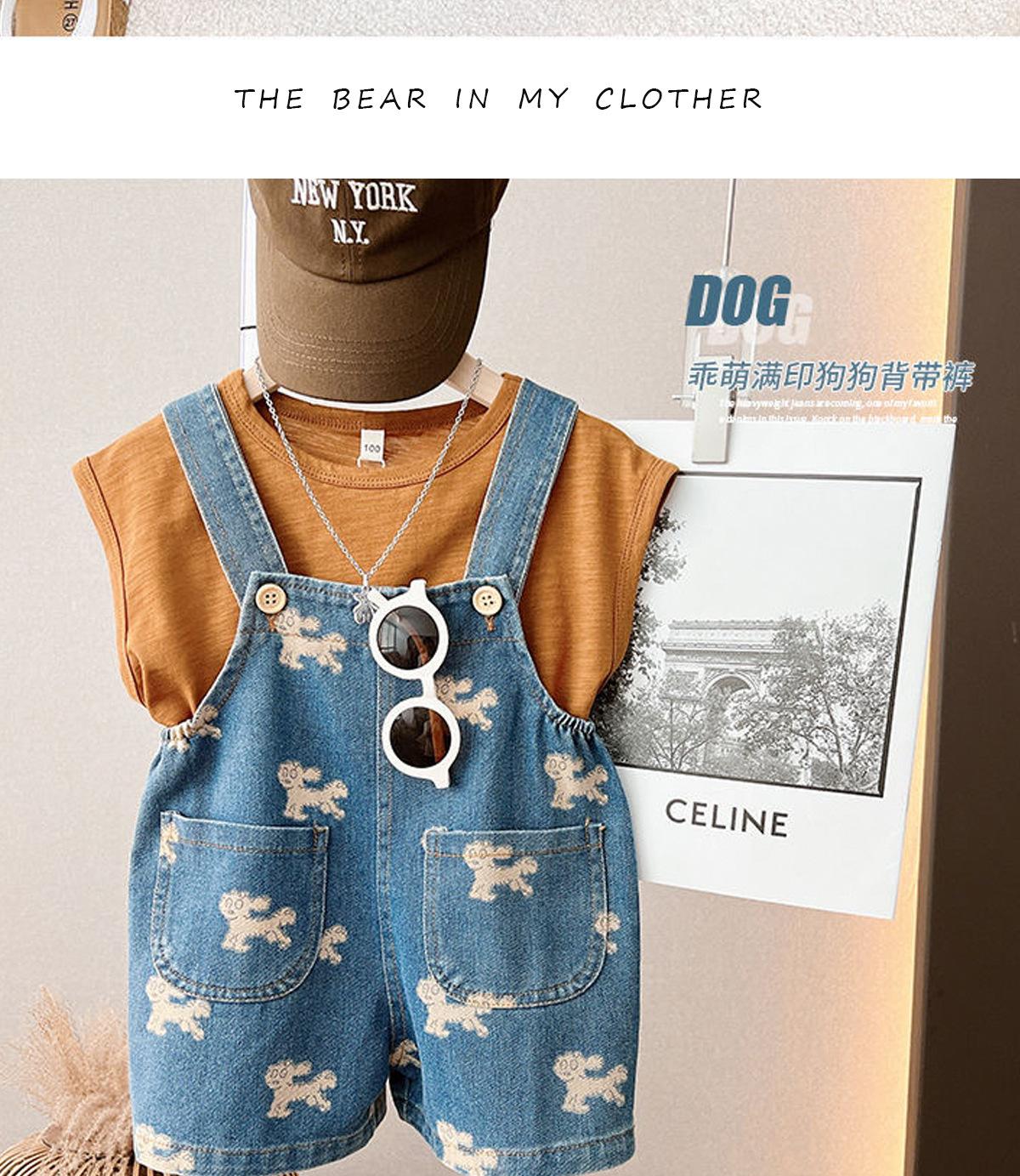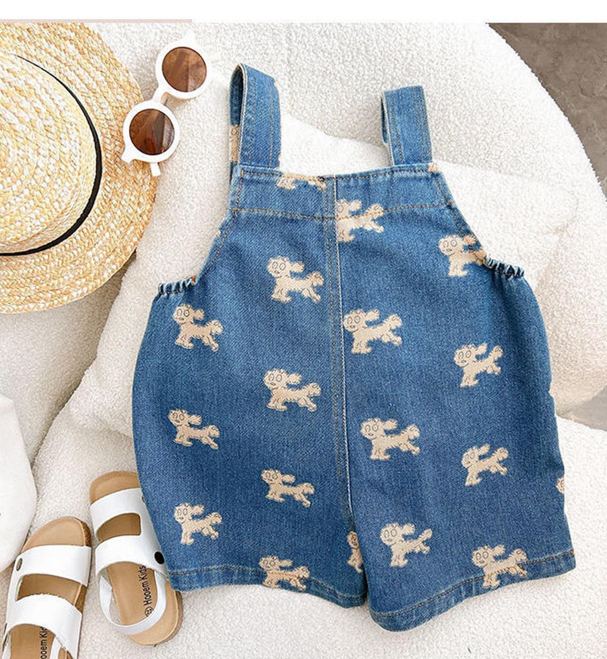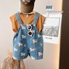Coreano Nuevo Niños Niños y Niñas Infantil Primavera y Verano 2025 Lindo Estampado Completo Cachorro Tirantes de Mezclilla Cómodo Combinable