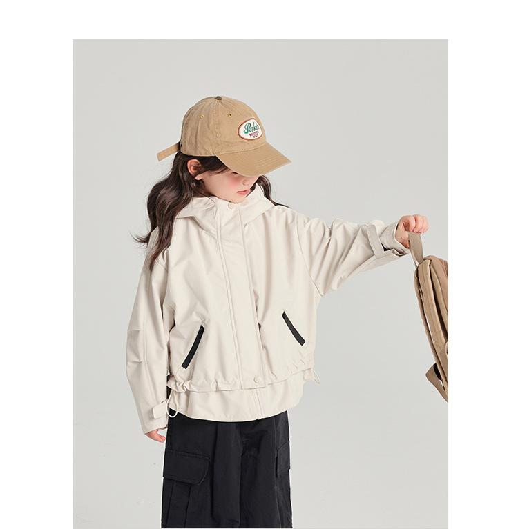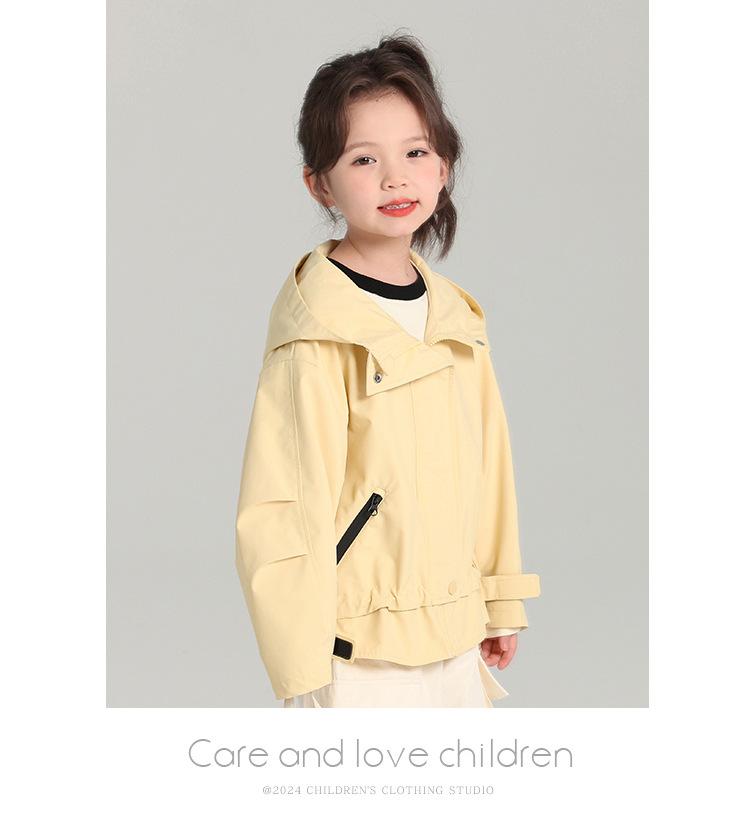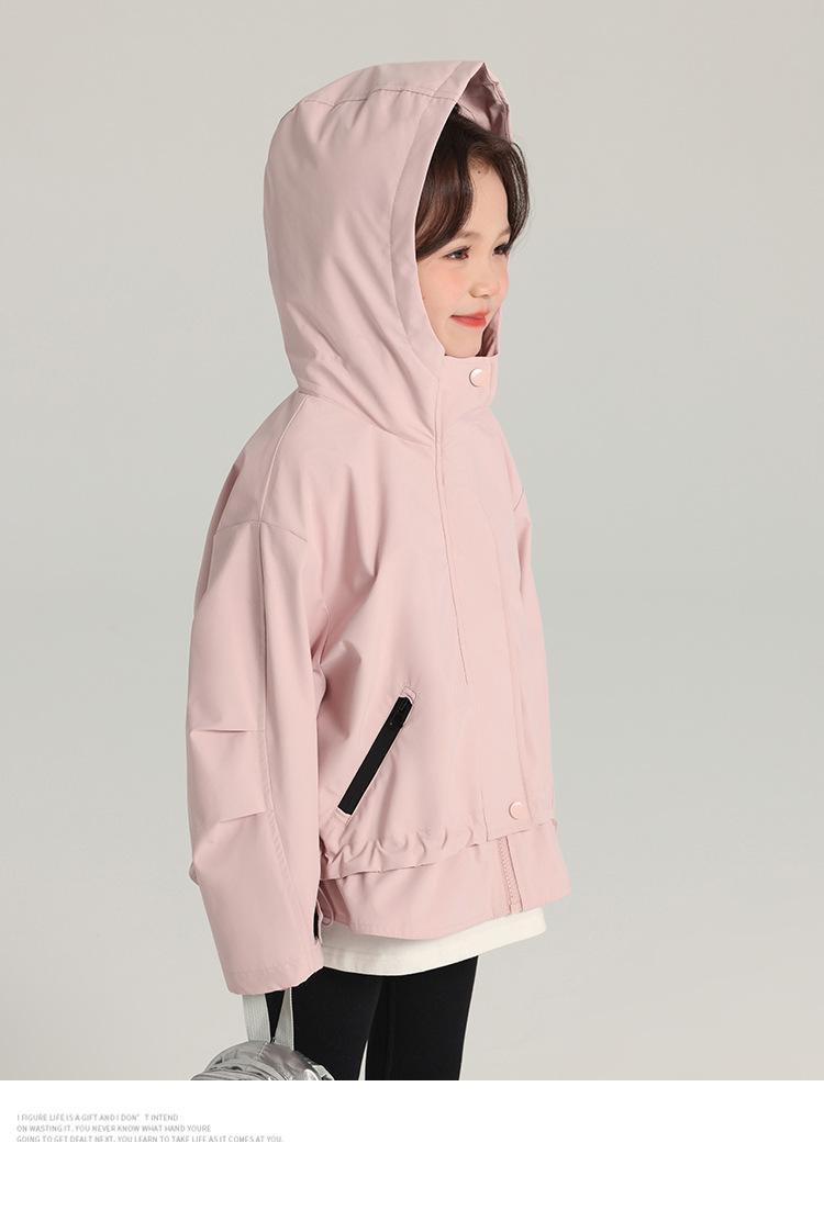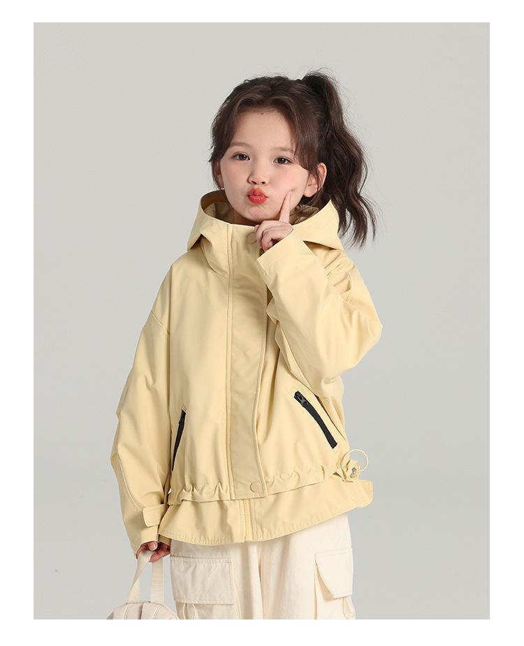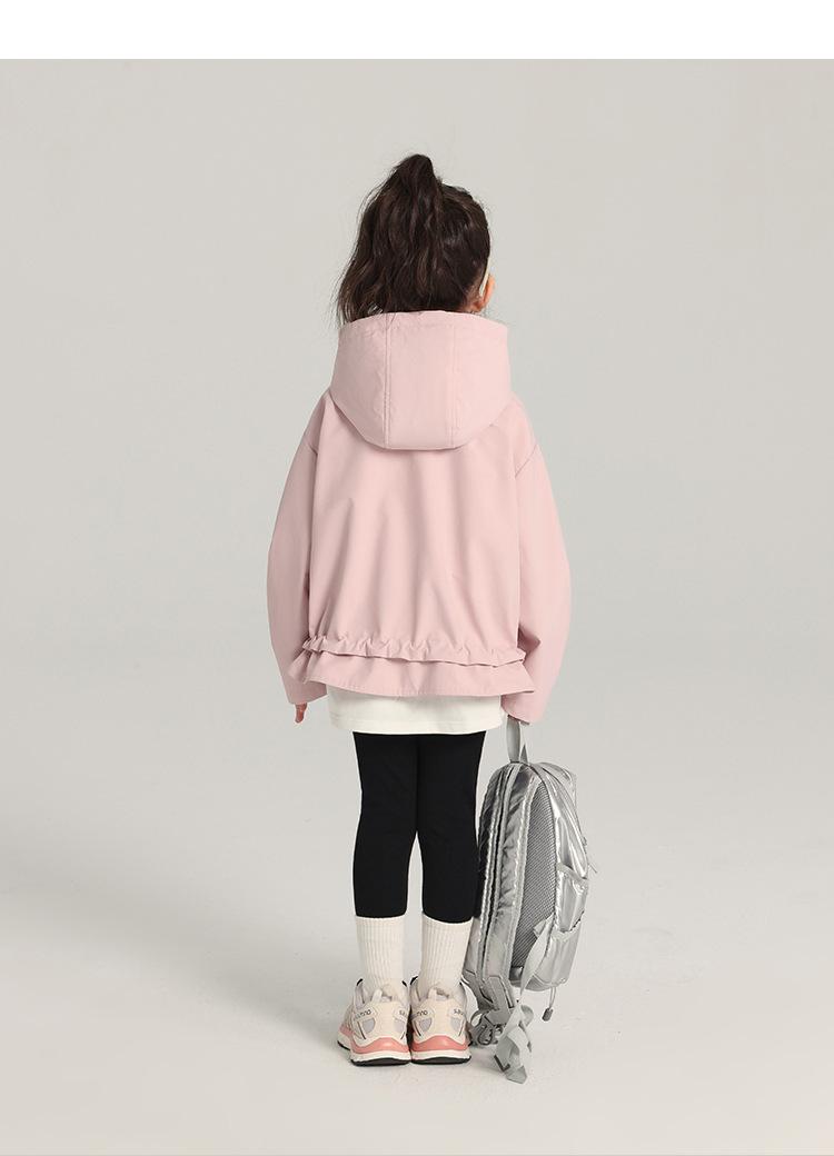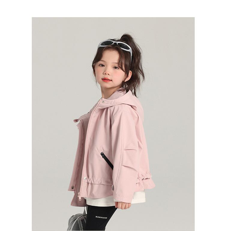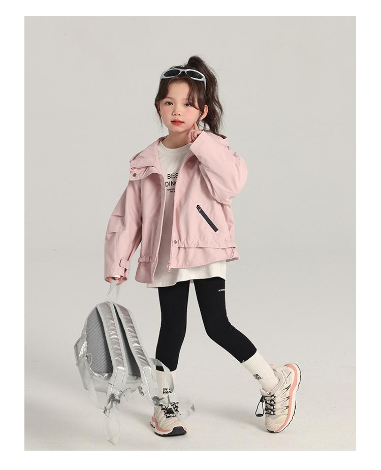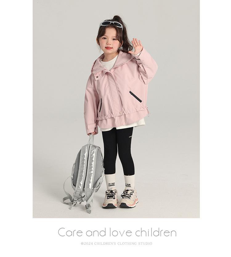 Abrigo de niña de primavera 2025, nuevo, de tres capas, para niños, bonito y bonito abrigo tejido con capucha y cortavientos.