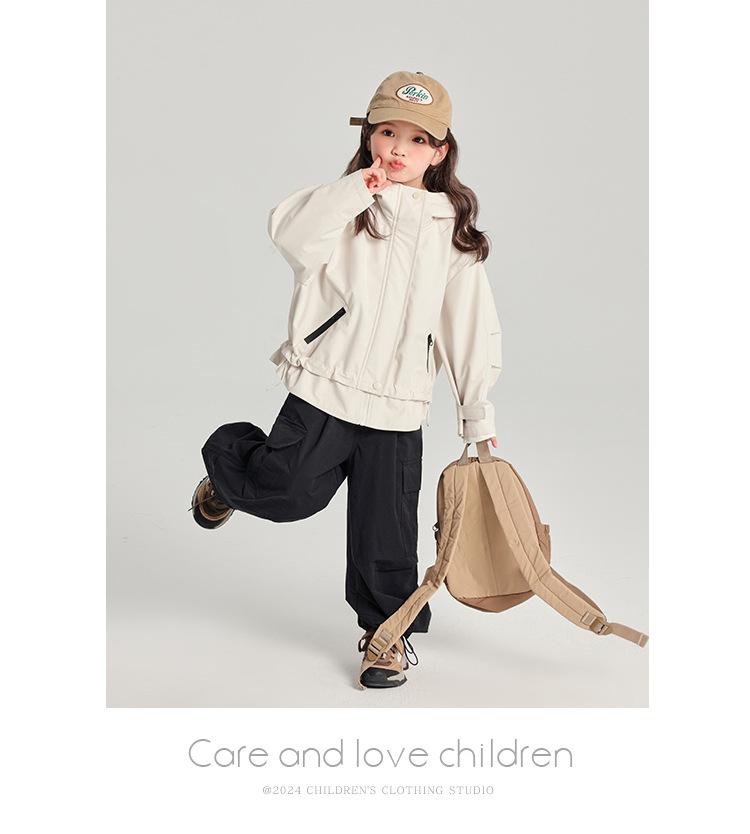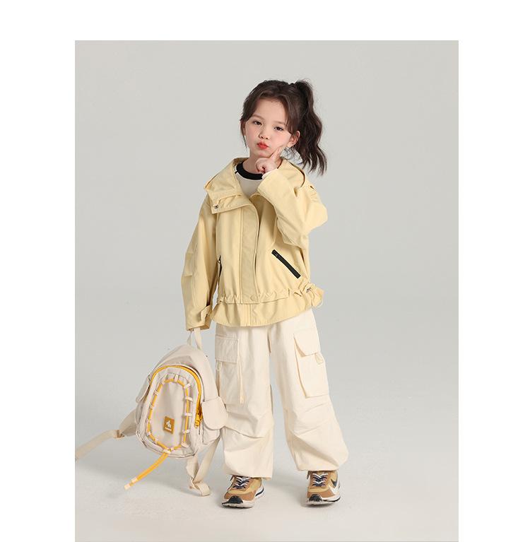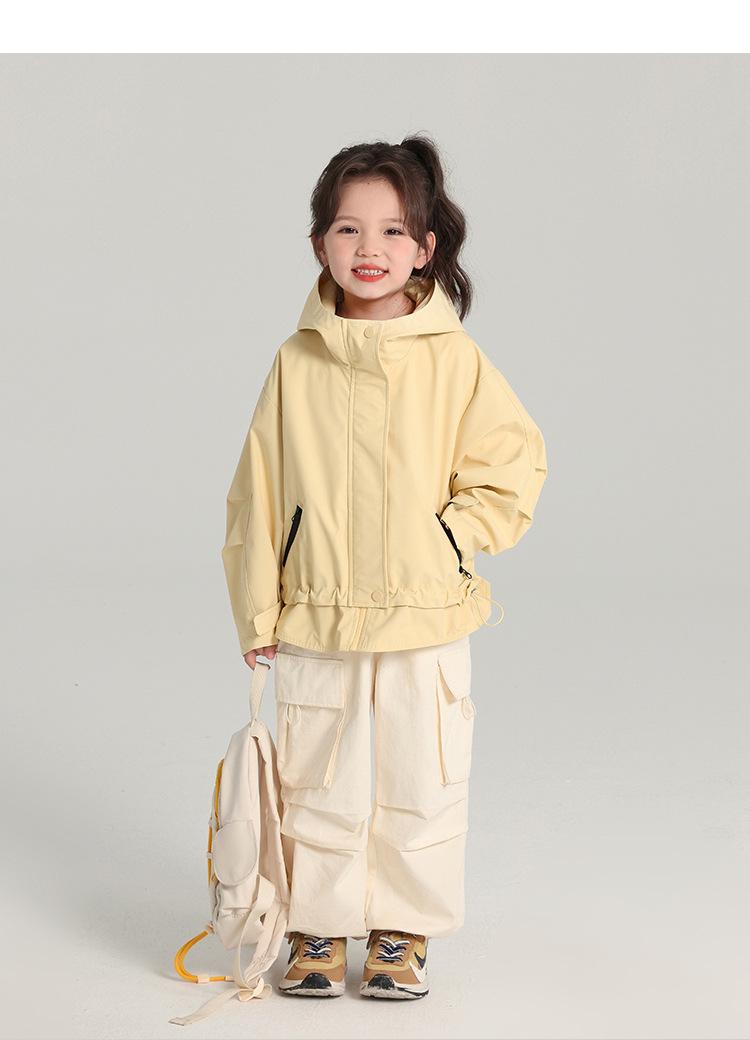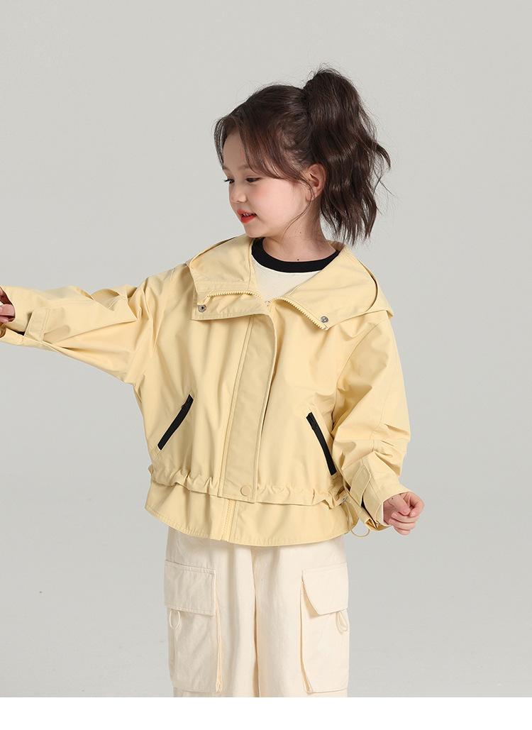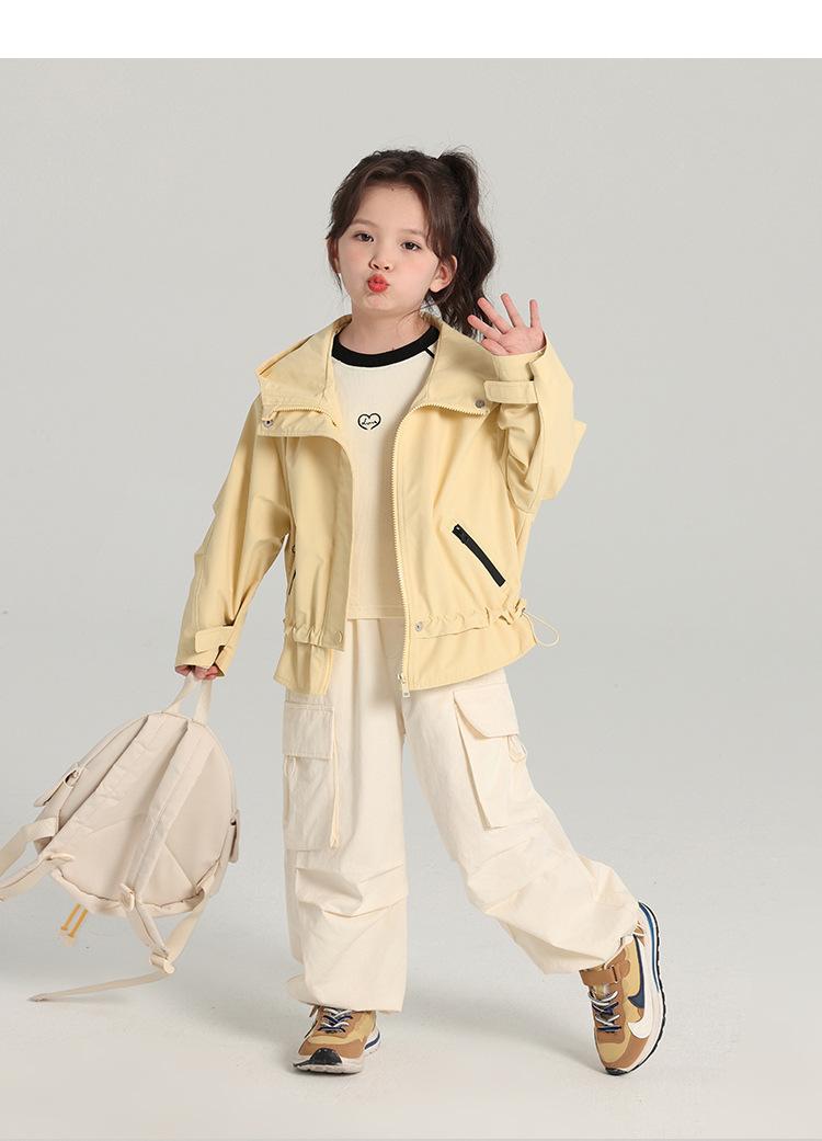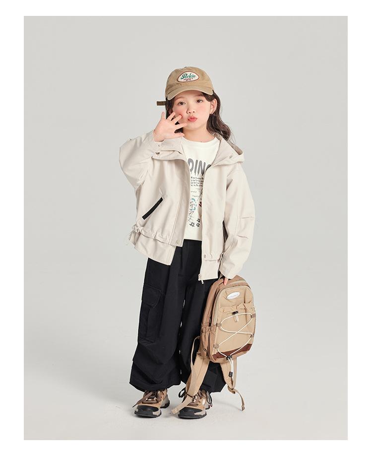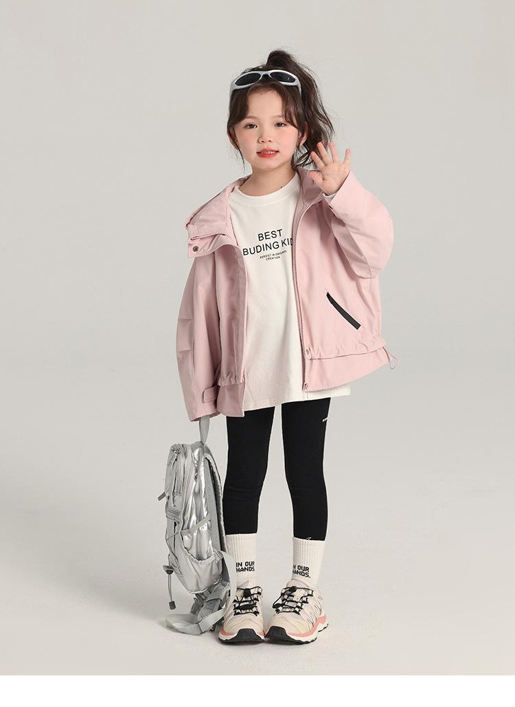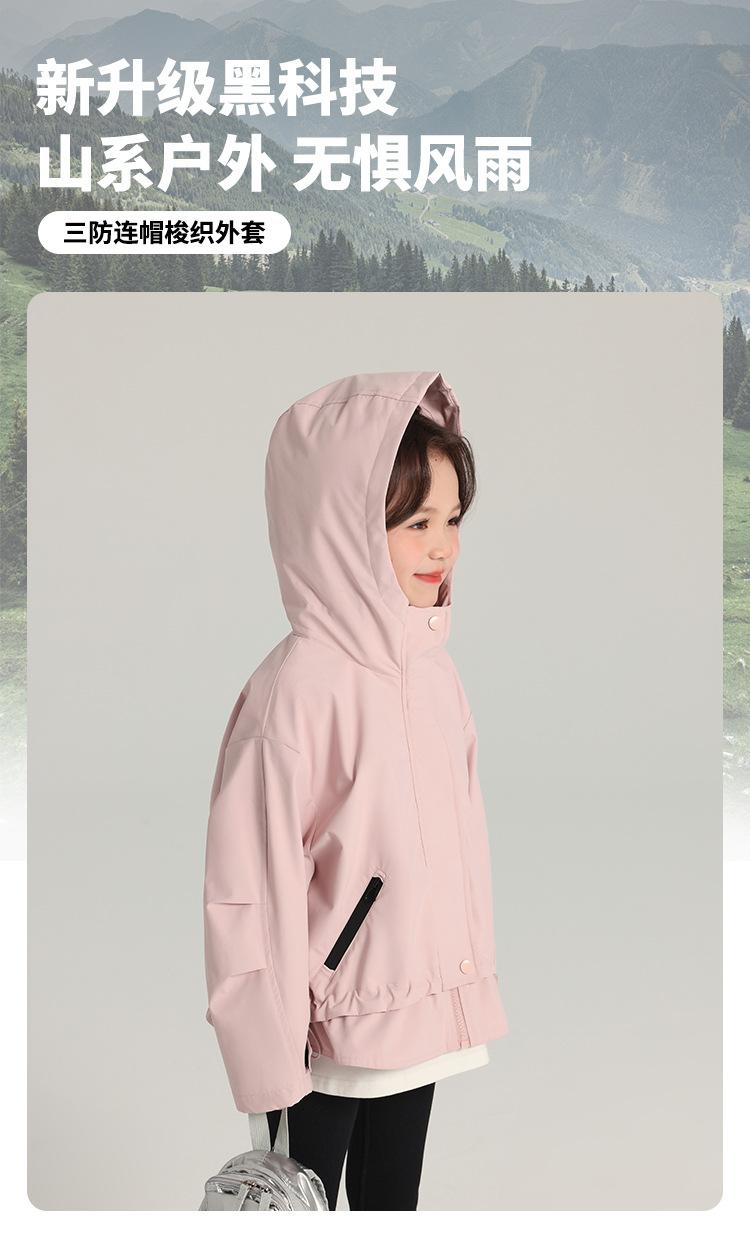 Abrigo de niña de primavera 2025, nuevo, de tres capas, para niños, bonito y bonito abrigo tejido con capucha y cortavientos.
