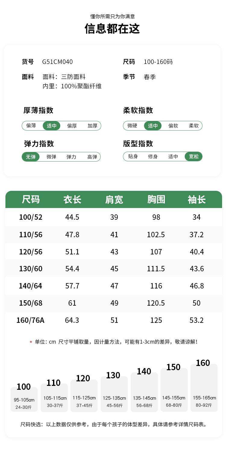 Recommended height for size 100 is 95-105cm, Recommended height for size 110 is 105-115cm, Recommended height ...