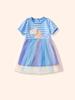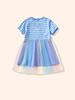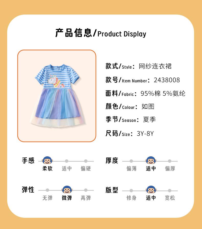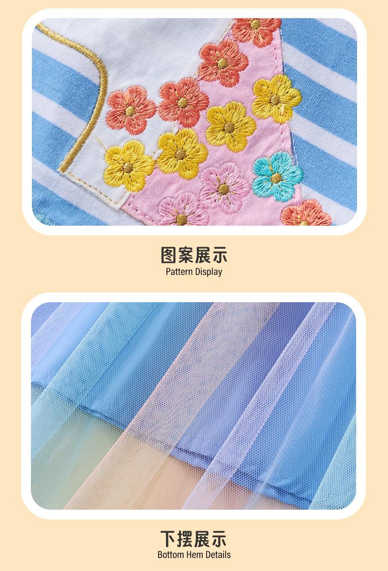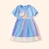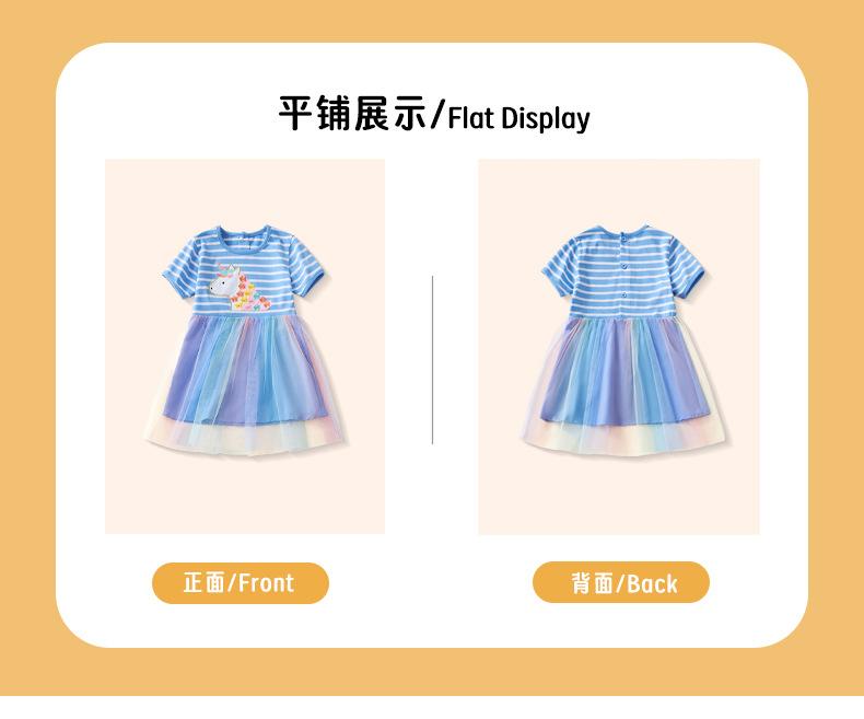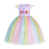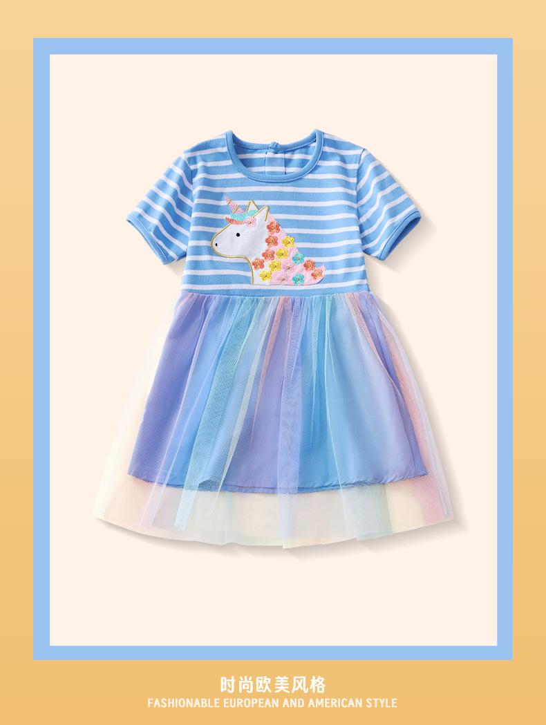 Verano 2025 Nuevo Vestido Infantil de Dibujos Animados Animal Unicornio para Niñas Lindo Vestido de Princesa de Malla a Rayas