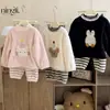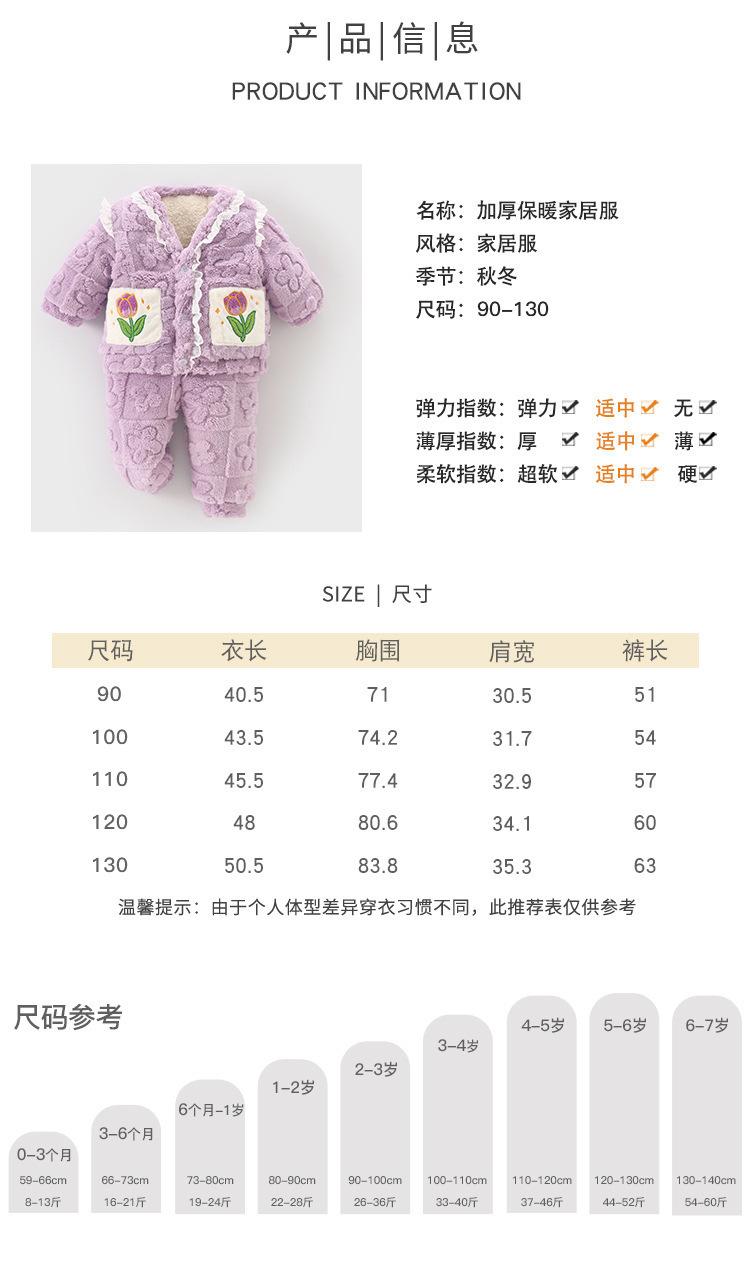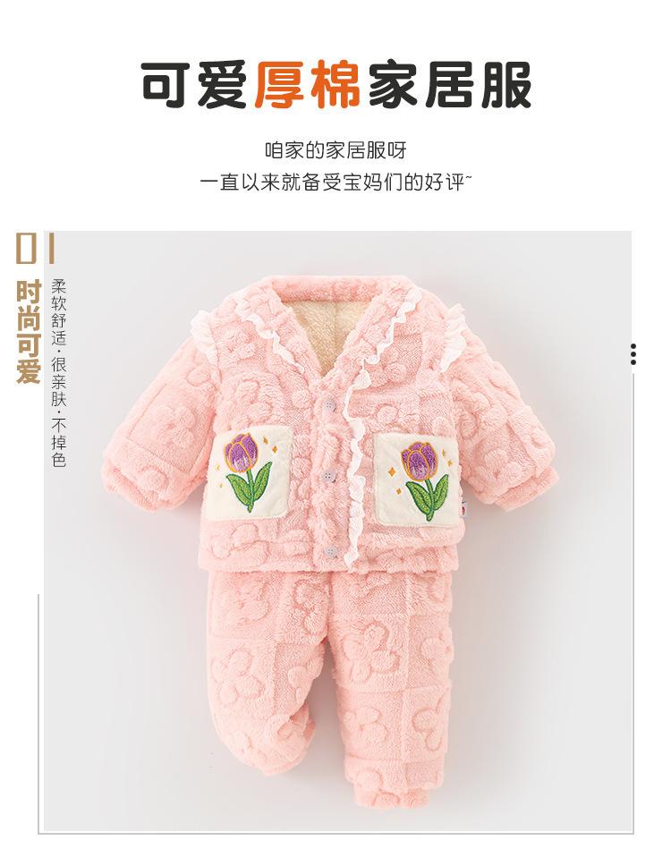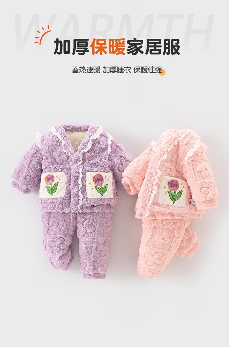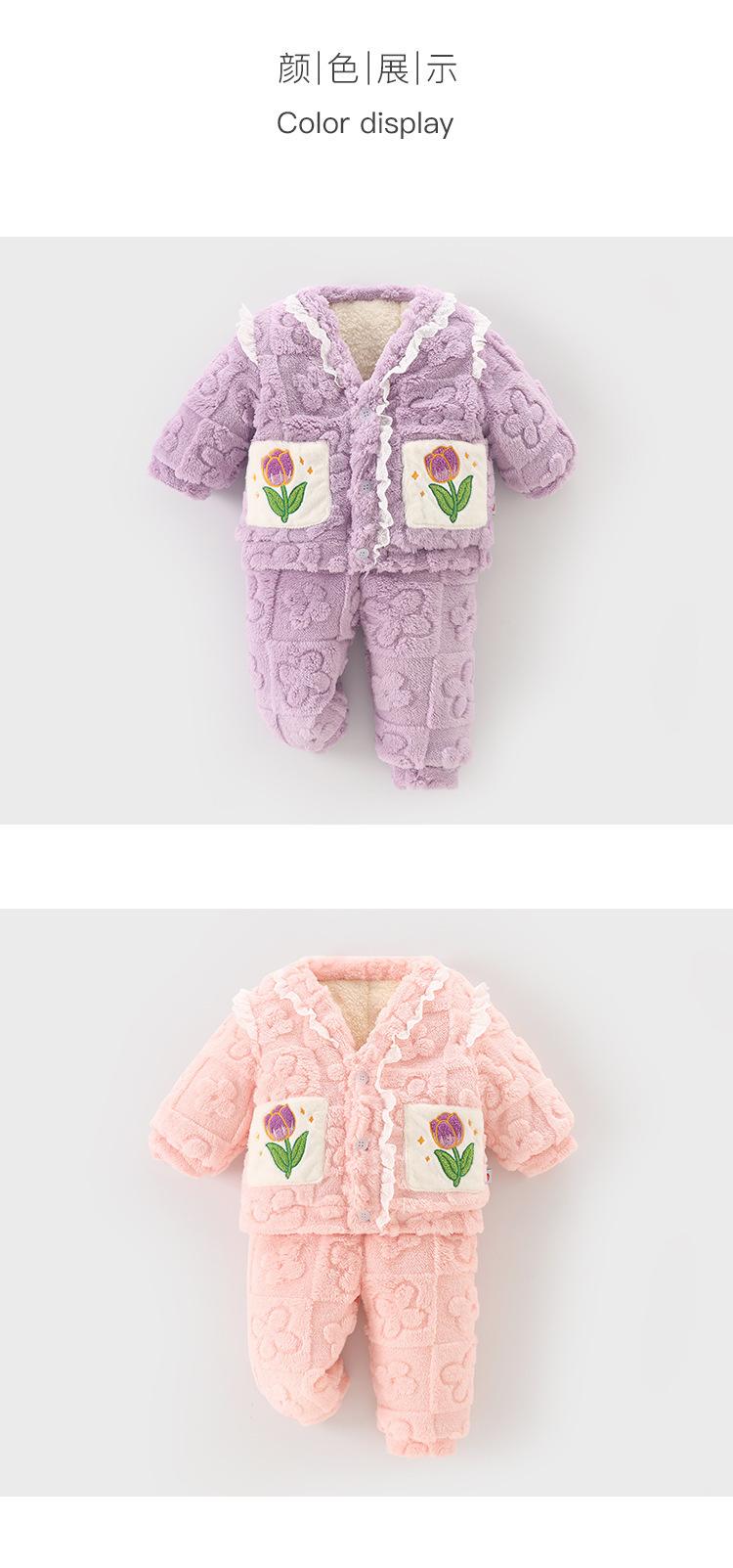 DUUDUU Ropa para Bebé Niña Algodón con forro polar Espesado Dulce Cálido Ropa para Casa Conjunto de Dos Piezas Pijama para Niños Otoño e Invierno