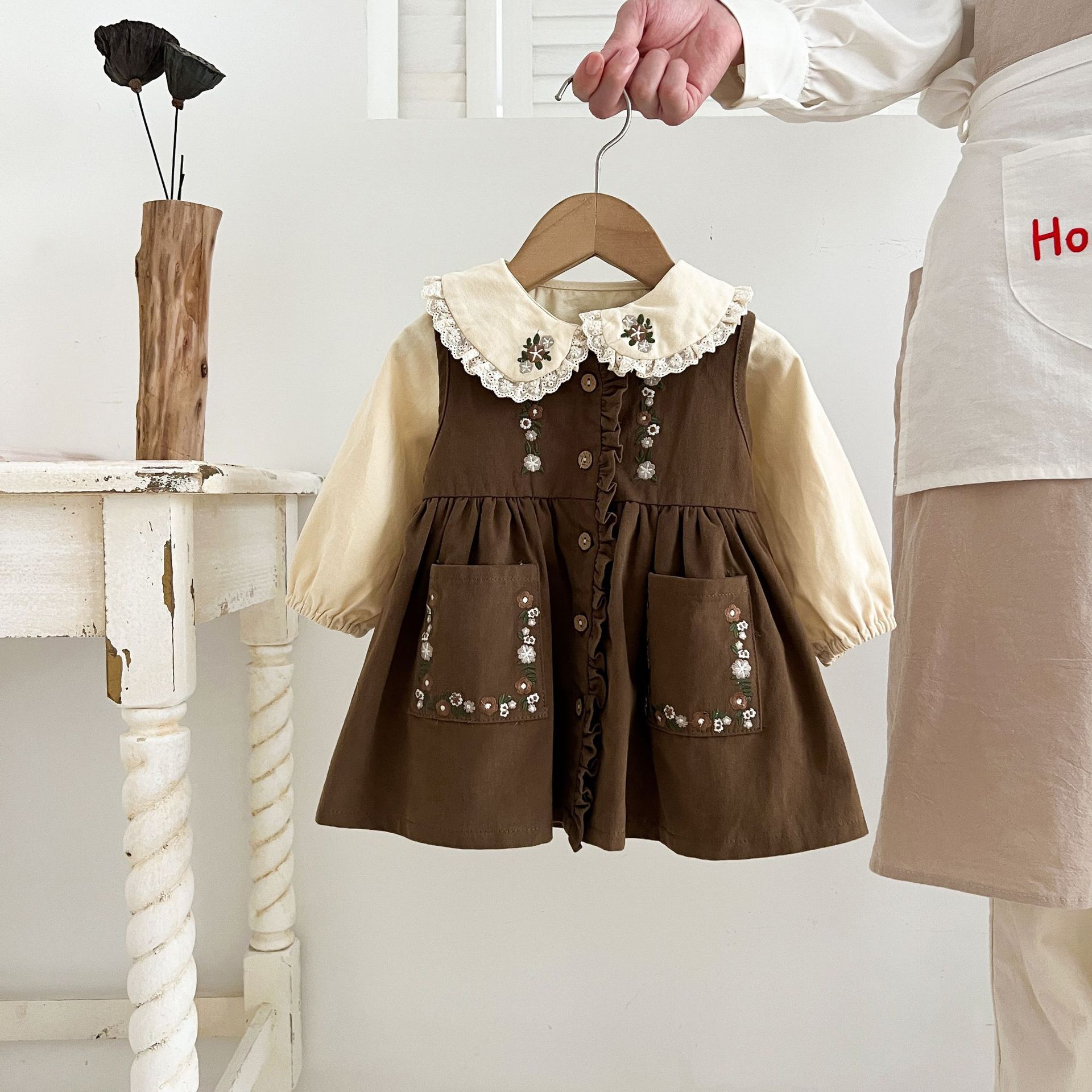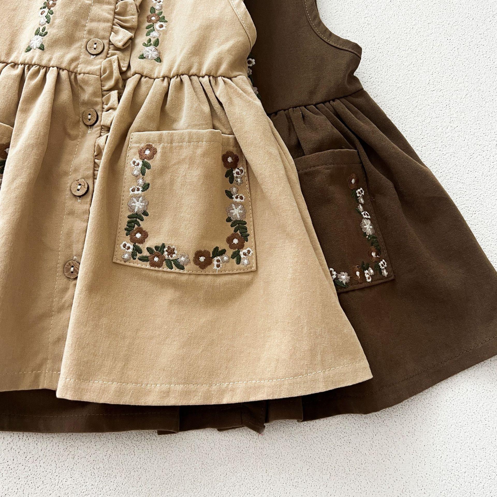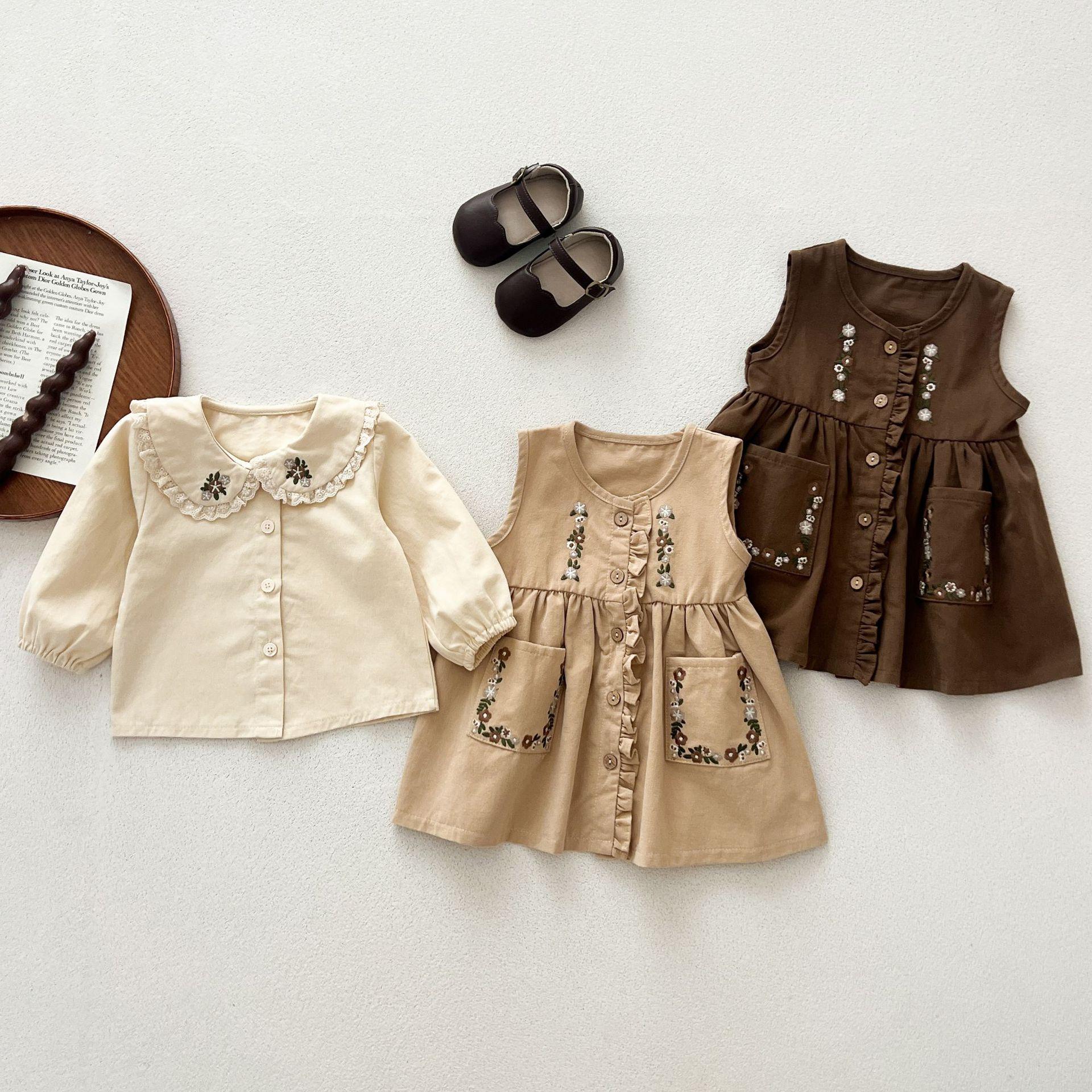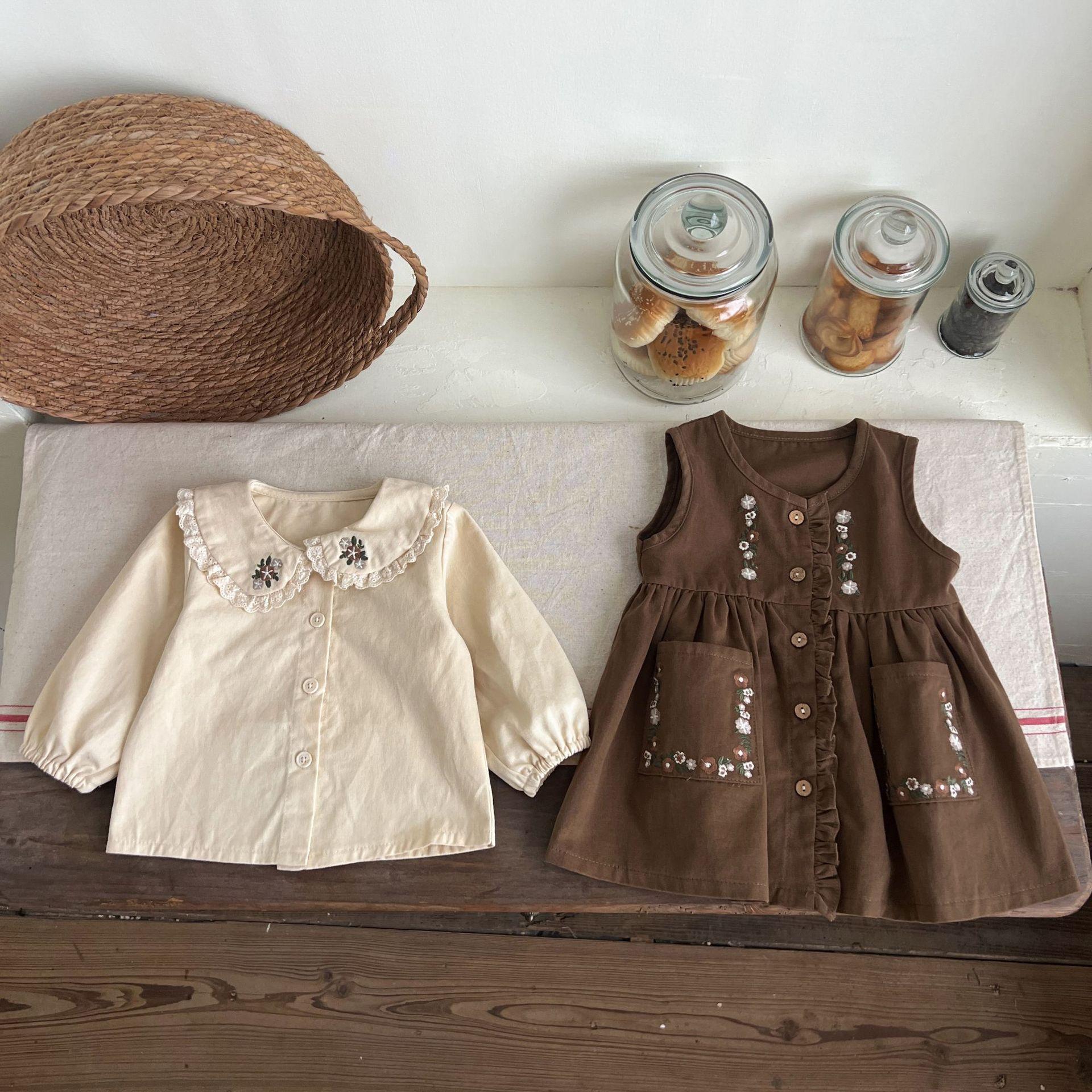 Conjunto de Vestido Tesoro para Mujer de Primavera y Otoño Princesa Lindo Bordado Cuello de Muñeca Bordado Manga Larga Top Chaleco Falda Conjunto de Dos Piezas