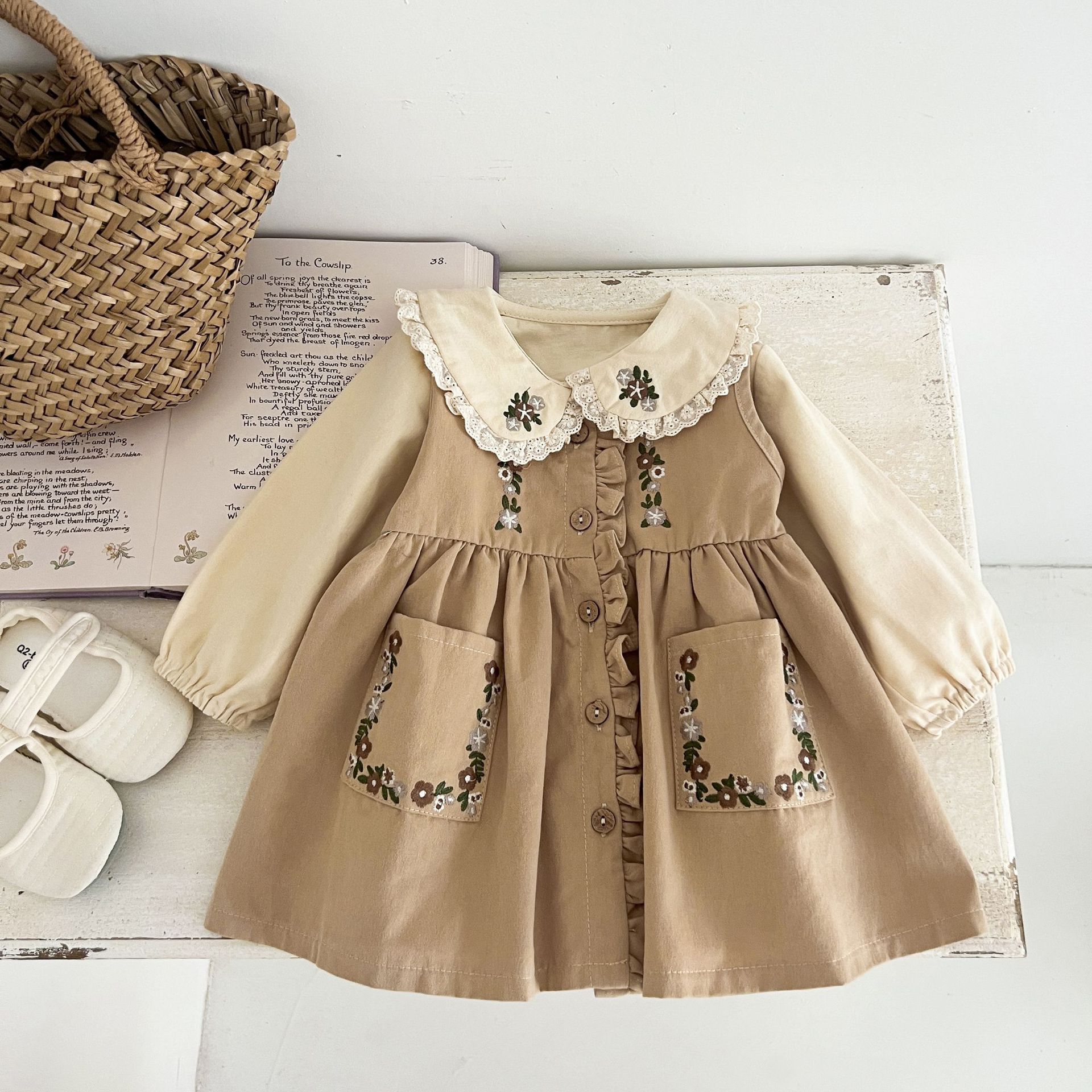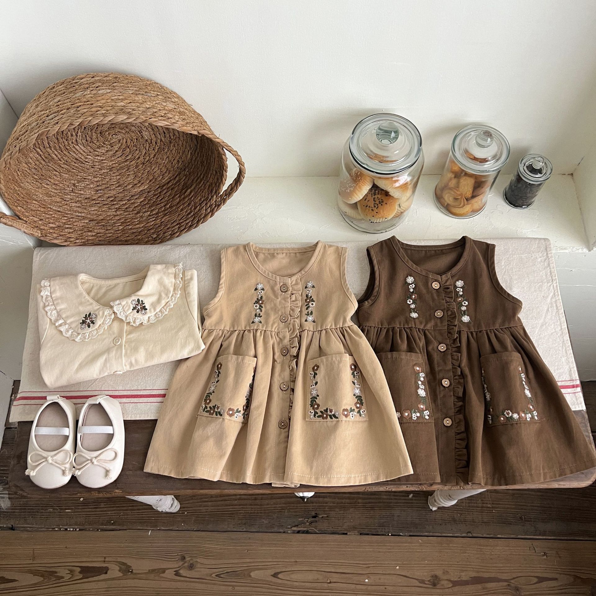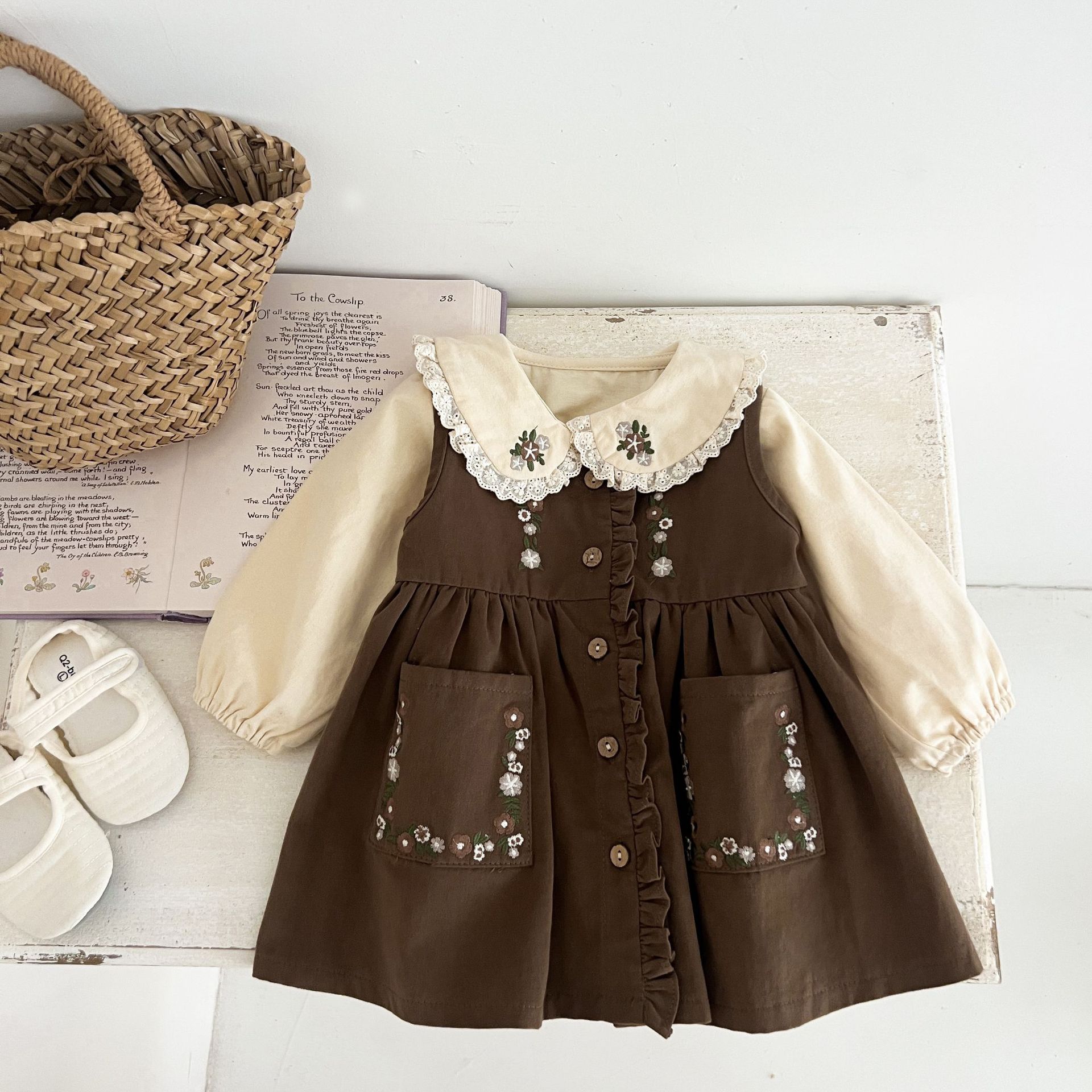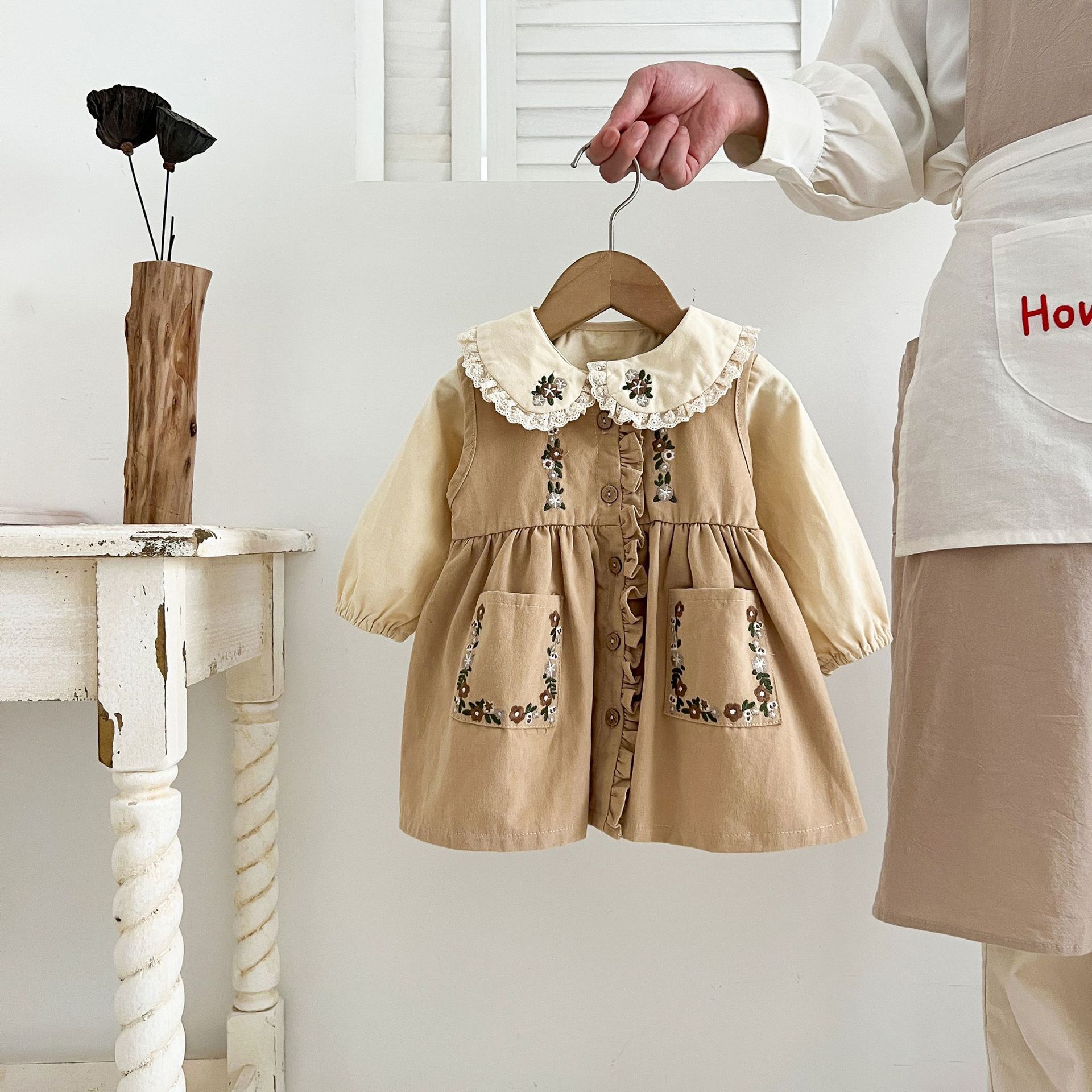 Conjunto de Vestido Tesoro para Mujer de Primavera y Otoño Princesa Lindo Bordado Cuello de Muñeca Bordado Manga Larga Top Chaleco Falda Conjunto de Dos Piezas