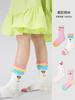 Calcetines de tubo para bebé con expresión de caricatura de primavera 2025, calcetines para niños al por mayor de algodón sin costuras con encaje a rayas para niñas