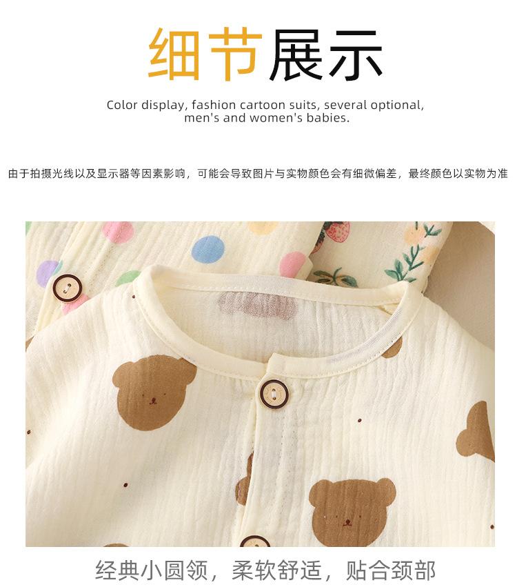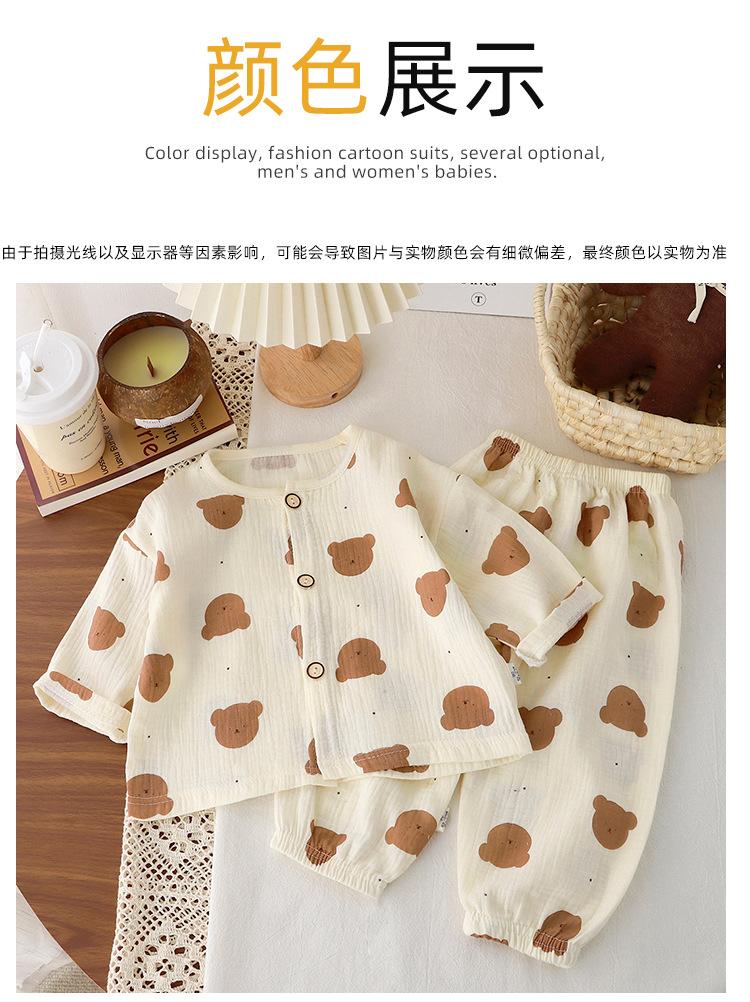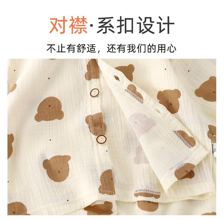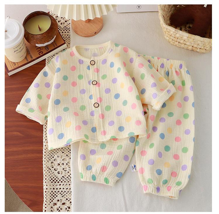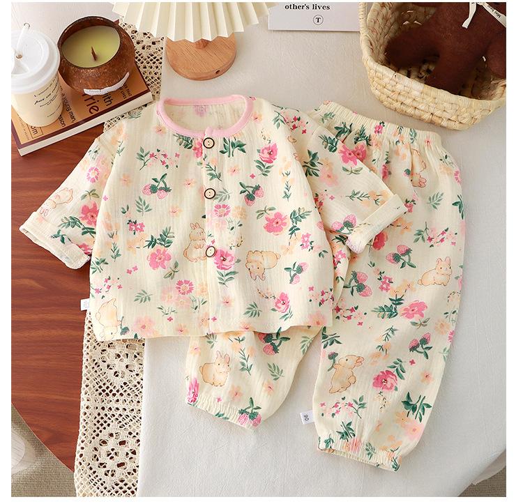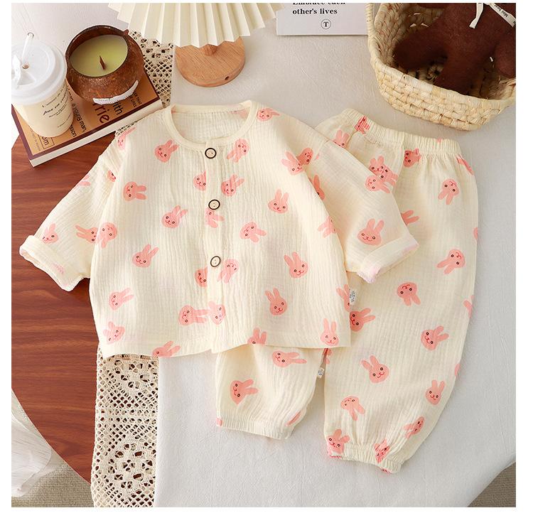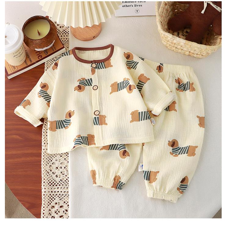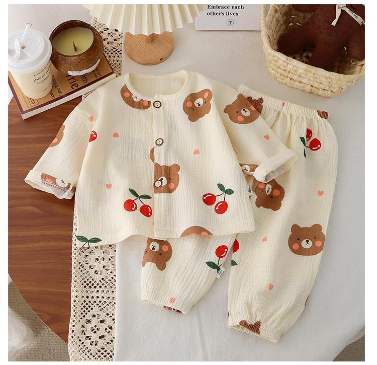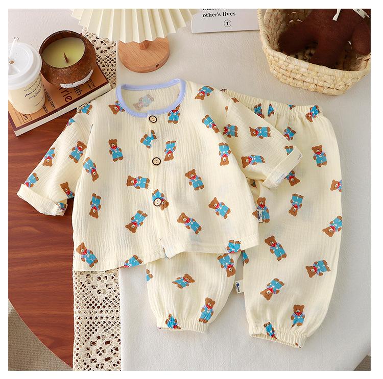 Pijamas de Gasa de Algodón Puro de Doble Capa Fina para Niños Verano Ropa para el Hogar para Bebés Niños y Niñas Trajes de Manga Larga para Primavera y Otoño