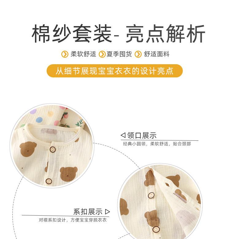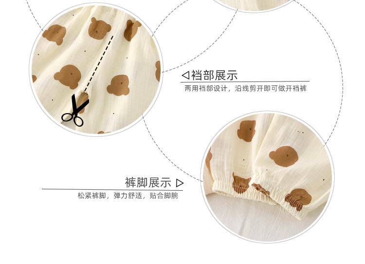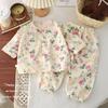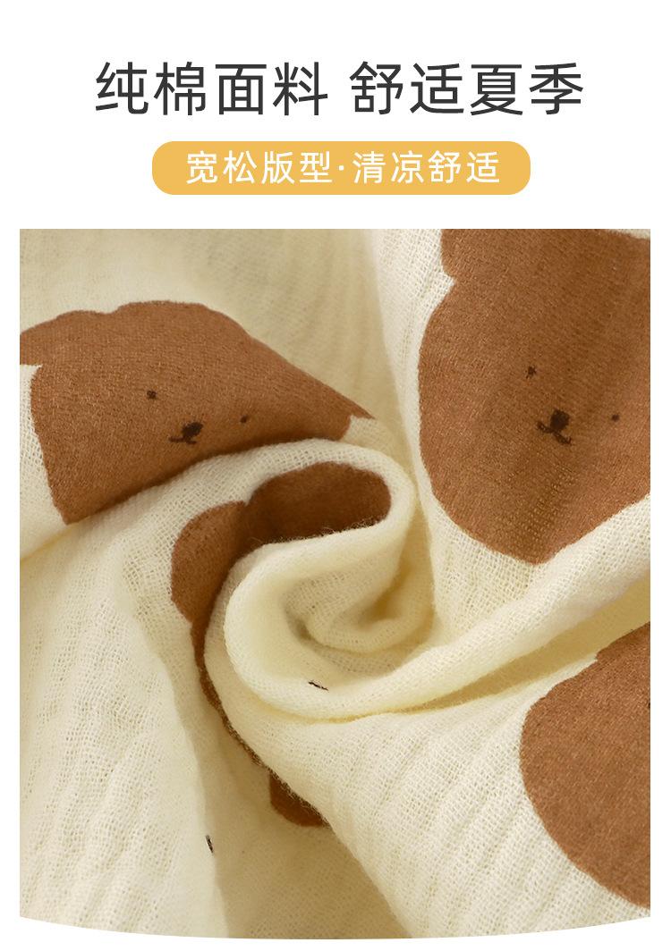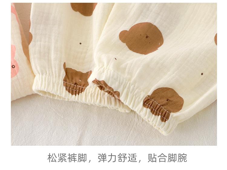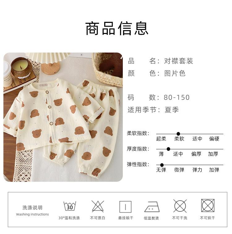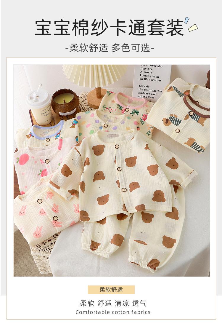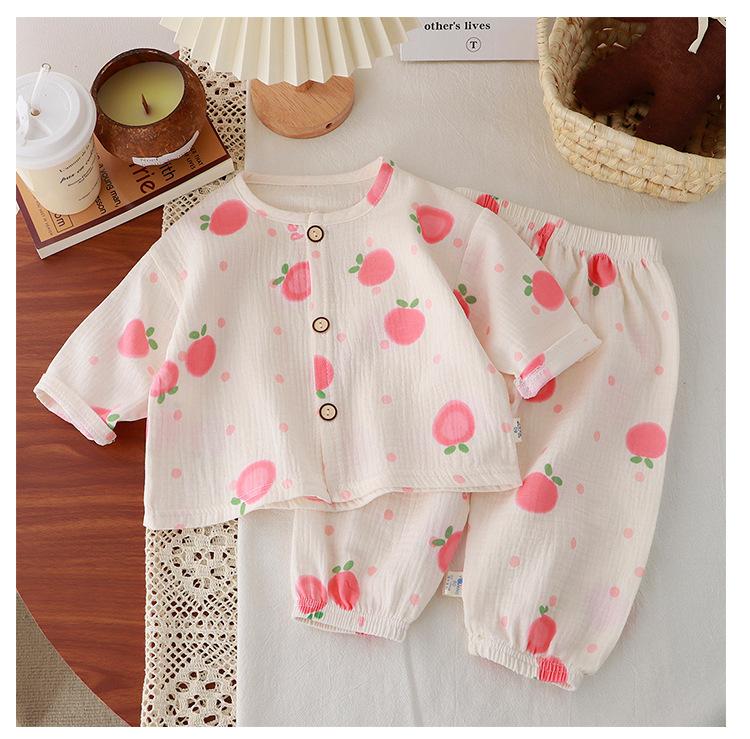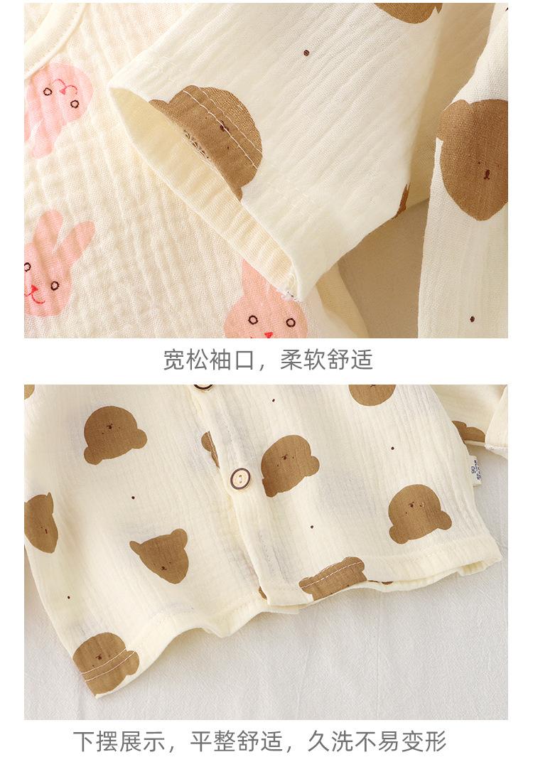 Pijamas de Gasa de Algodón Puro de Doble Capa Fina para Niños Verano Ropa para el Hogar para Bebés Niños y Niñas Trajes de Manga Larga para Primavera y Otoño
