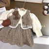 Vestido Camisero Dulce Niñita Primavera y Otoño Nueva Moda Vestido de Princesa de Manga Larga con Cuello Vuelto para Niñas Vestido Infantil