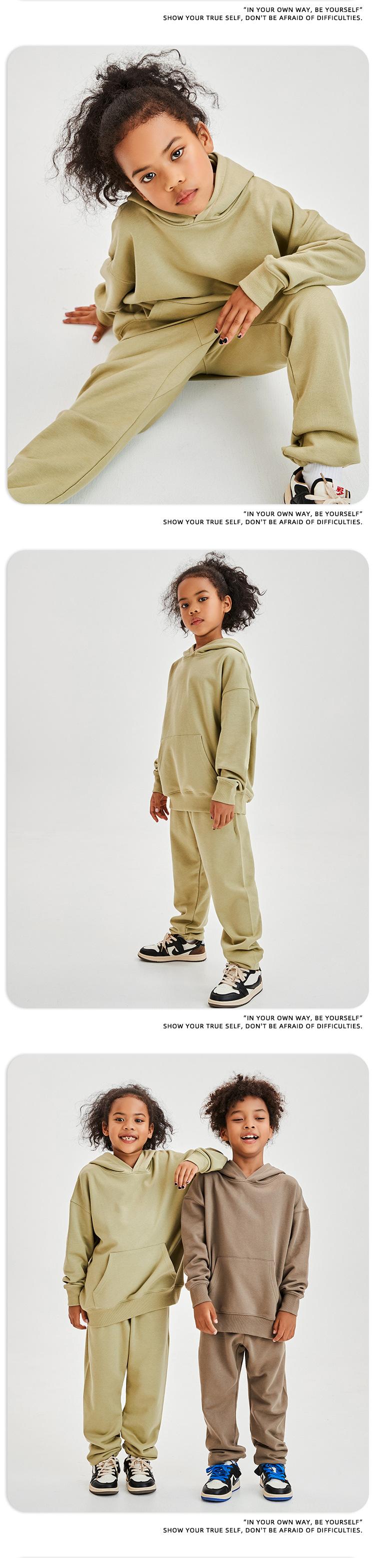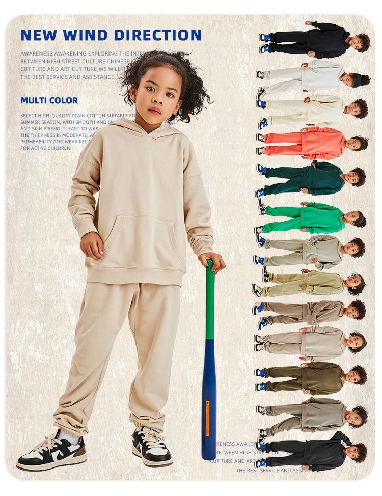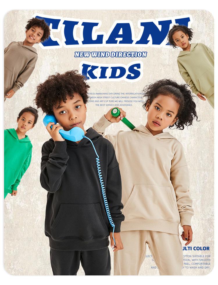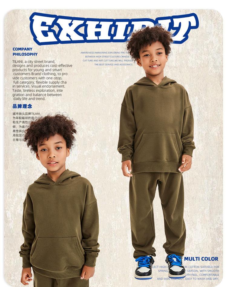 TILANI Ropa Infantil Marca de Moda Europea y Americana 25SS Básico Color Sólido 340G Ropa con Capucha Pantalones Conjunto de Dos Piezas para Hombre y Mujer