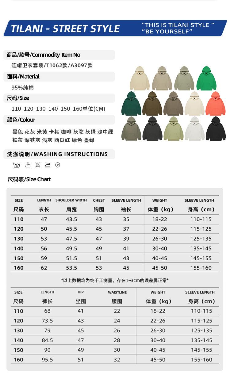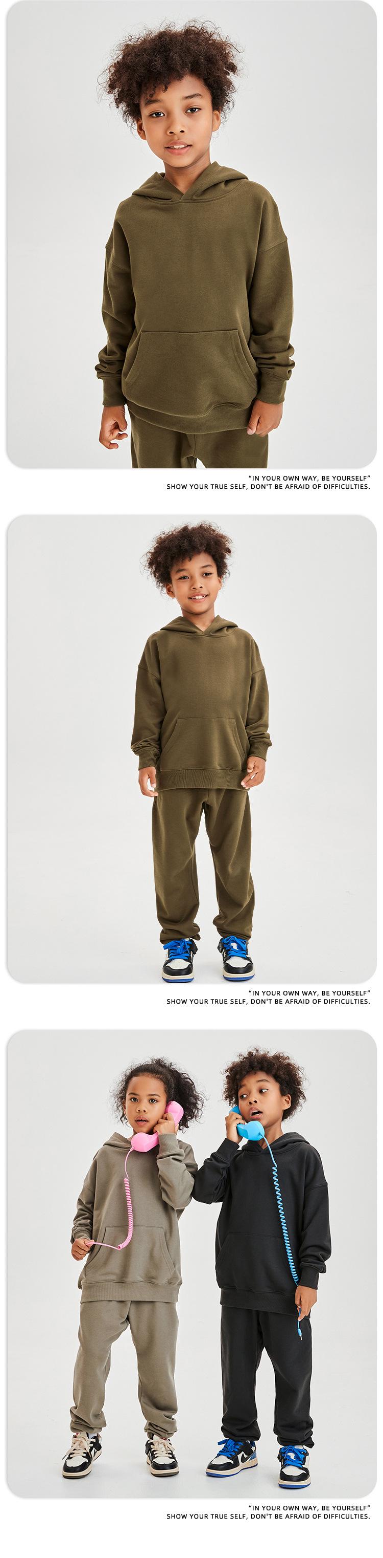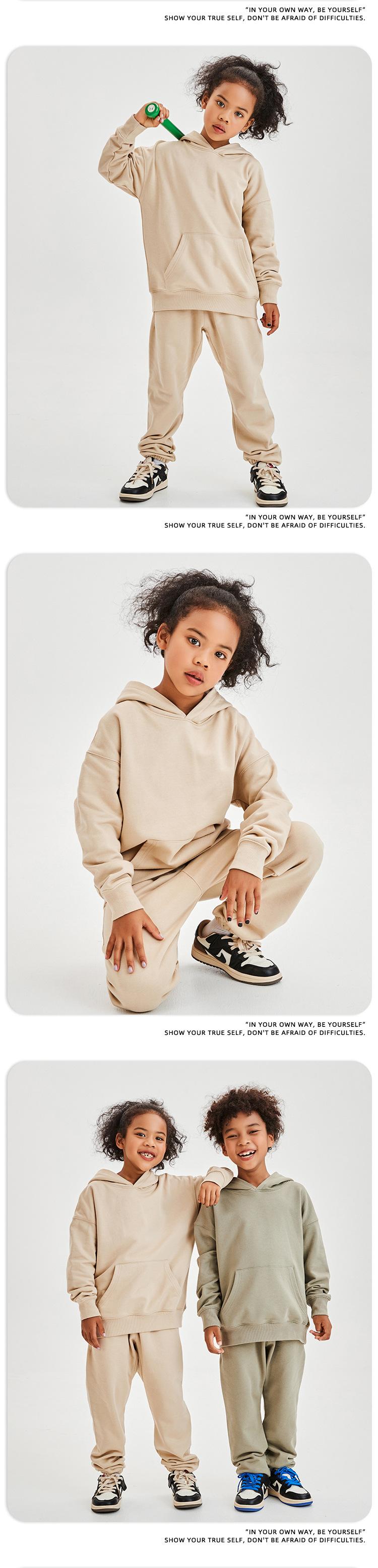 TILANI Ropa Infantil Marca de Moda Europea y Americana 25SS Básico Color Sólido 340G Ropa con Capucha Pantalones Conjunto de Dos Piezas para Hombre y Mujer