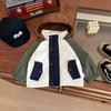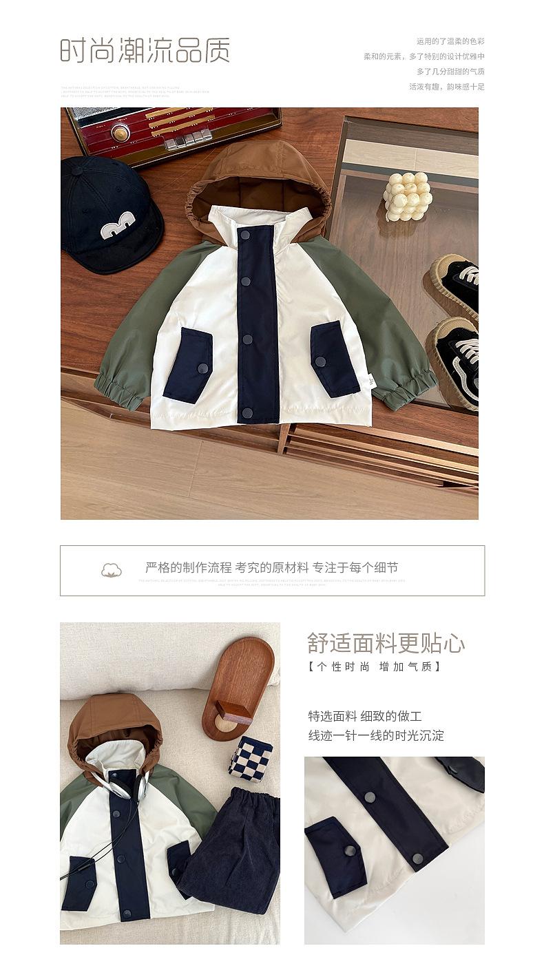 Abrigo para niño primavera 2025, nuevo y atractivo abrigo para bebé con capucha a juego de colores, ropa de trabajo de moda para niños.