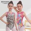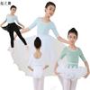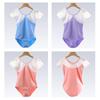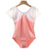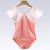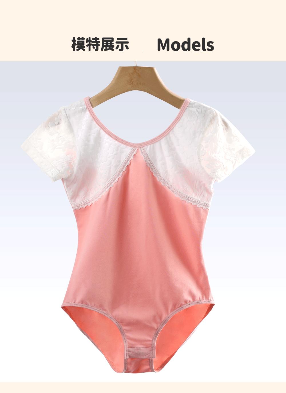 Traje de baile de verano de manga corta para niños, con costuras flocadas, para práctica de ballet, ropa de examen para niñas, traje de gimnasia