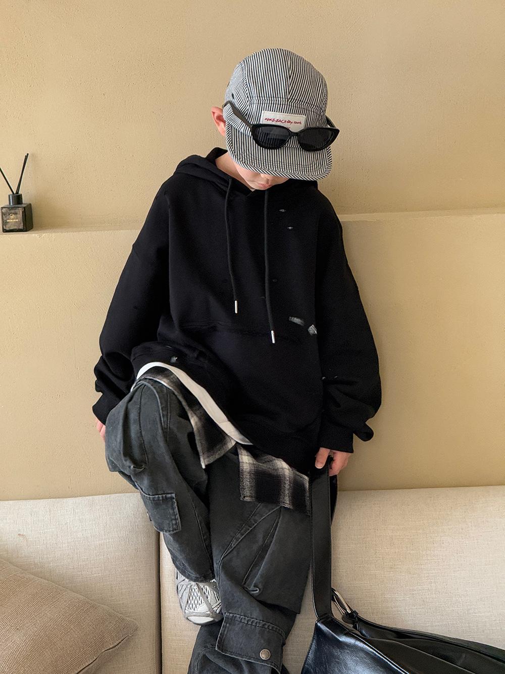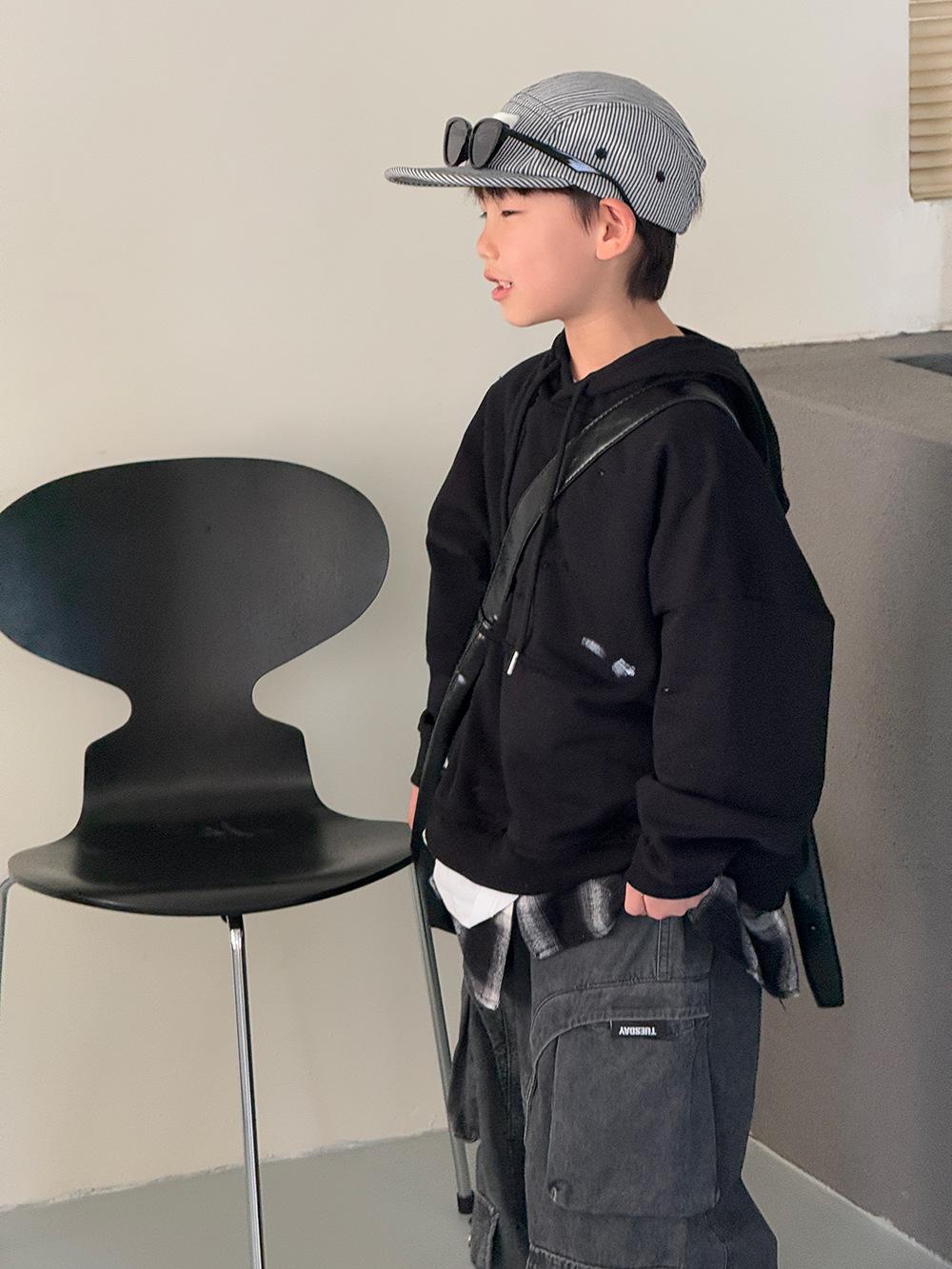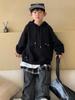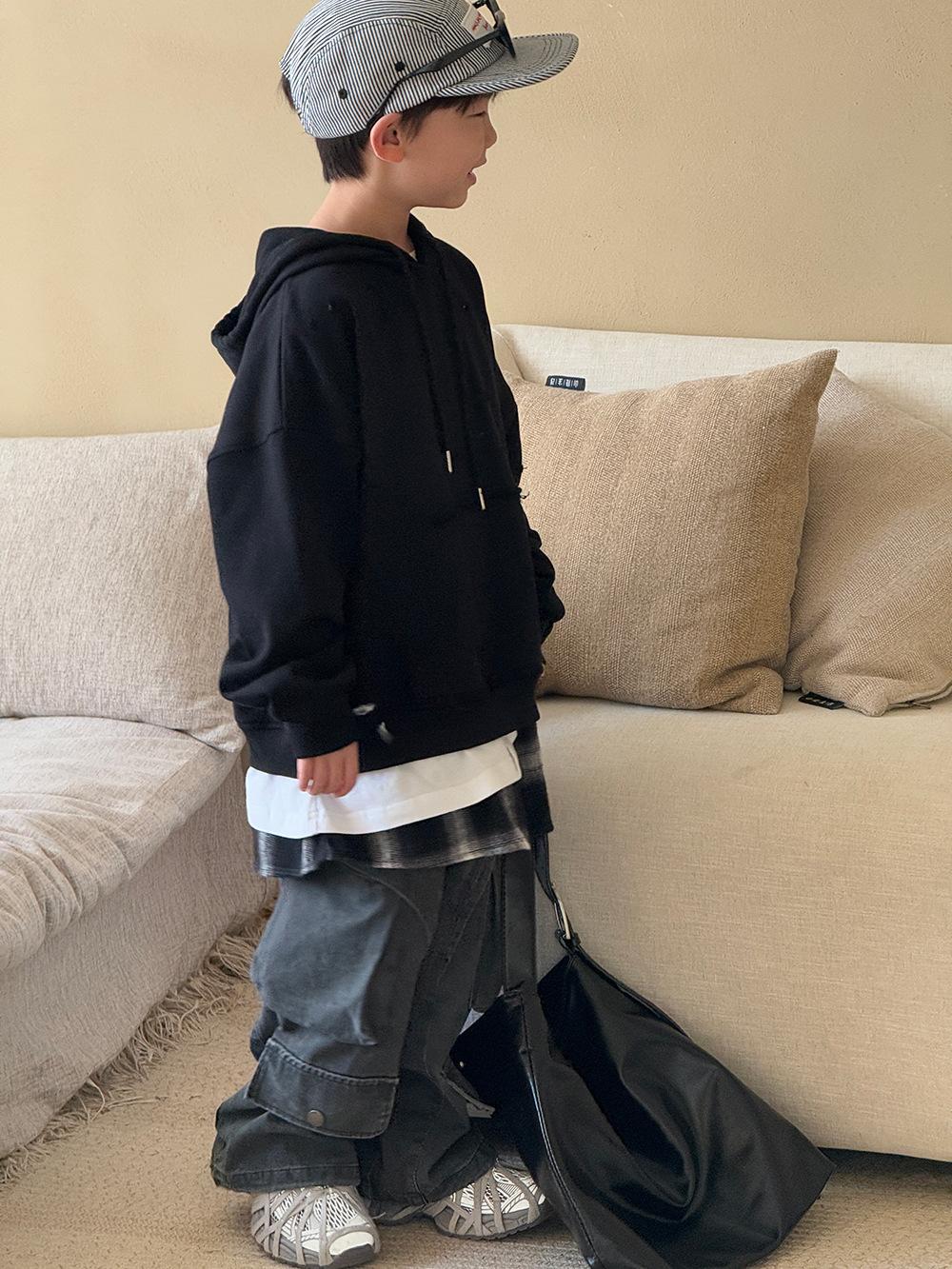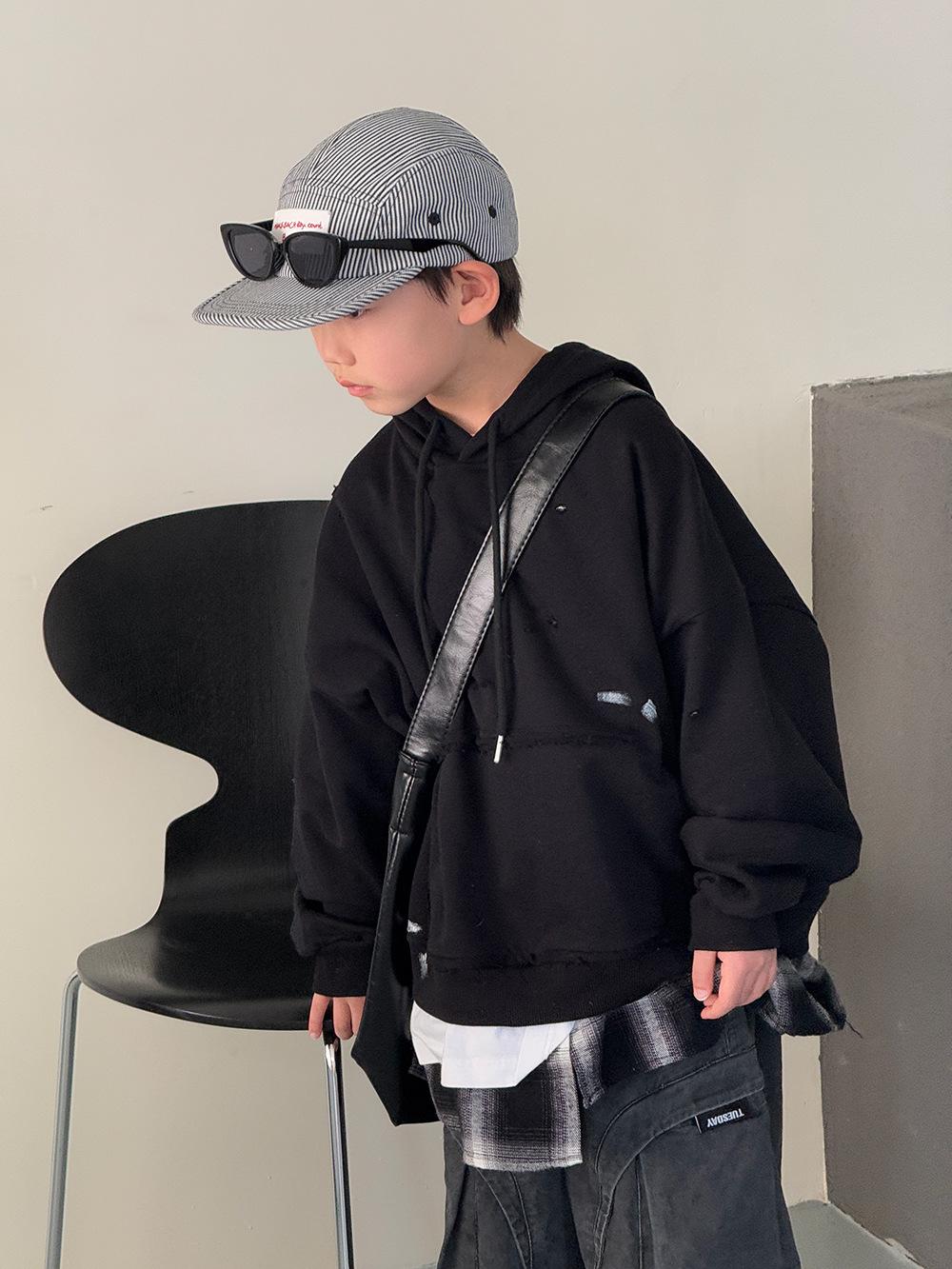 Sudadera con capucha de dos piezas falsas para niño Primavera y Otoño 2025 Nueva Costuras para niños Estilo coreano Abrigo suelto Moderno