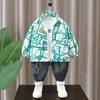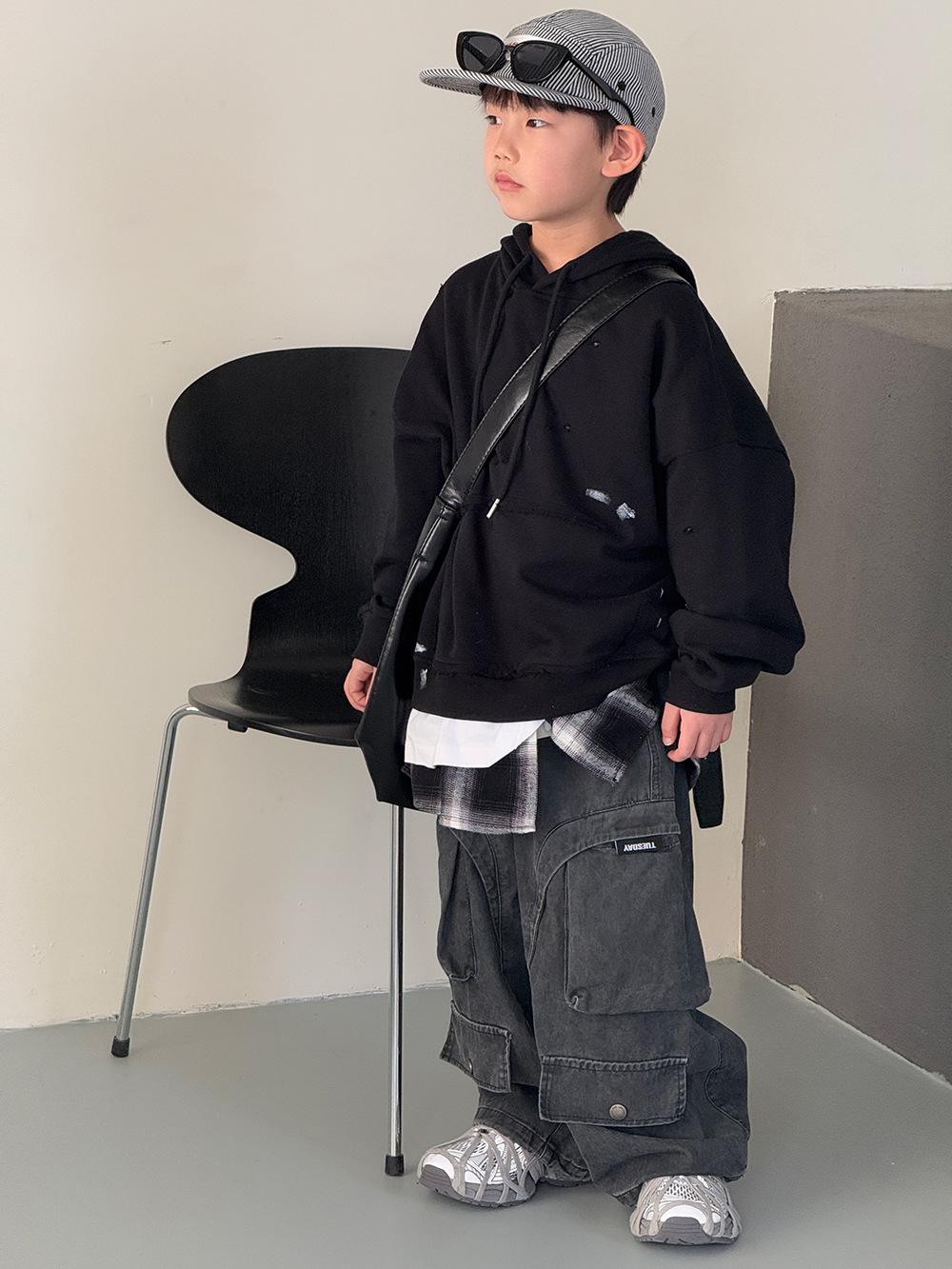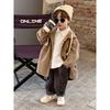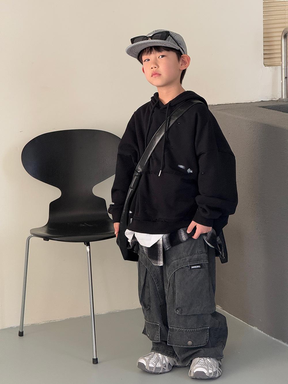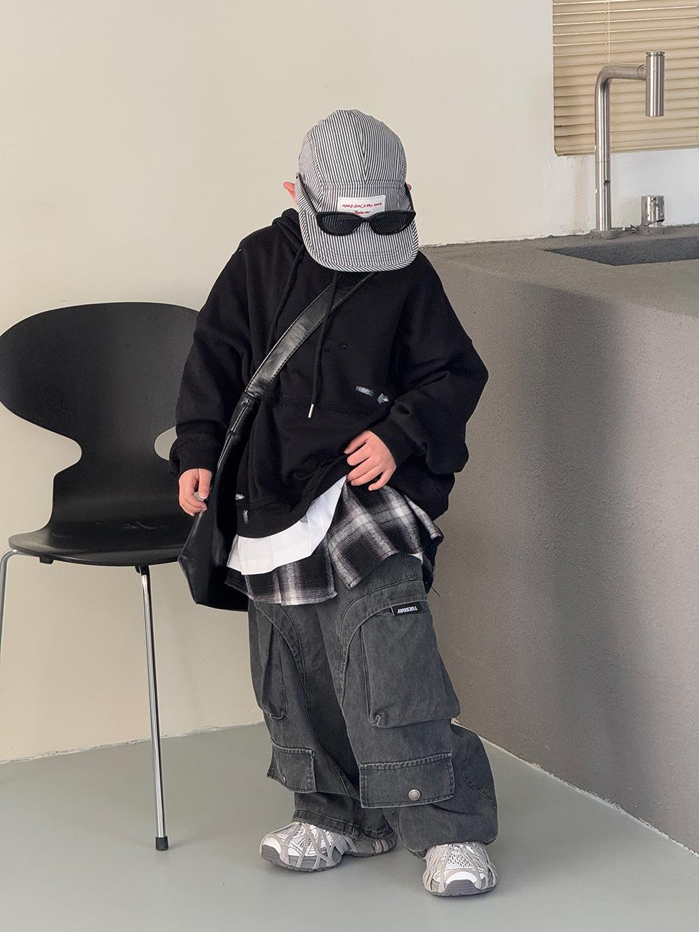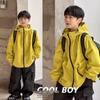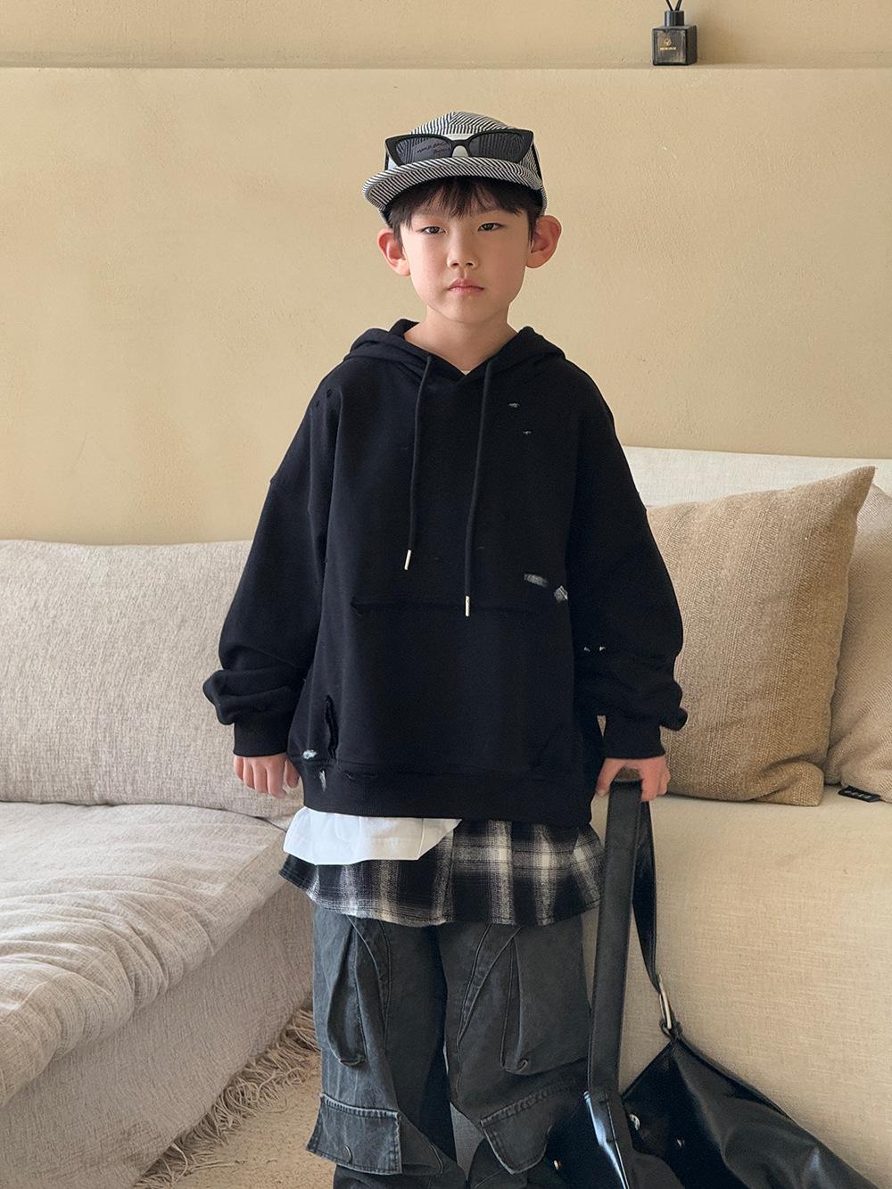 Sudadera con capucha de dos piezas falsas para niño Primavera y Otoño 2025 Nueva Costuras para niños Estilo coreano Abrigo suelto Moderno